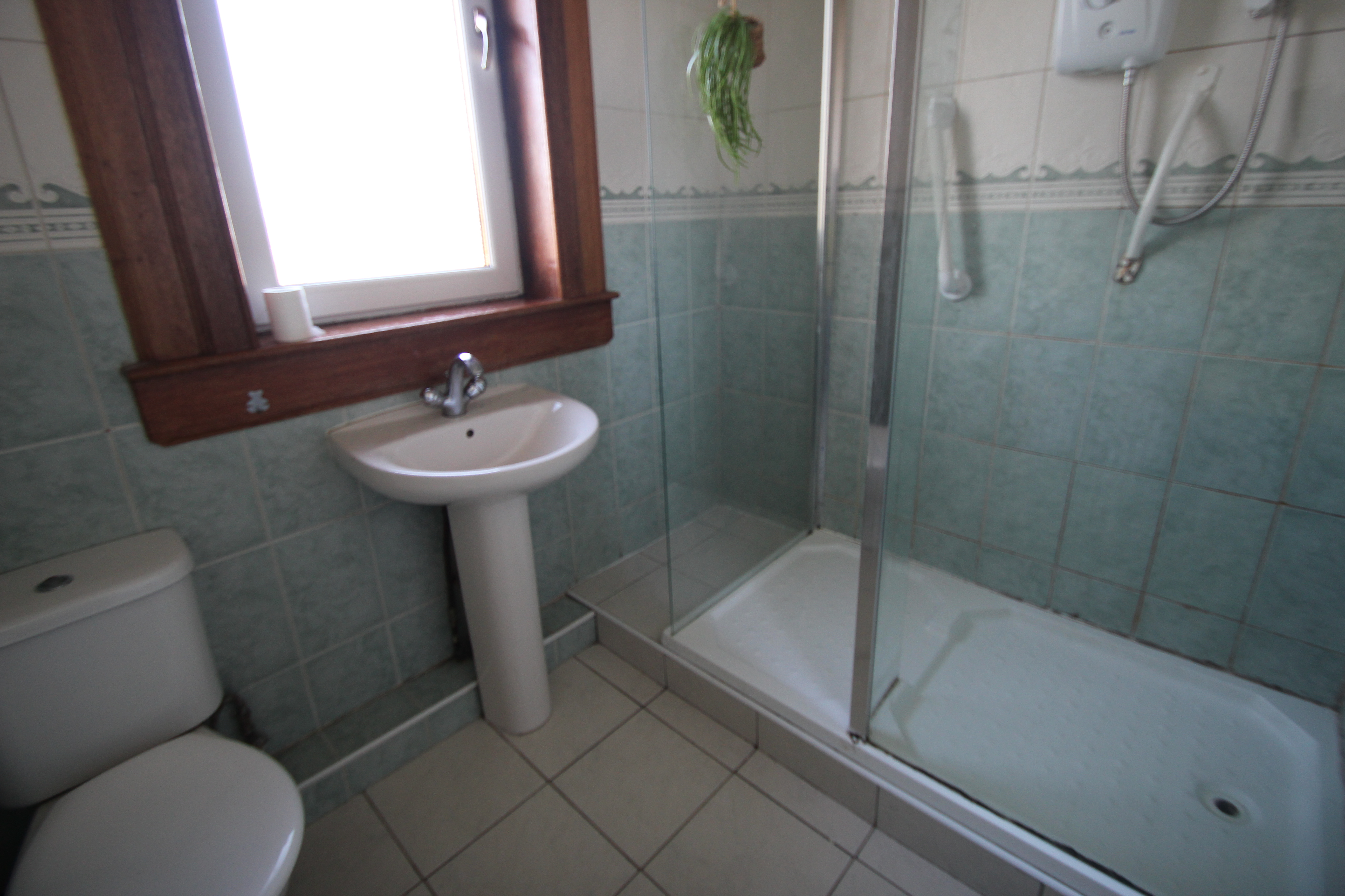 Fully tiled and fitted with double shower cubicle andelectric shower, pedestal wash hand basin and dual flush WC. Opaque glazed window. Radiator.