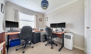 The property is approached via a block-paved, double driveway, with parking for at least two cars, leading to the single garage with power & lighting. A side path leads to the west-facing rear garden which is mainly laid to lawn with raised flower beds. Privacy is provided with the acoustic fencing to the left and the rear, there is also a greenhouse and sizeable shed, great for all storage needs. The generous patio area to the rear of the property has an electric awning making this space ideal for alfresco dining and summertime entertaining.