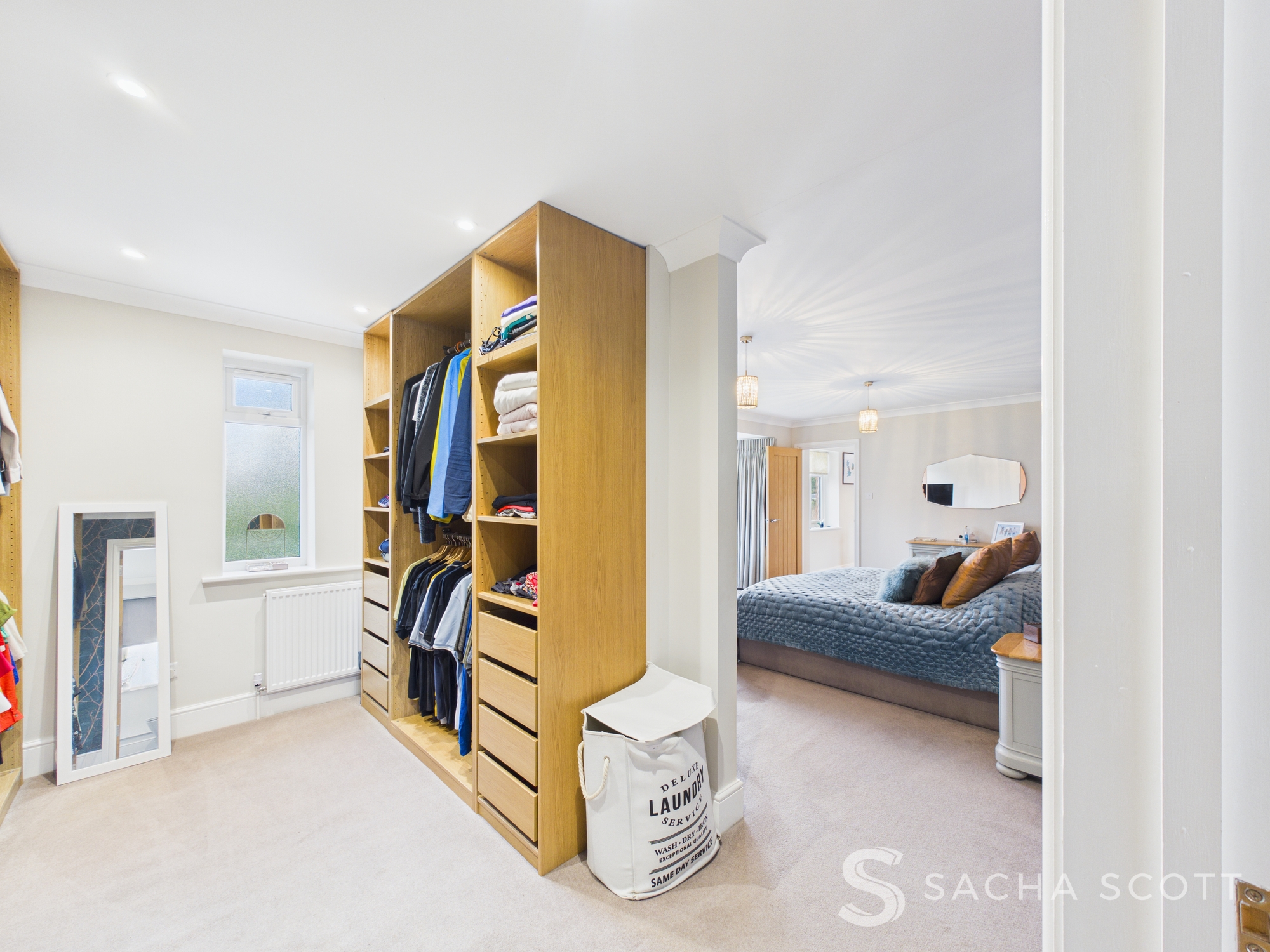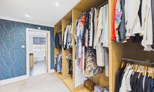 Located off of the primary bedroom, the dressing room offers floor to ceiling fitted wardrobes and drawer units with good natural light from a window over the front. Offering access to the en-suite bathroom, it is beautifully decorated and in good order throughout.