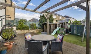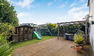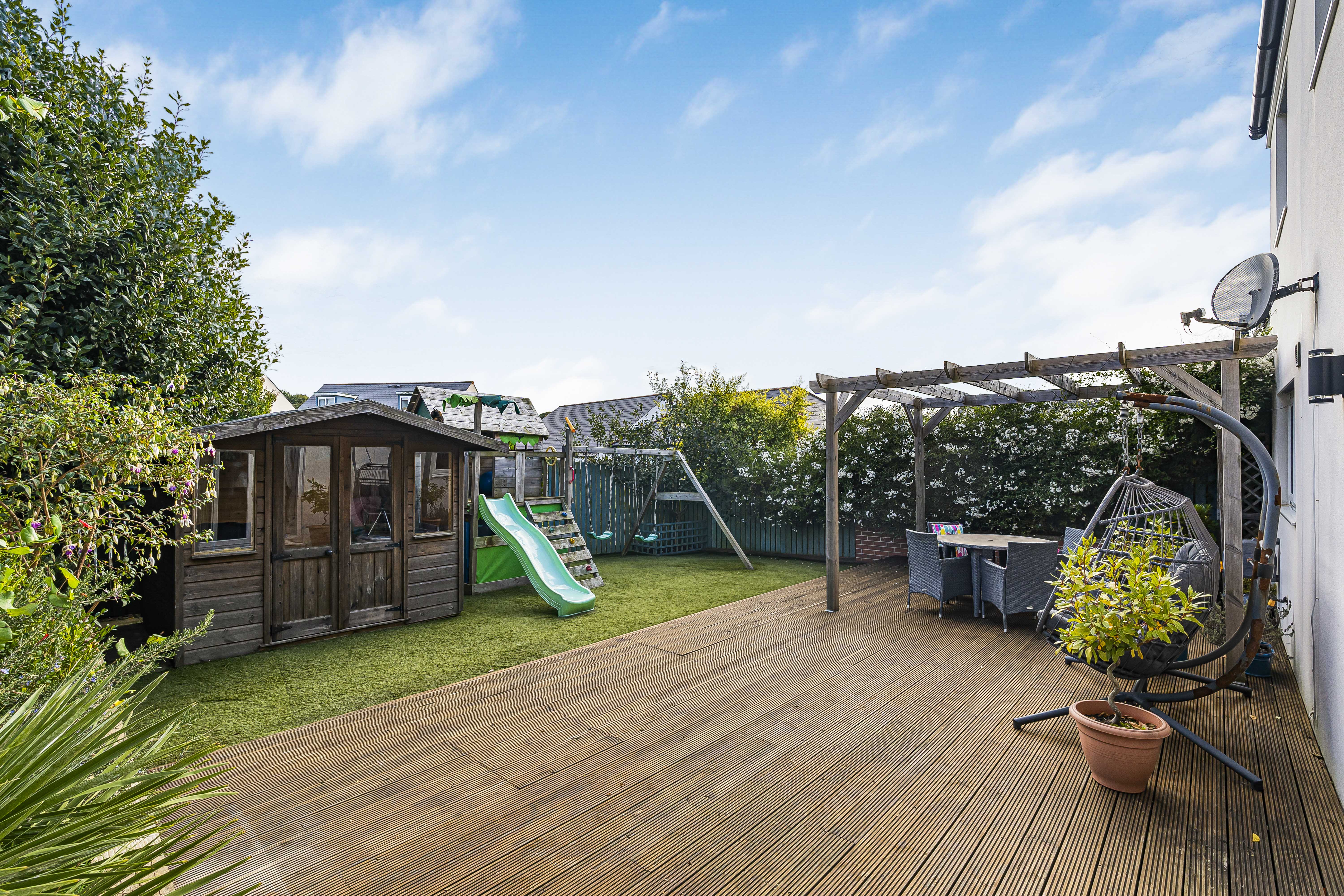 The rear garden has been landscaped, is level and south facing, with a great deal of privacy. It is laid to artificial lawn with a large, decked seating area, raised planted borders, side passage with additional storage shed.