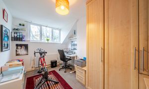 The first floor offers two double bedrooms, each with fitted wardrobes, along with a shower room and separate WC. On the second floor there are three further bedrooms, two of which would work perfectly as home offices or guest rooms. A built-in wardrobe on the landing provides extra storage, and the loft above is fully insulated and boarded with a pull-down ladder for ease of access.
