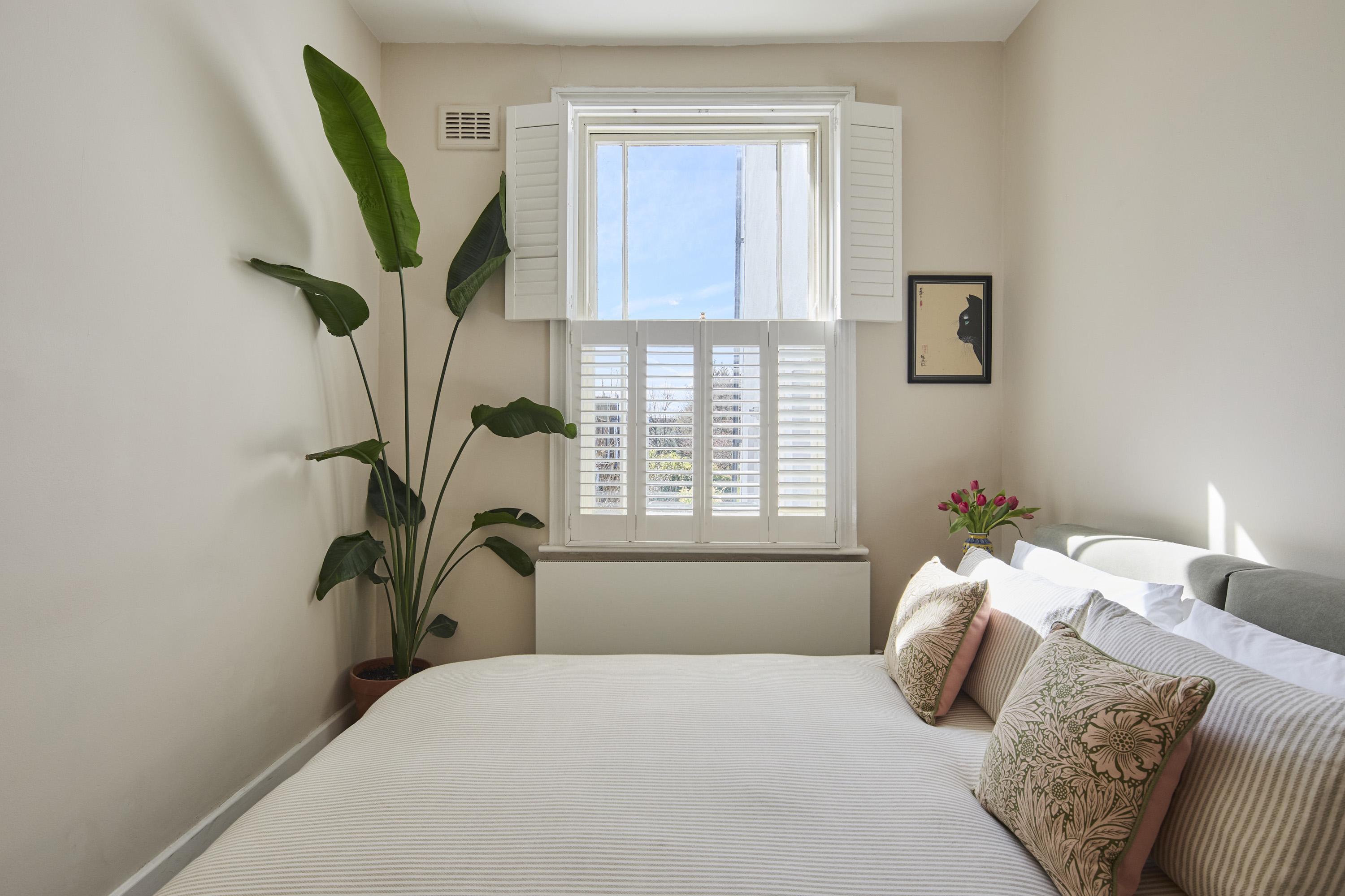 Tucked into a handsome double-fronted building on a no-through street just steps from Finsbury Park, this flat feels immediately calm and characterful. The balance here is spot on; period leanings like the smart sash windows but with a contemporary sensibility that doesn’t try too hard. Being on the first floor brings a little extra perspective too — brighter rooms, longer views and a pleasing sense of separation from the street.