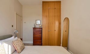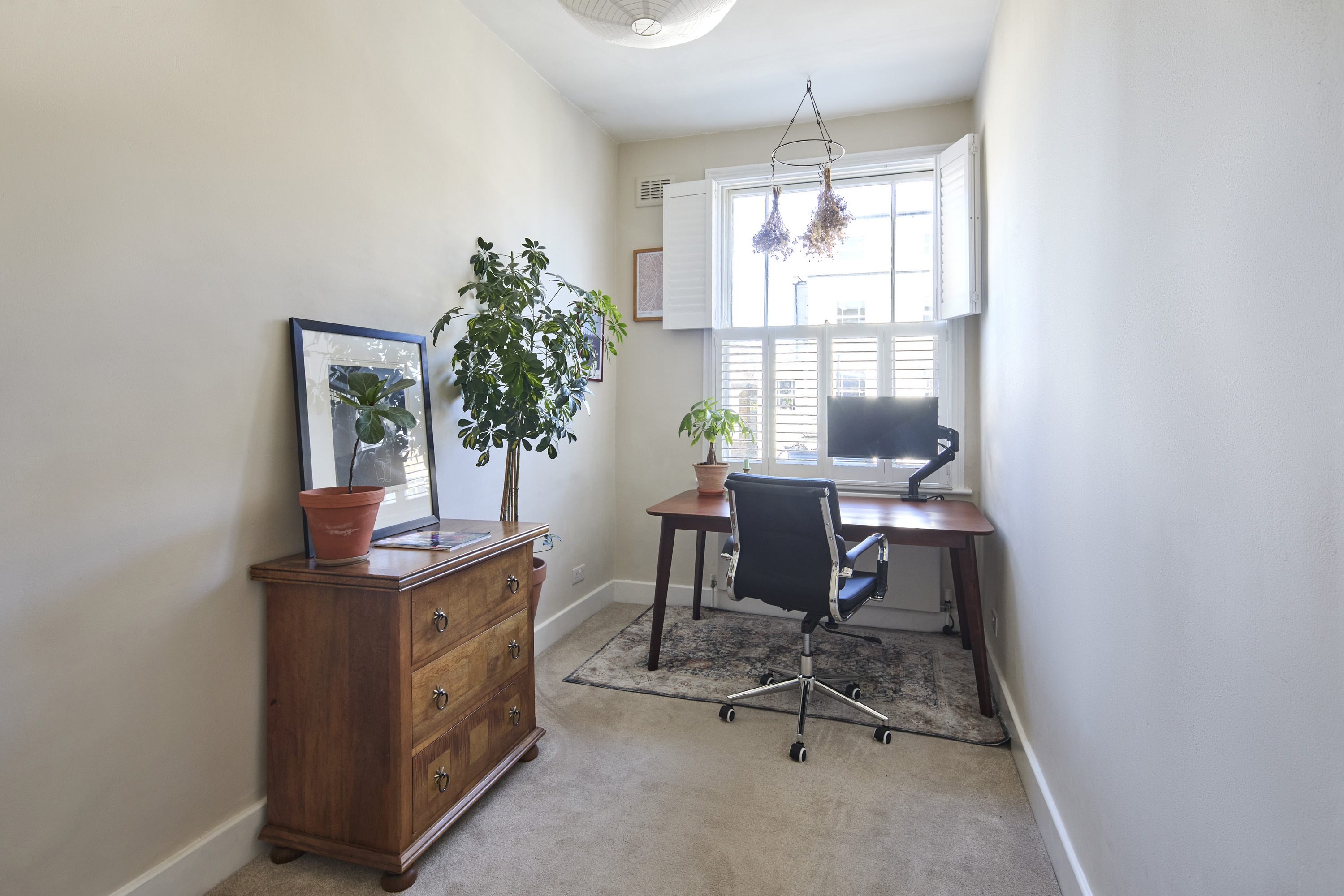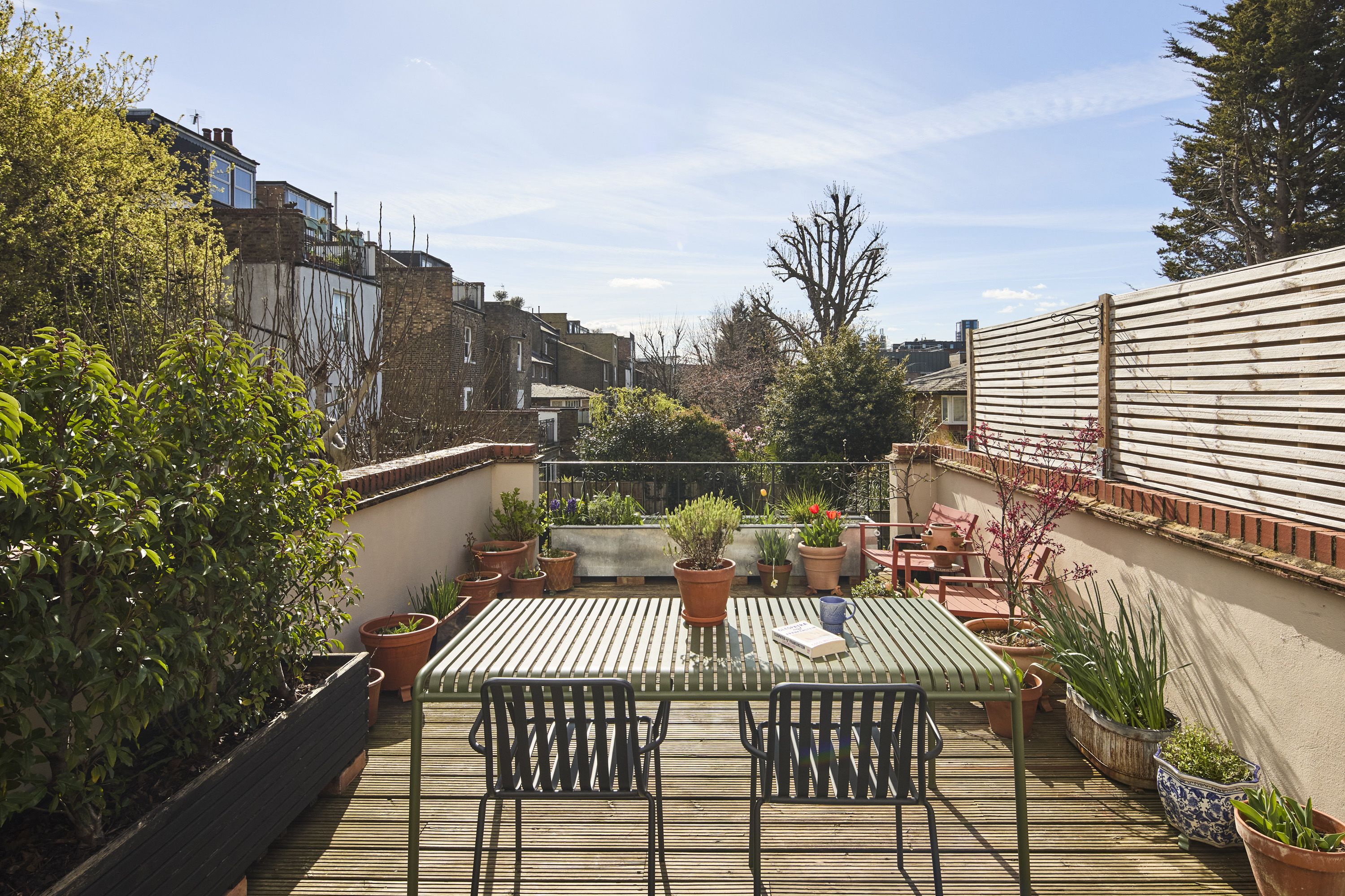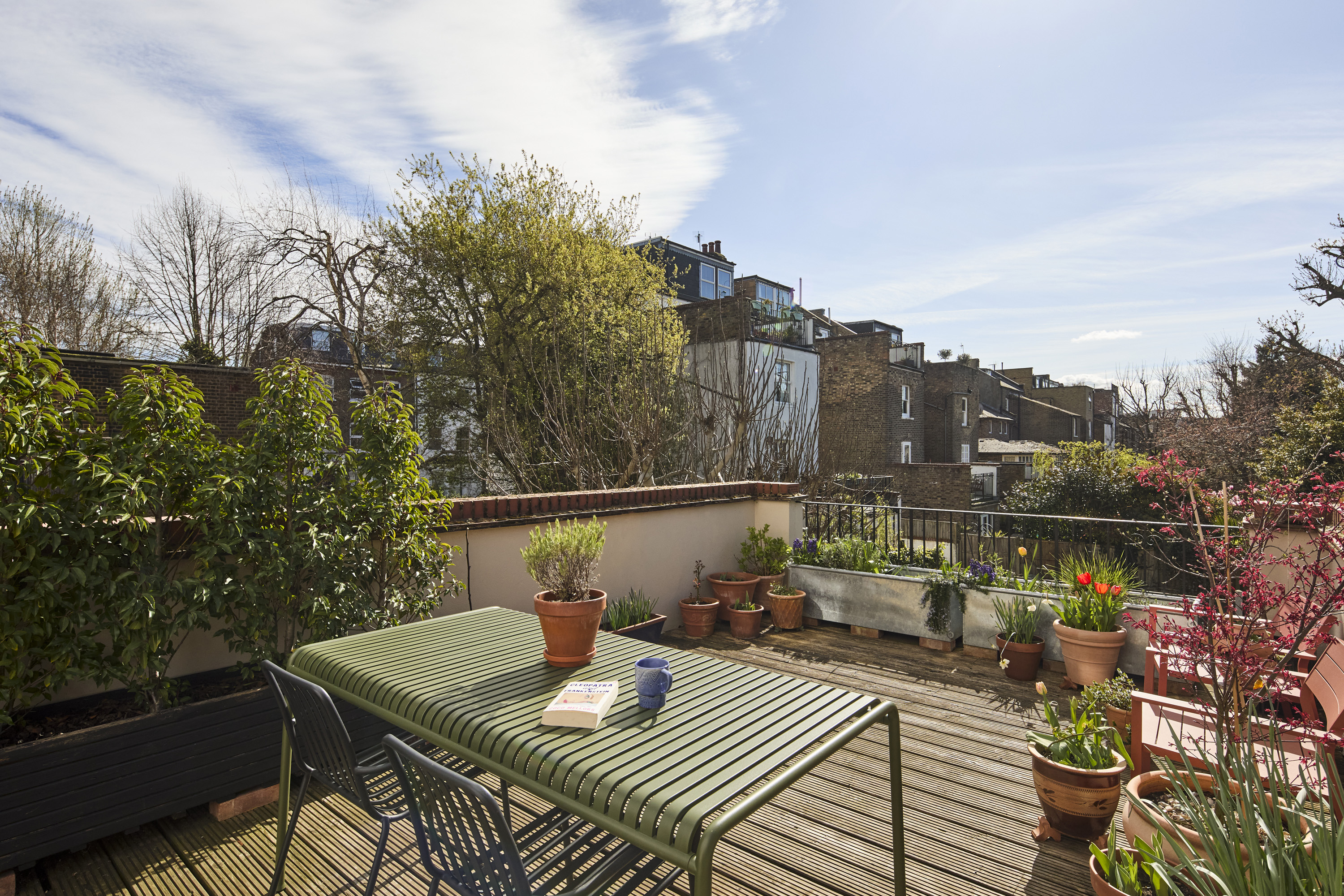 The second bedroom works perfectly as a home office that can moonlight as a guest room when needed. But the real delight is out back: a decked, south-west facing terrace just off the kitchen. It’s the sort of space that earns its keep — morning coffee, evening wine or popping out mid-recipe for herbs. A rare pocket of outdoor calm for N4, and arguably the flat’s best party trick.