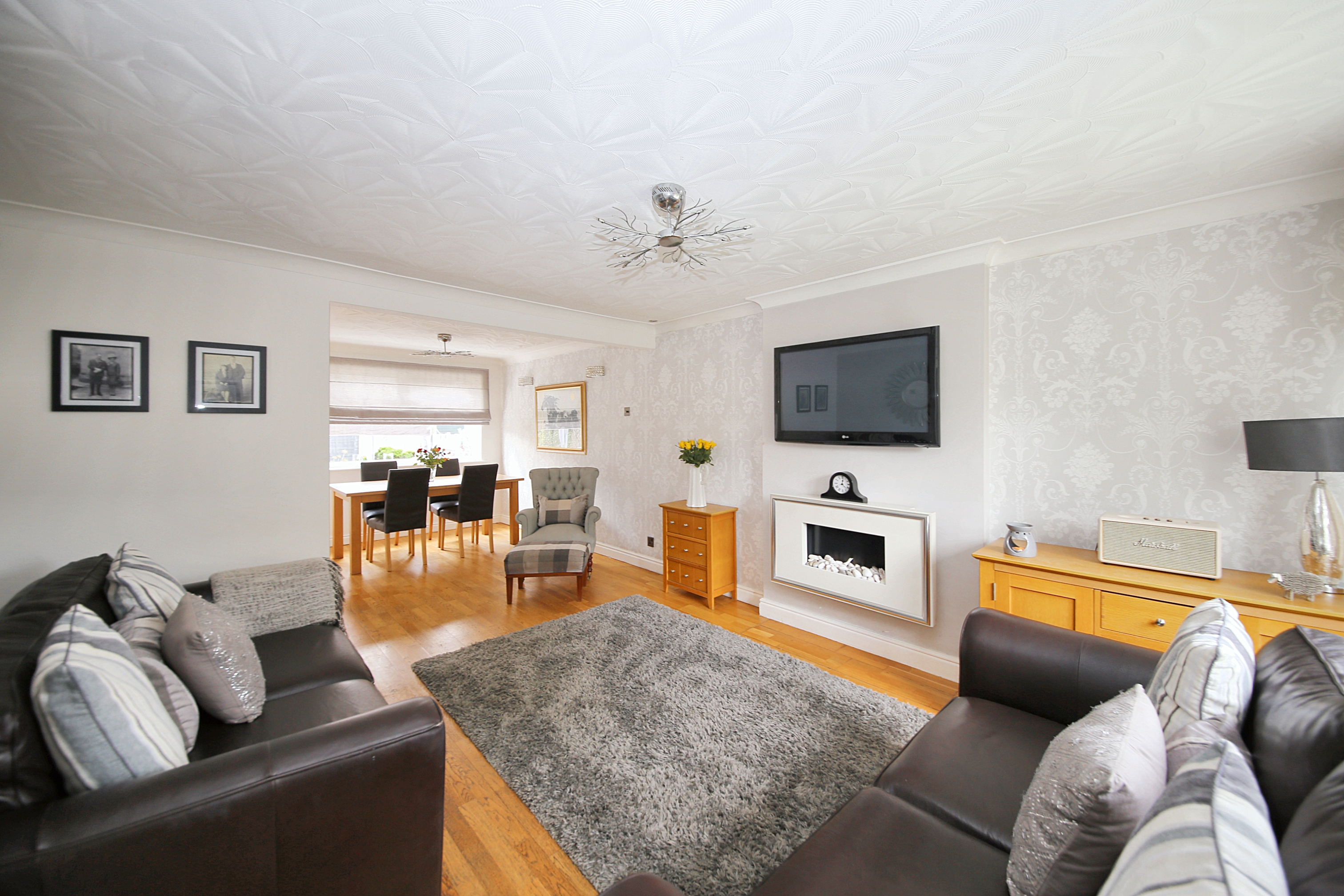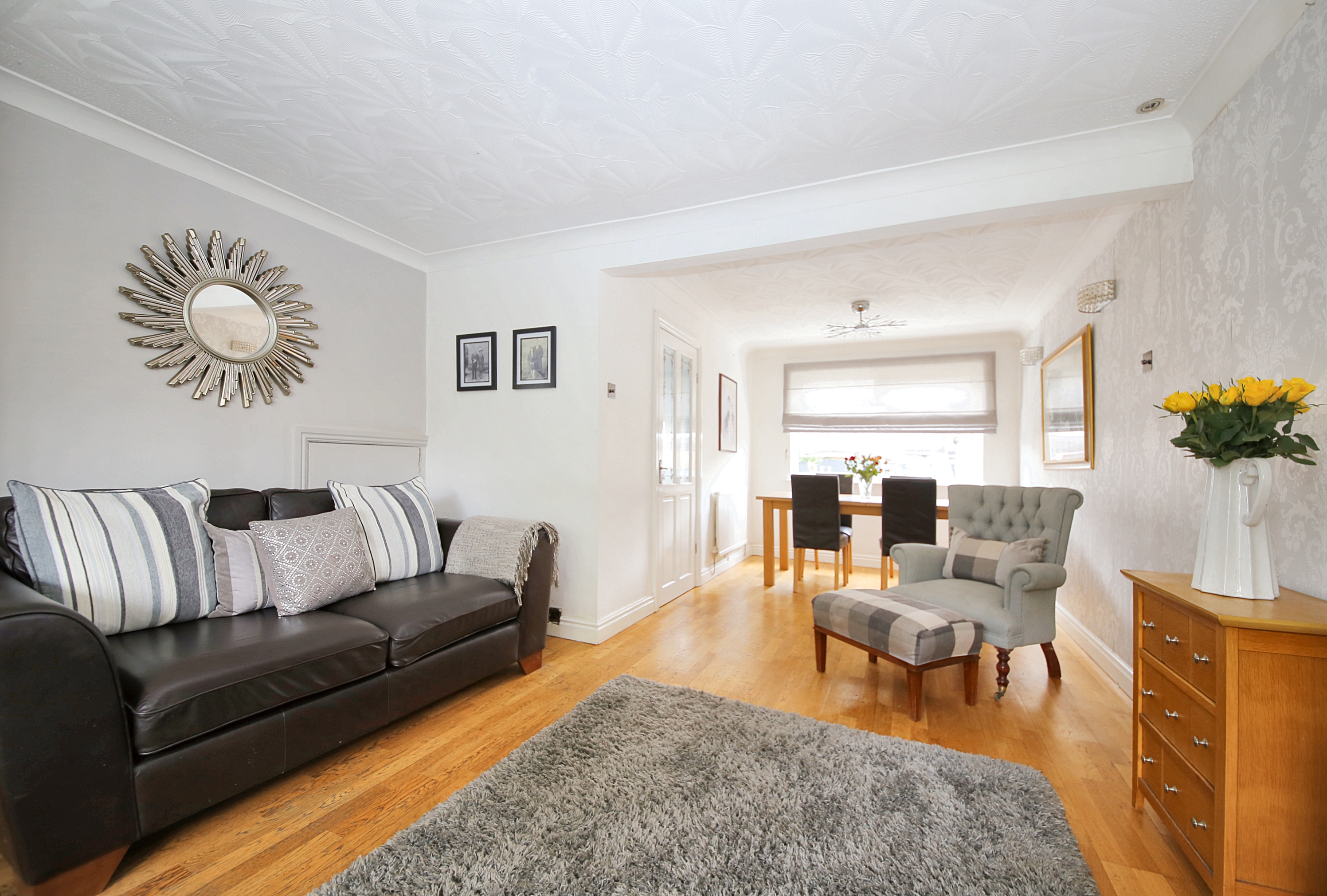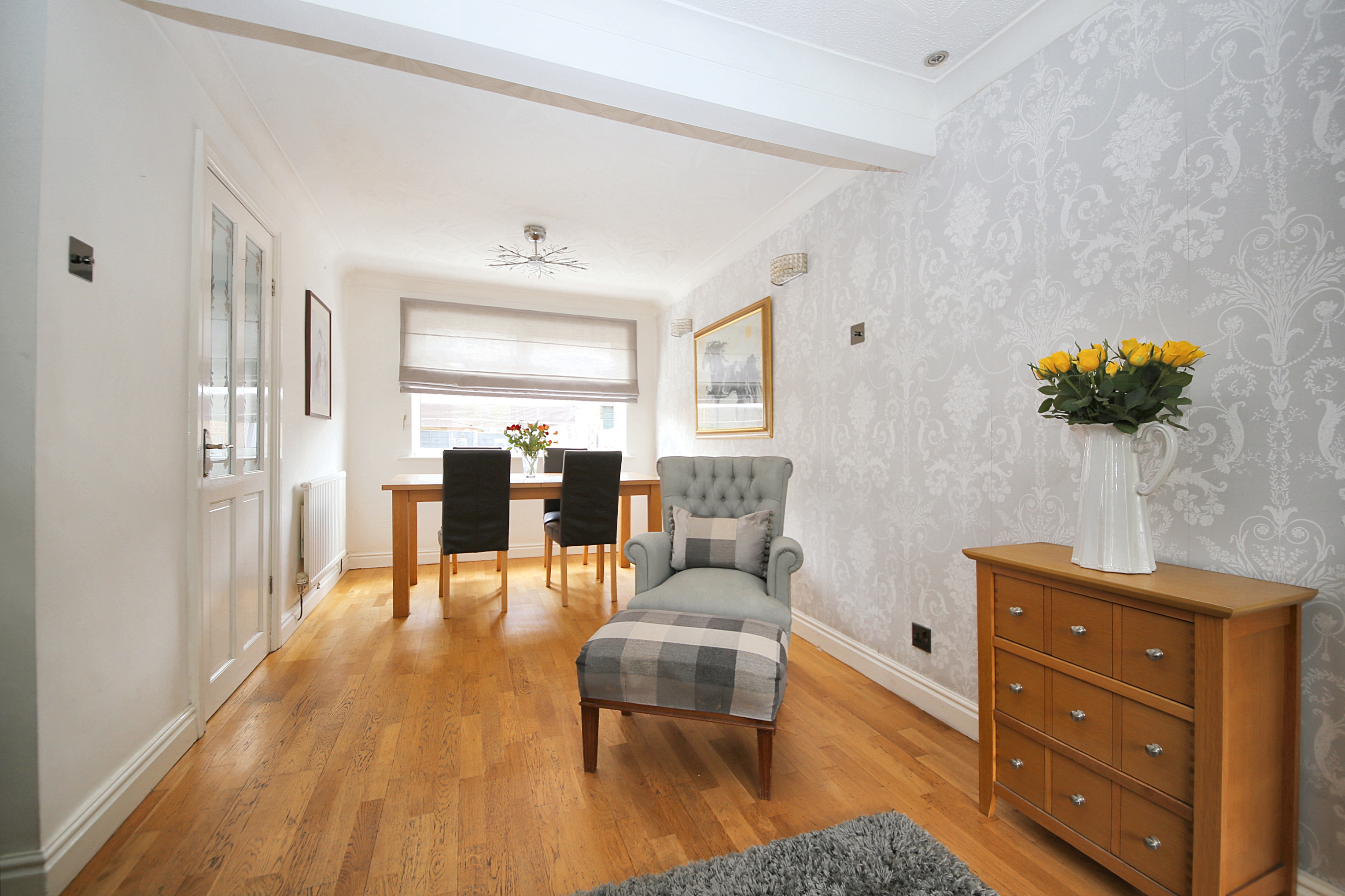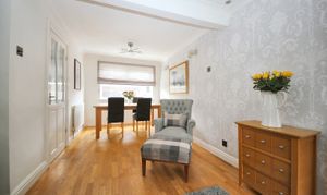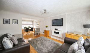 The ground floor of the residence boasts an open plan lounge diner, providing a versatile space for relaxation and entertaining. The lounge exudes warmth and comfort, with ample natural light streaming in through the windows, creating a bright and airy atmosphere. The adjoining diner offers a charming setting for family meals and social gatherings.