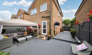 Externally, the property features a detached garage located in the rear garden, providing secure storage options. The rear garden boasts decking and lawn areas, offering a private and tranquil outdoor space for relaxation and outdoor activities.