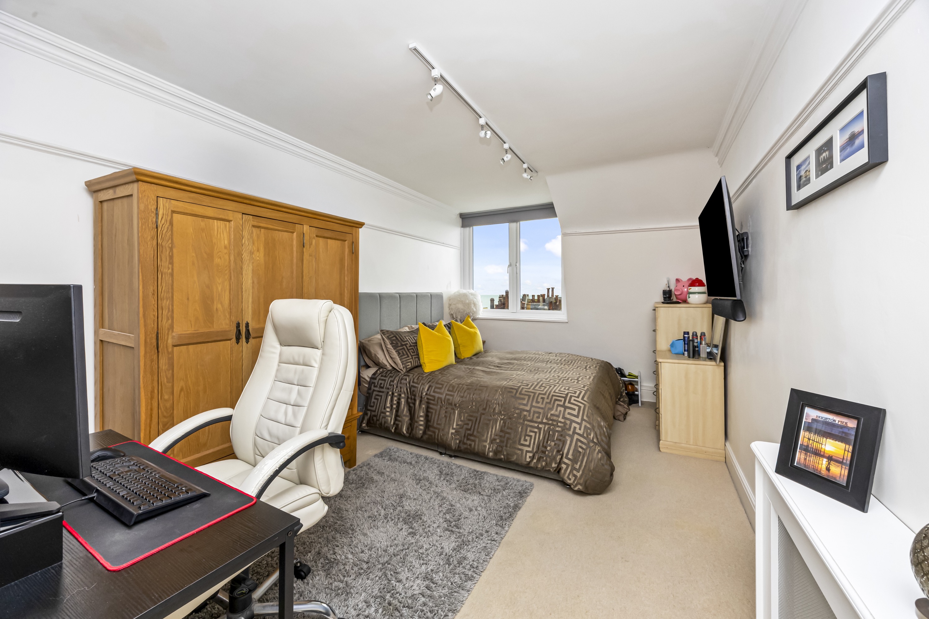 Forming part of the magnificent New Steine Mansions - formerly the New Steine Hotel and established on this historic site by 1864, this exceptional three-bedroom top-floor apartment offers a rare opportunity to acquire a substantial home in the heart of Brighton’s vibrant Kemptown, directly opposite the beautifully maintained New Steine Gardens (Georgian, circa 1806). With close to 1000 sq ft of meticulously presented accommodation, the apartment blends period elegance with modern comfort, all enhanced by far-reaching views towards the sea.