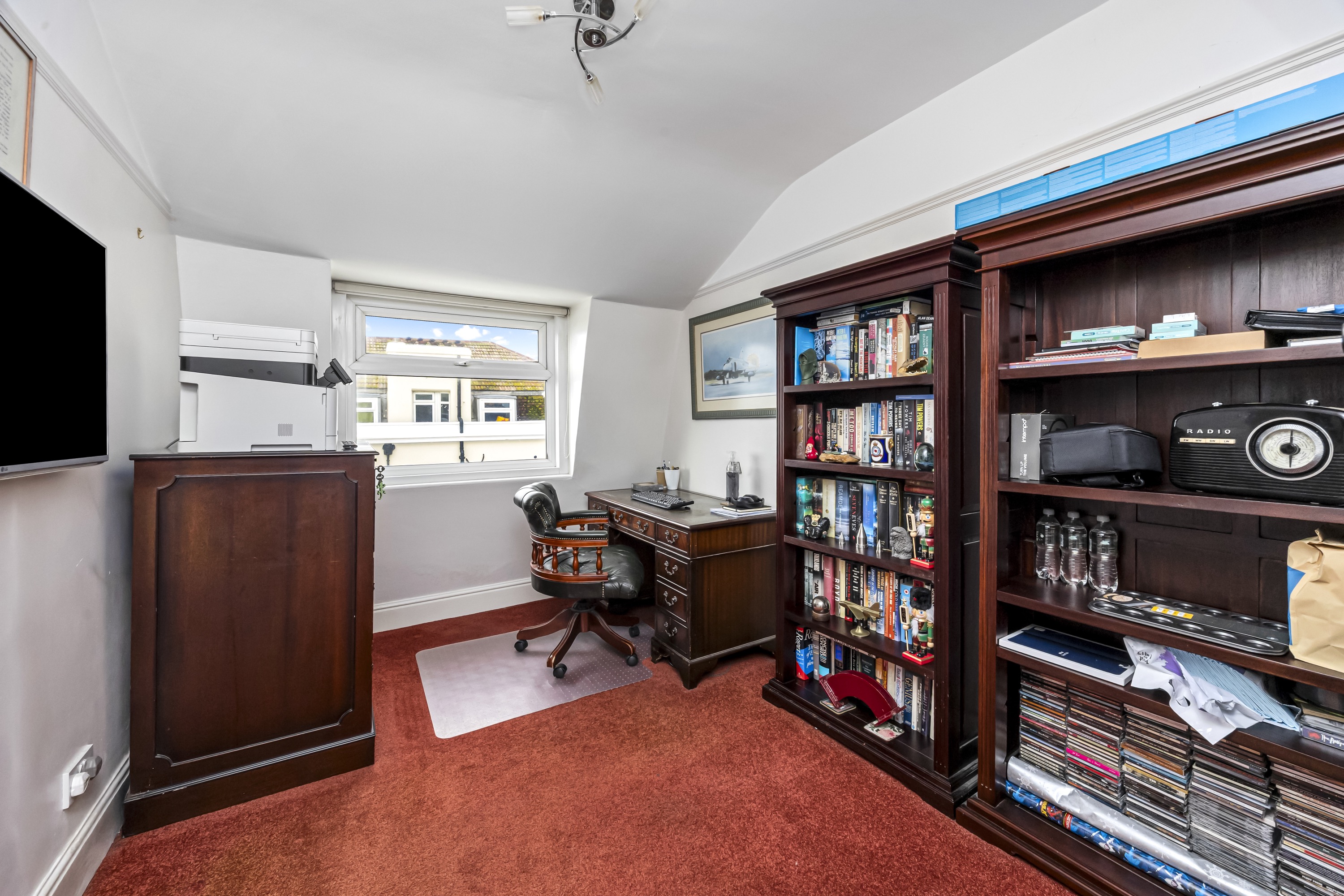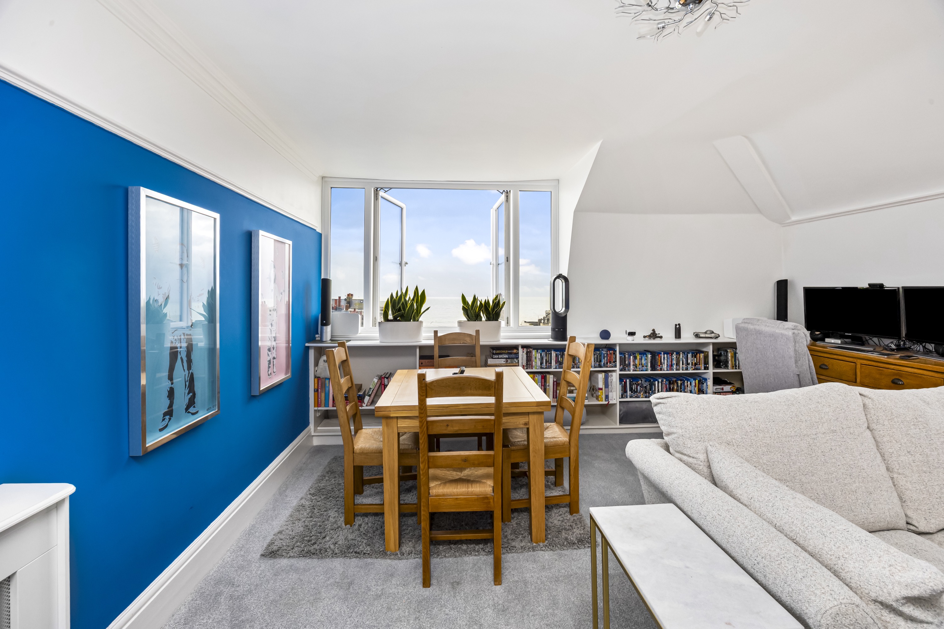 At the heart of the home sits the impressive double-aspect living/dining room. Flooded with natural light throughout the day, this generous reception space enjoys an enviable outlook across New Steine Gardens and onwards to the coastline, creating a truly special backdrop for both relaxed evenings and entertaining. The proportions allow for distinct lounging and dining zones, making the room as practical as it is impressive.