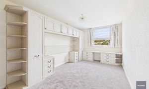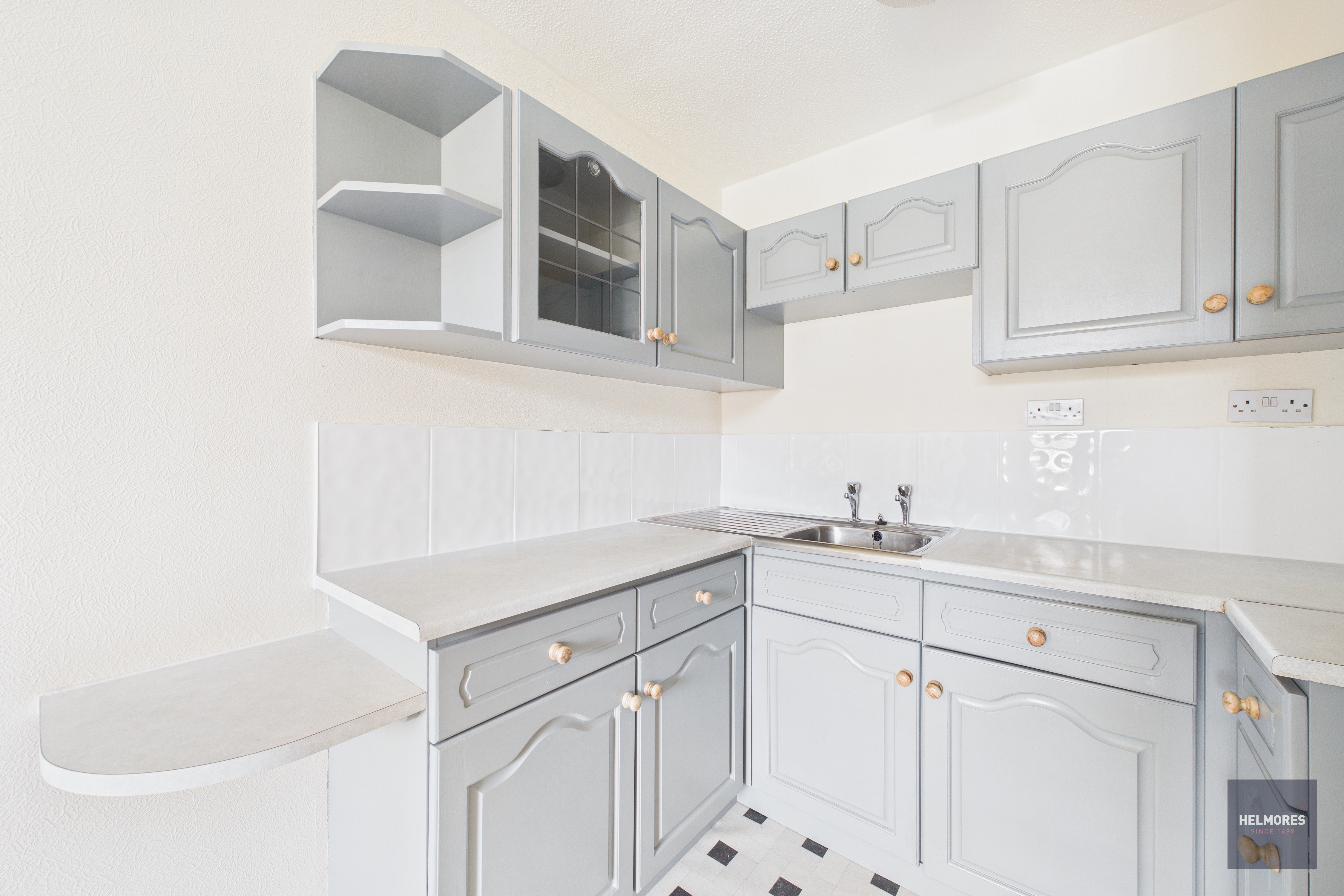The flat itself includes an open plan living/kitchen/dining room which has an elevated area to sit and enjoy the lovely views over the park. There’s a large double bedroom with an array of fitted cupboards and wardrobes. The bathroom has a white suite bath with shower over, WC and sink. The property has uPVC double glazing and an electric heater in the hall.