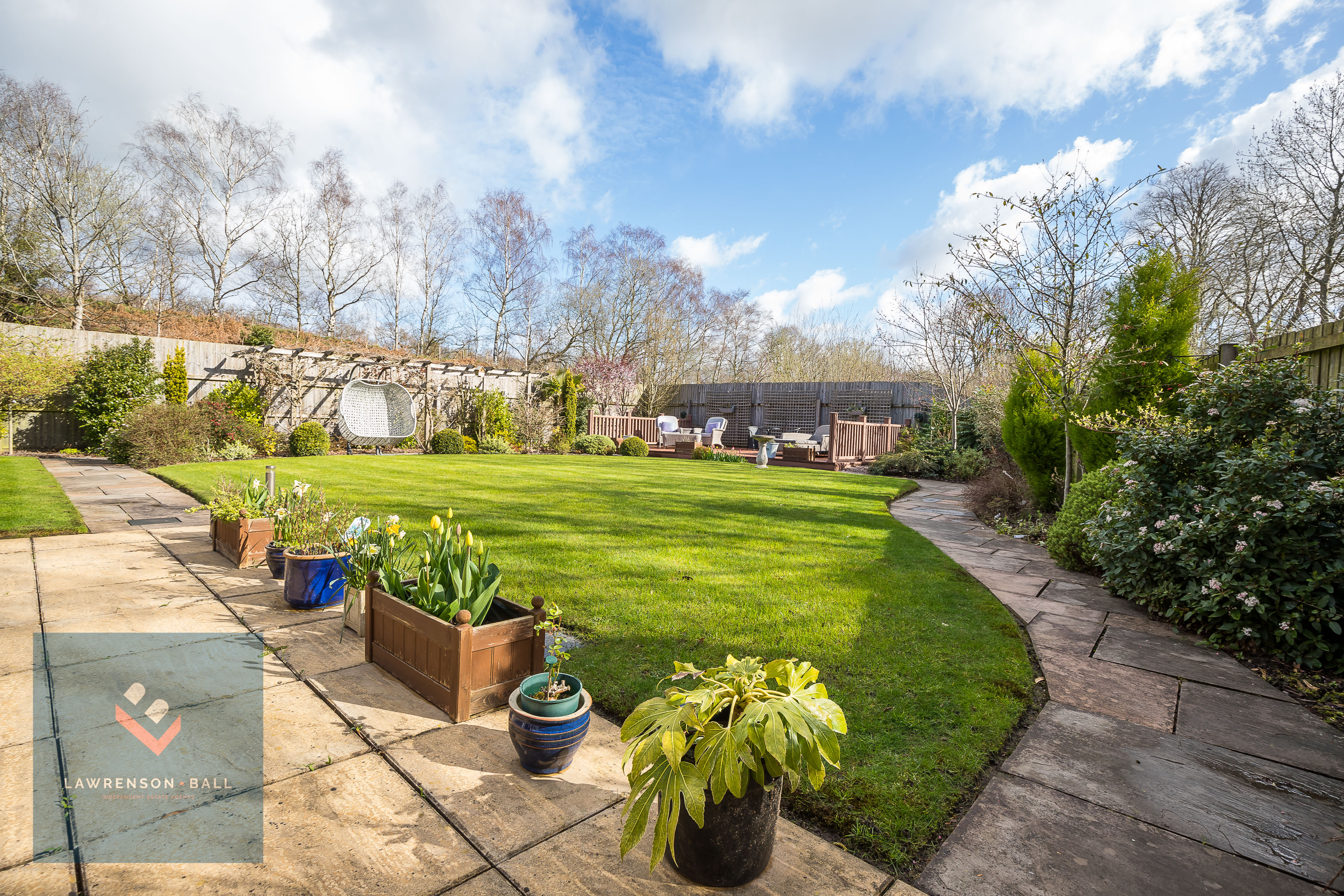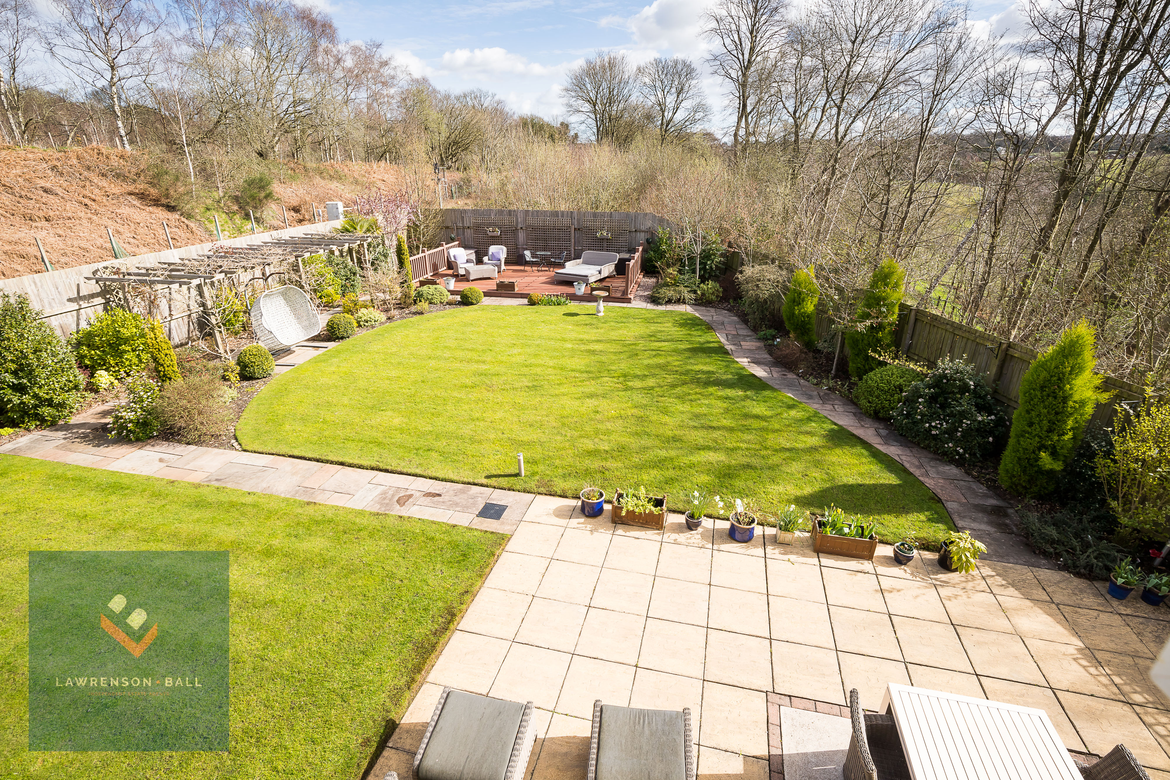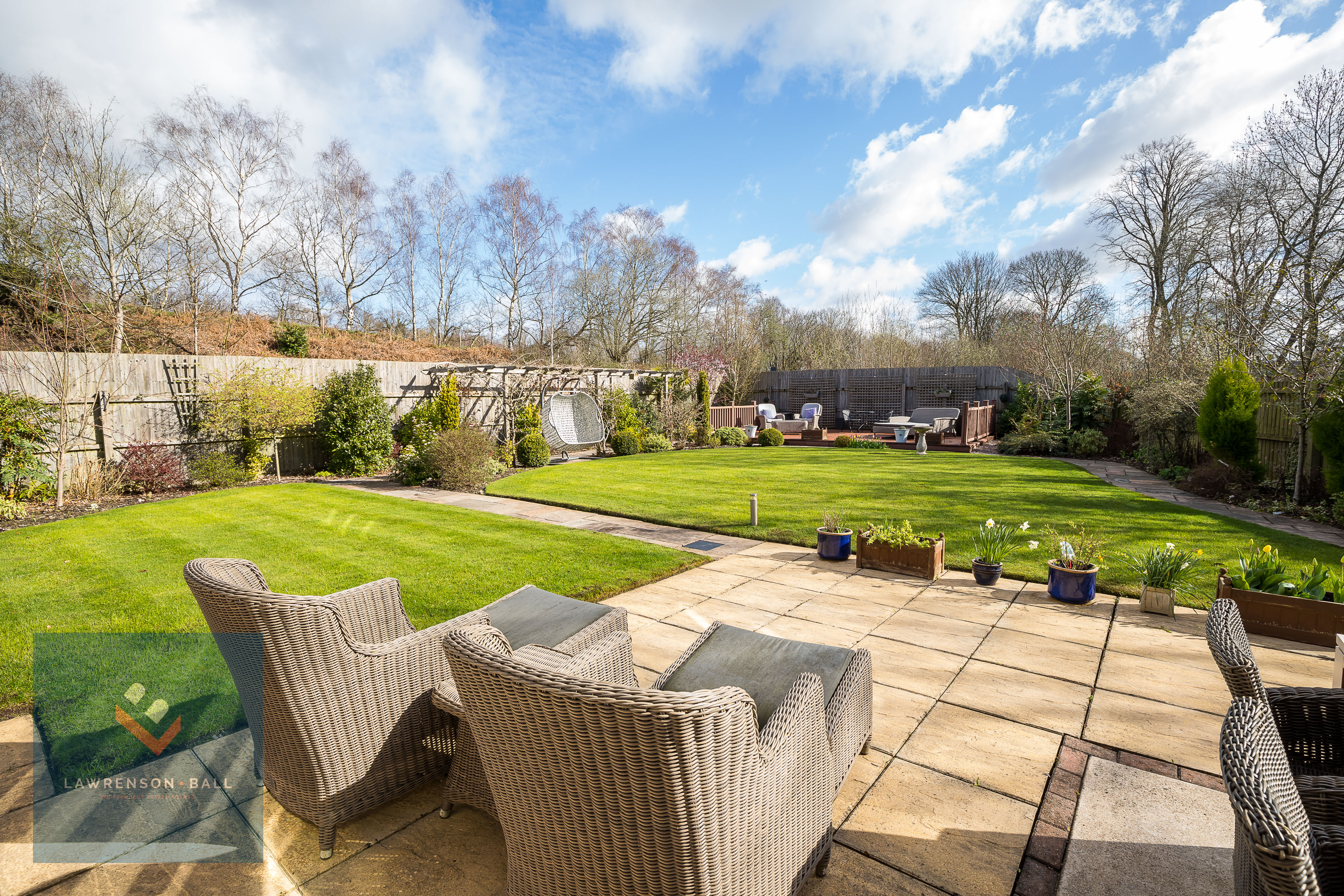 The gardens of this property are without doubt one of the major highlights. The rear garden is beautifully landscaped and mainly made up of lawned areas to the rear and side, well stocked beds and borders containing a variety of mature shrubs, a wonderful decked area and a very large patio with electric sun canopy over and wall mounted TV. Both the decked and patio areas provide perfect places for seating or al-fresco dining whilst the lawns are perfect for pets or children to enjoy. The garden benefits from a very high degree of privacy as it is not overlooked from any angle and is bordered by mature woodland.