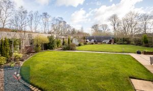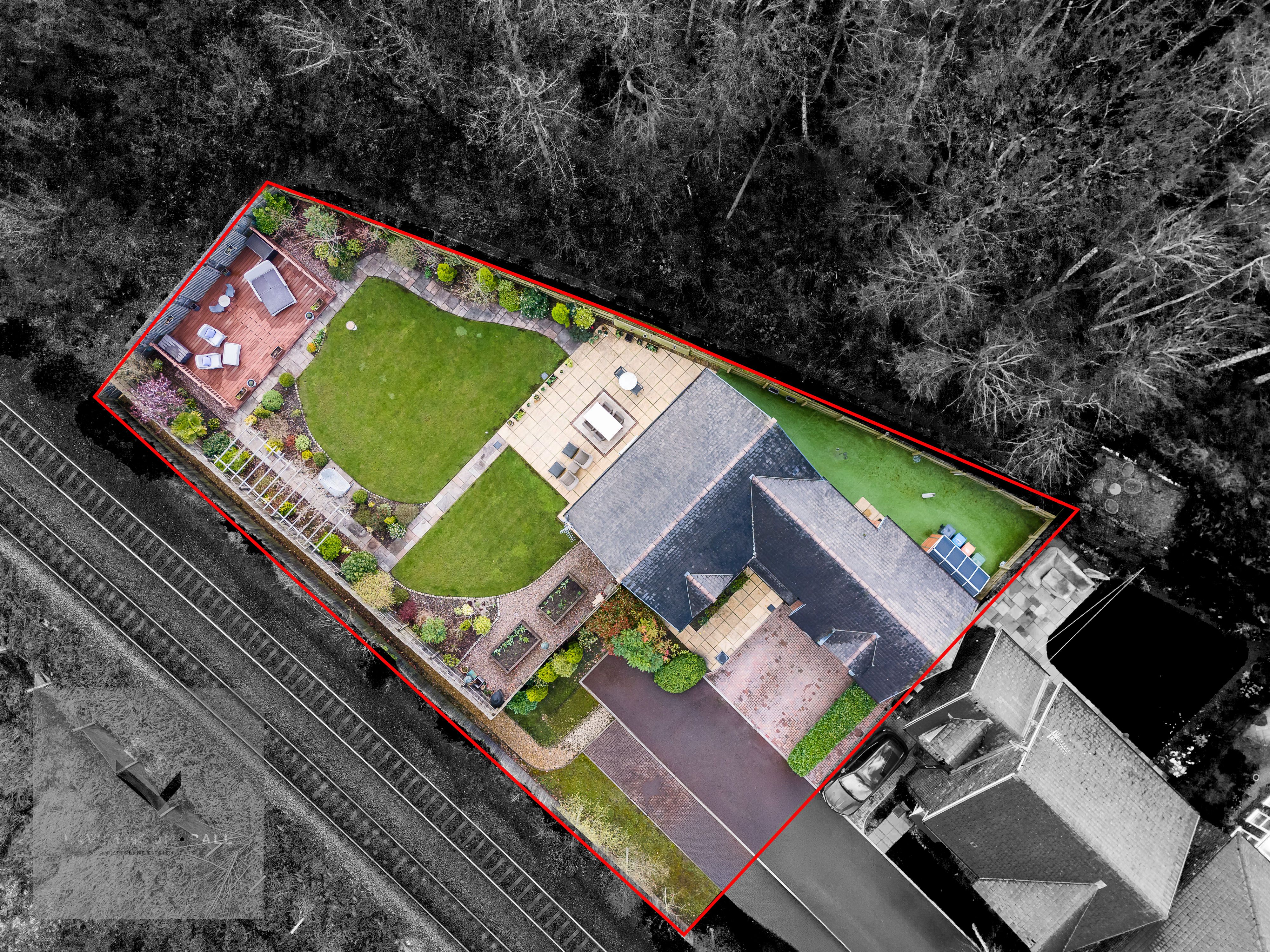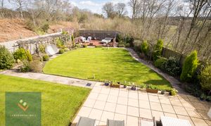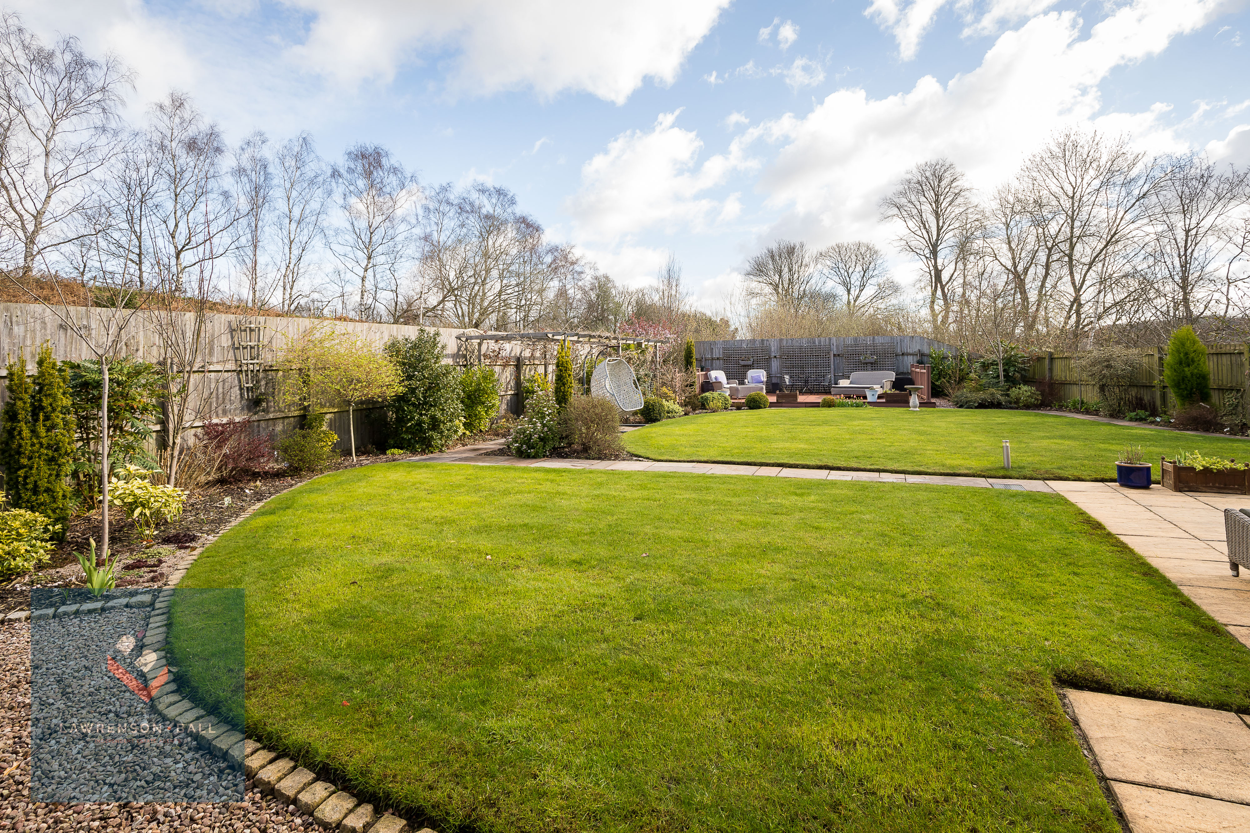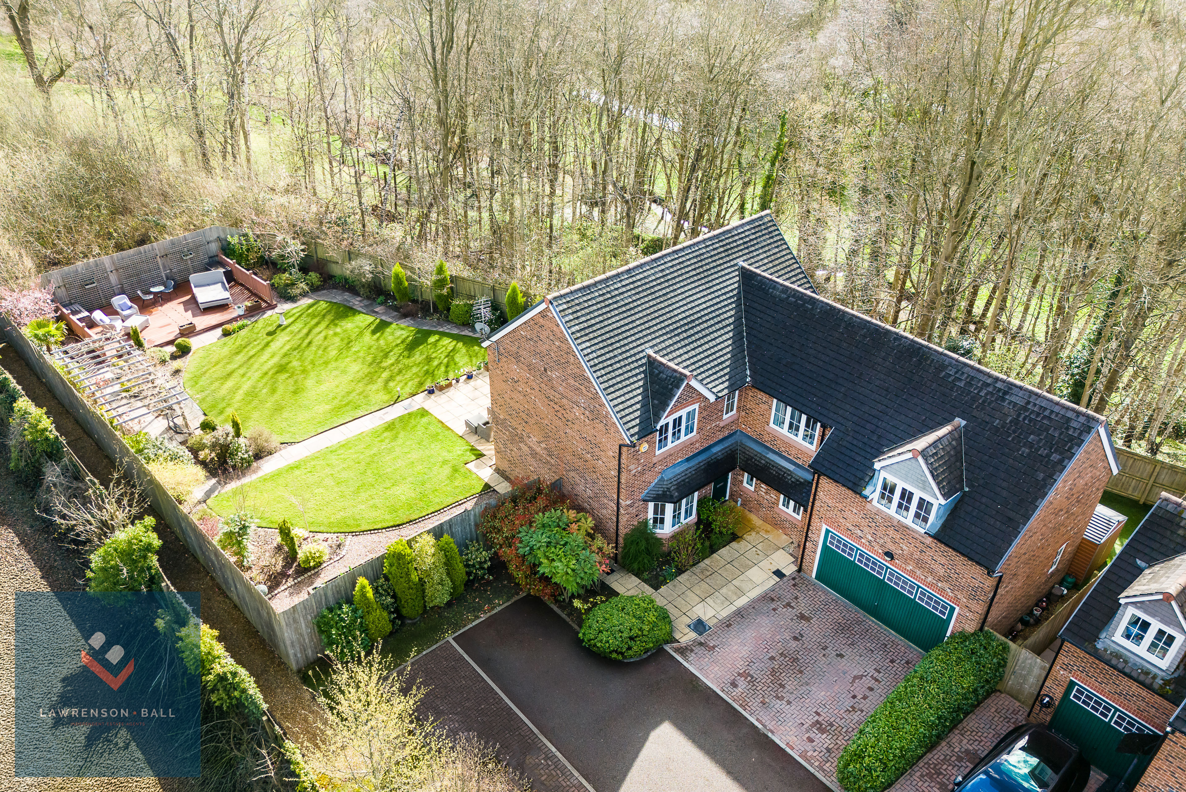The gardens of this property are without doubt one of the major highlights. The rear garden is beautifully landscaped and mainly made up of lawned areas to the rear and side, well stocked beds and borders containing a variety of mature shrubs, a wonderful decked area and a very large patio with electric sun canopy over and wall mounted TV. Both the decked and patio areas provide perfect places for seating or al-fresco dining whilst the lawns are perfect for pets or children to enjoy. The garden benefits from a very high degree of privacy as it is not overlooked from any angle and is bordered by mature woodland.