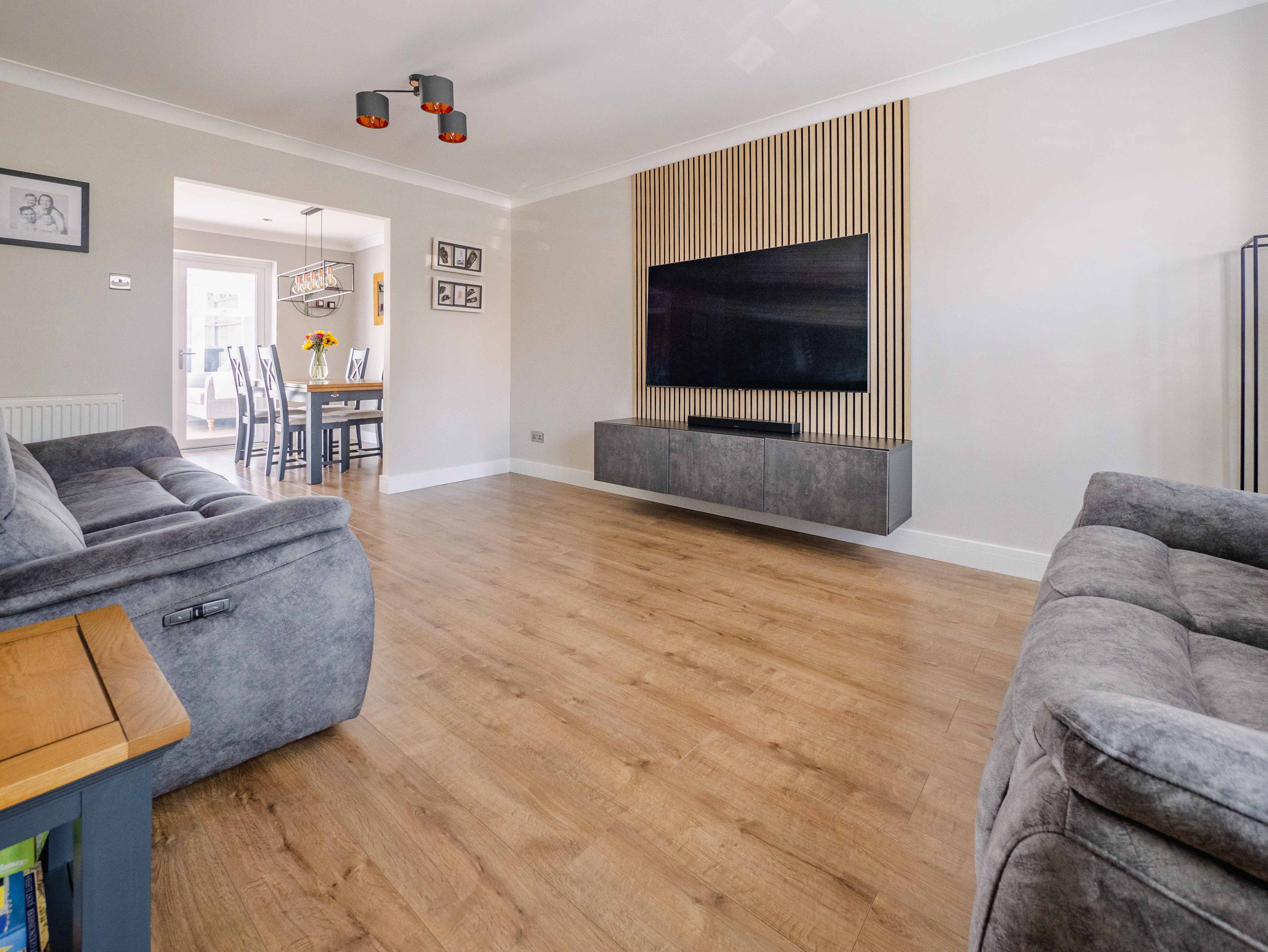 Step inside, and you'll be greeted by a sense of quality that is seen throughout. The ground floor offers a large living room, perfect for relaxing and entertaining. Its generous proportions provide plenty of space for comfortable seating arrangements and create a warm and cosy feel to the space.