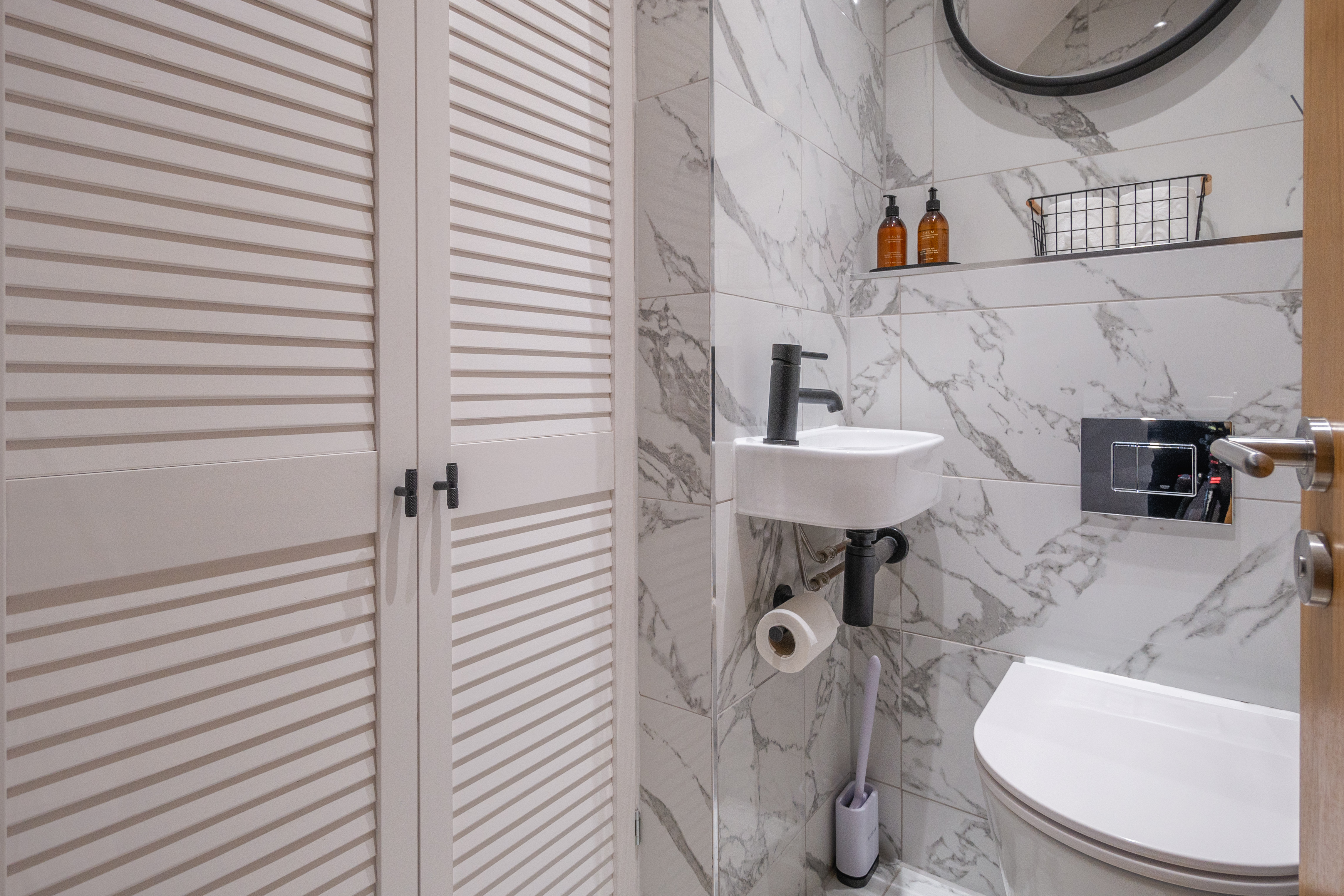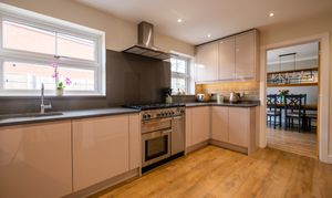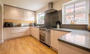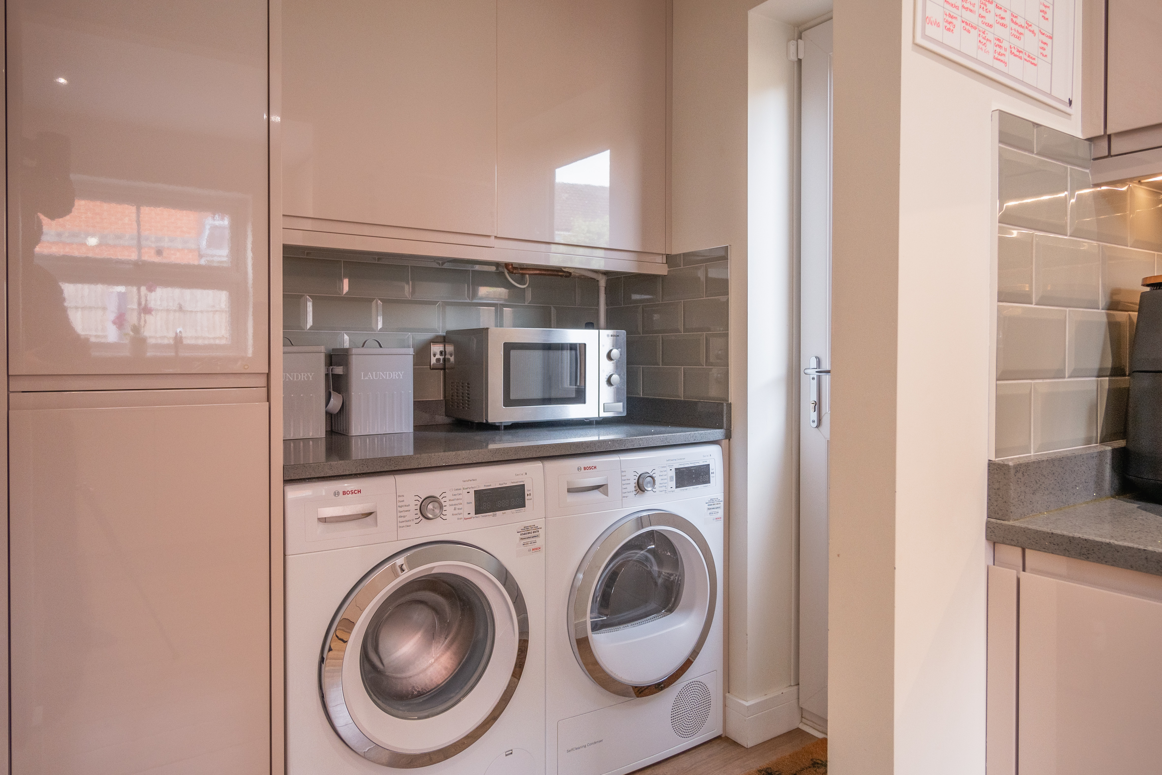 Next you'll find a modern kitchen that is as functional as it is stylish. It features contemporary finishes with quartz worktops and integrated appliances. There is plenty of worktop space to try out those ingredient heavy recipes and the cupboard space to store the utensils. Completing the ground floor is a utility area and a w/c.