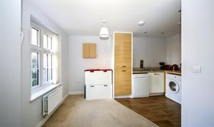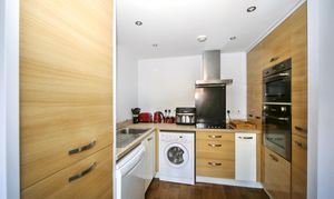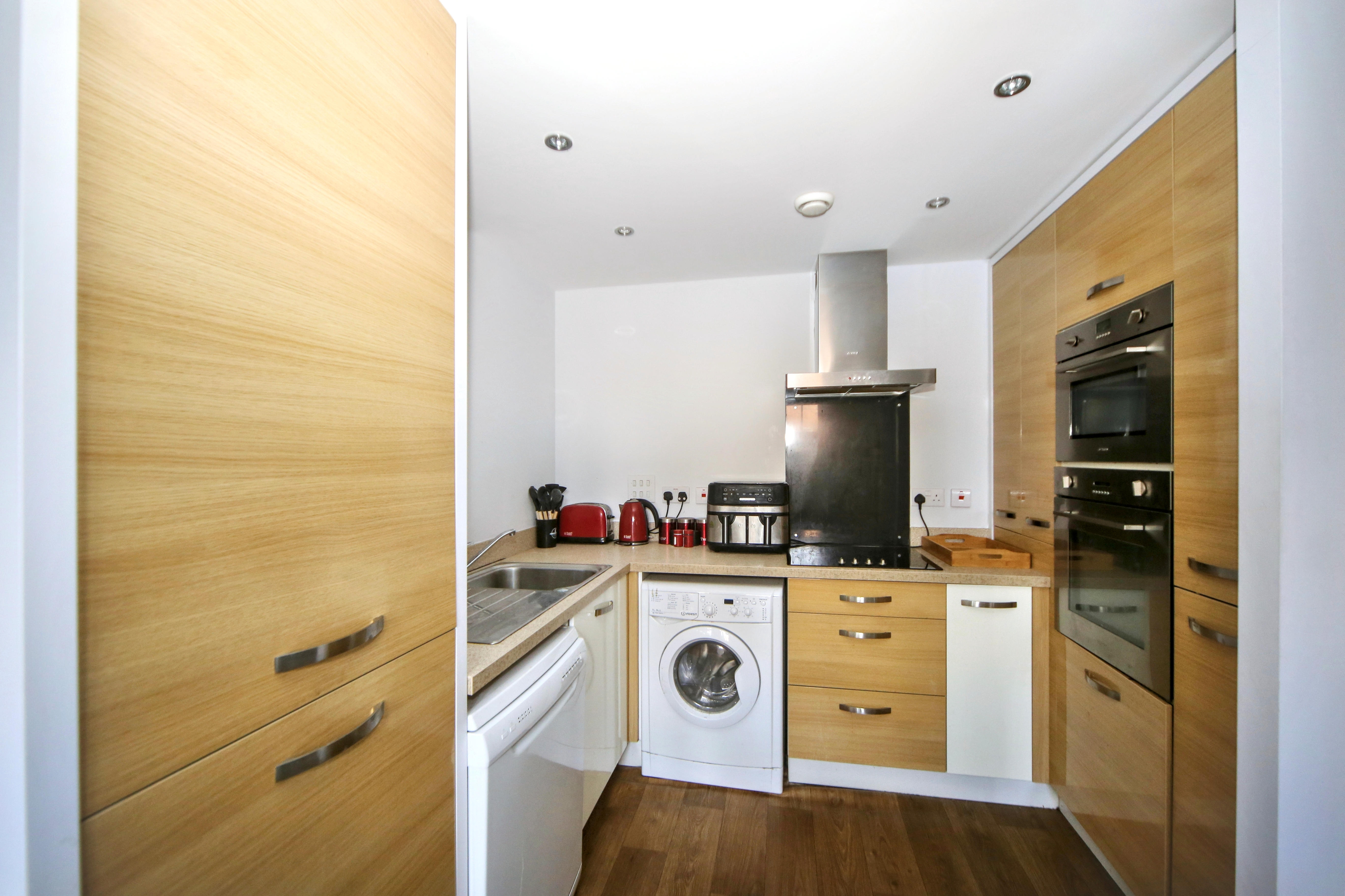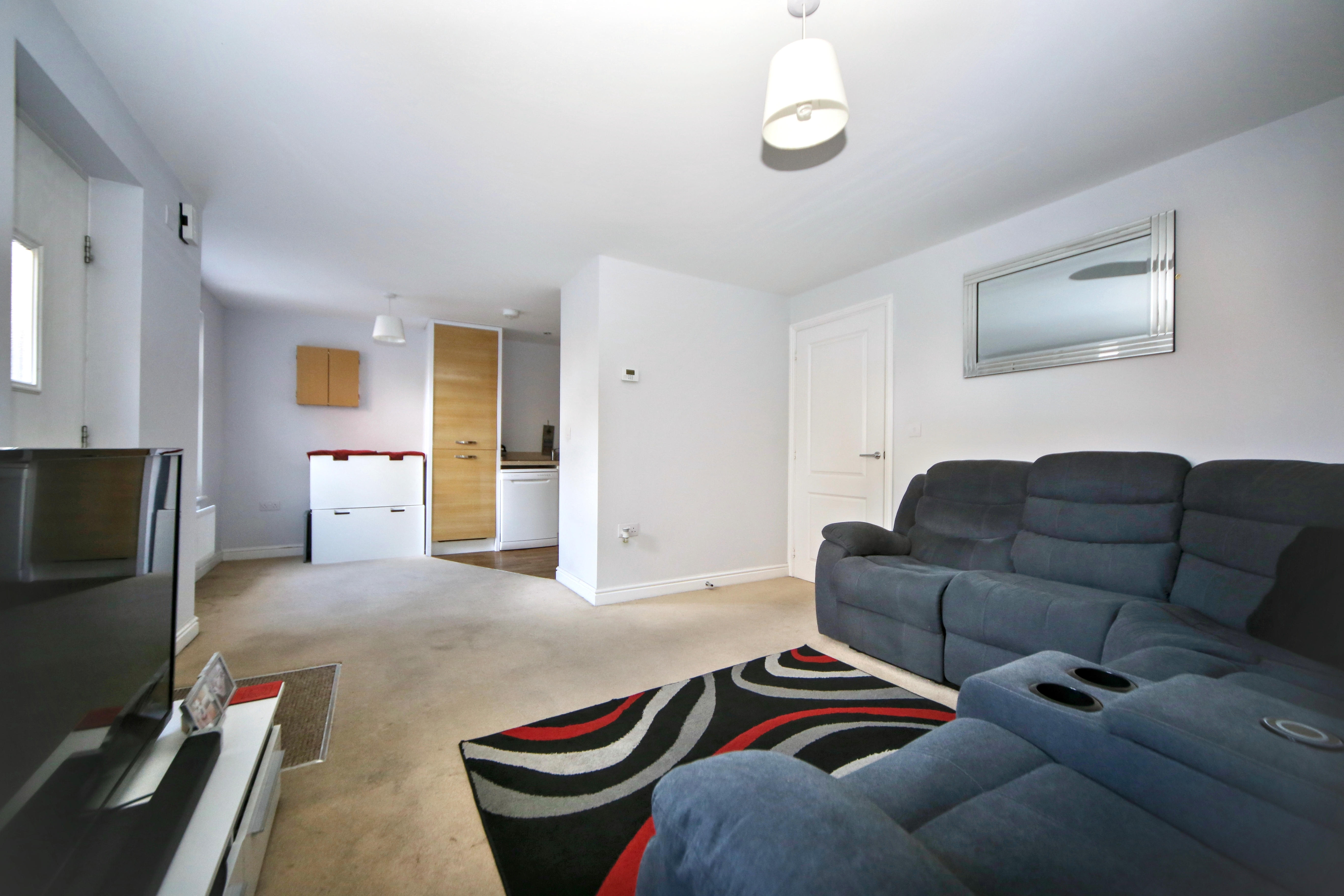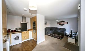 The property features a bright and spacious open-plan living and dining area, seamlessly flowing into a contemporary kitchen fitted with a range of integrated appliances including a fridge freezer, oven, microwave oven and electric hob, making it ideal for both everyday living and entertaining. Both bedrooms are well proportioned, while the apartment is completed by a modern bathroom finished to a clean, neutral standard.