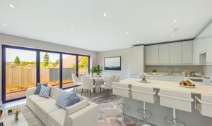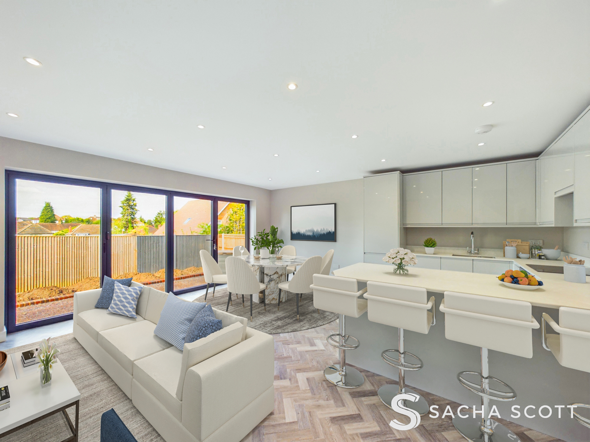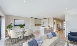 Bright and generous in size, the open plan kitchen/family room is located at the rear of this lovely new home and offers luxury parquet vinyl flooring, quartz worktops and upstands and integrated Bosch appliances. Benefiting from underfloor heating and anthracite aluminium bi-fold doors, this fabulous open plan area offers ample space for both lounge and dining areas.