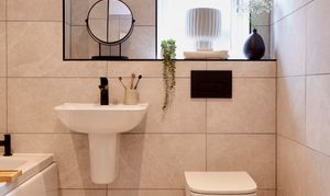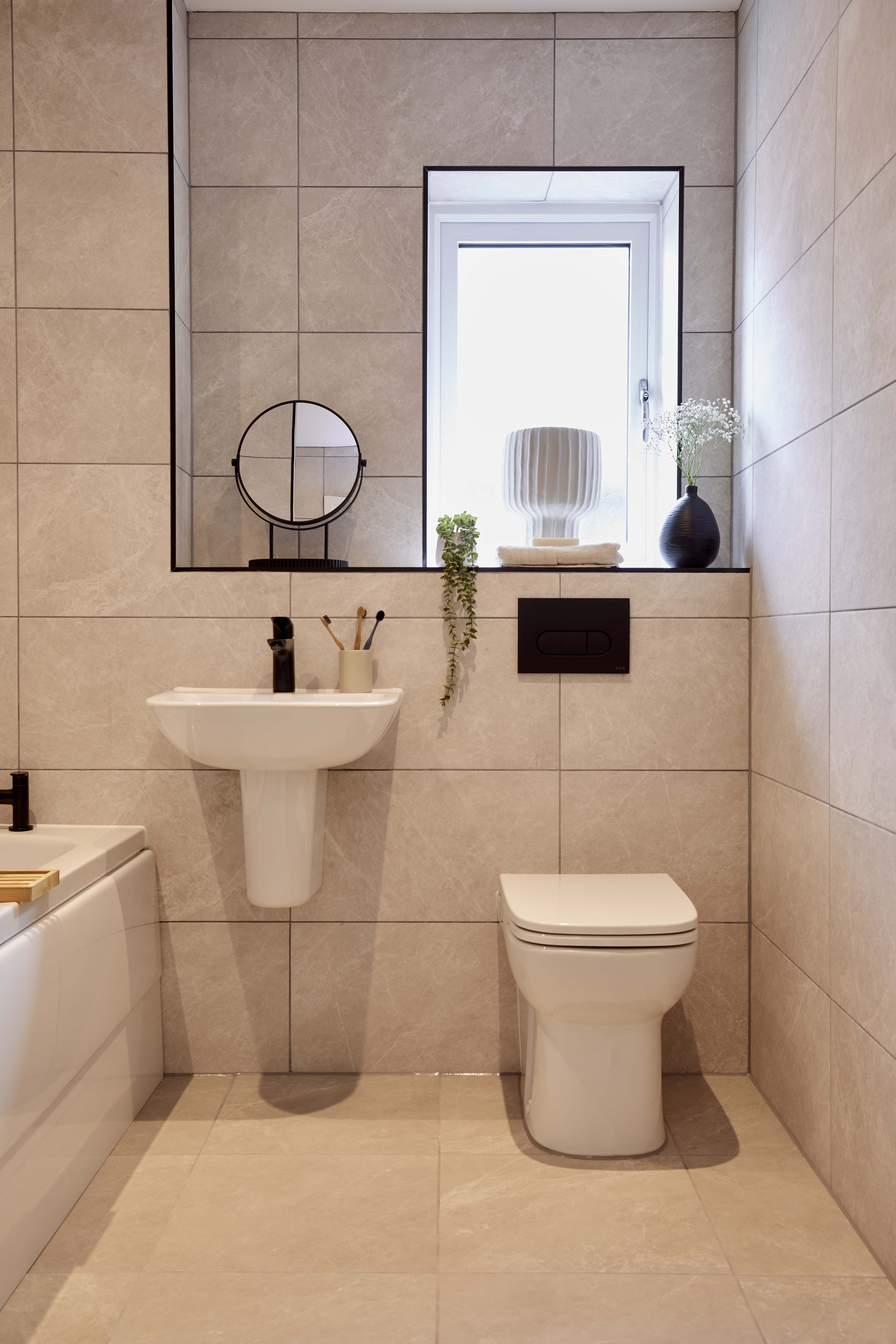 - Family Bathroom With White Vitra Sanitaryware, Separate Hansgrohe Shower And Porcelanosa Tiling