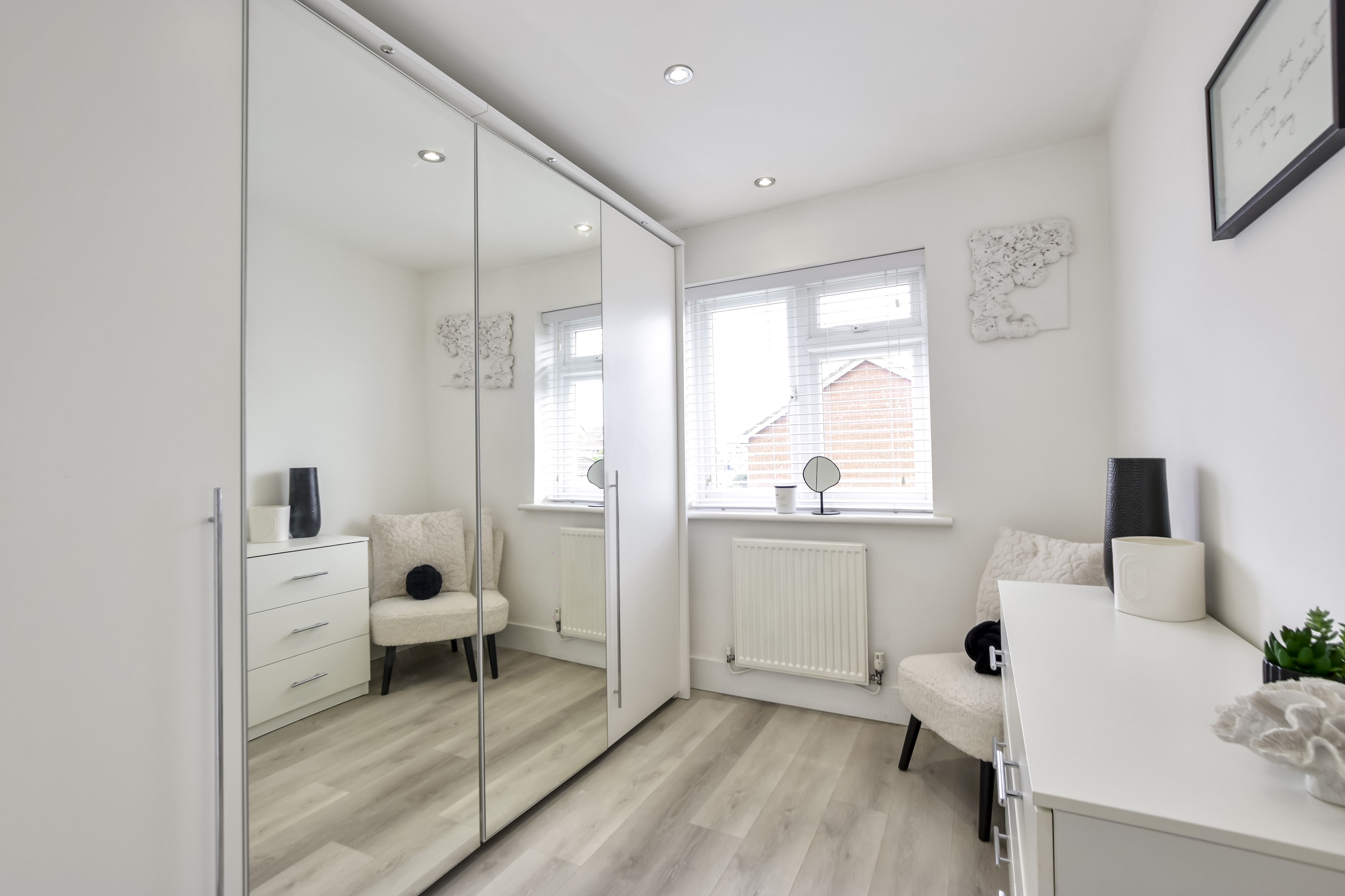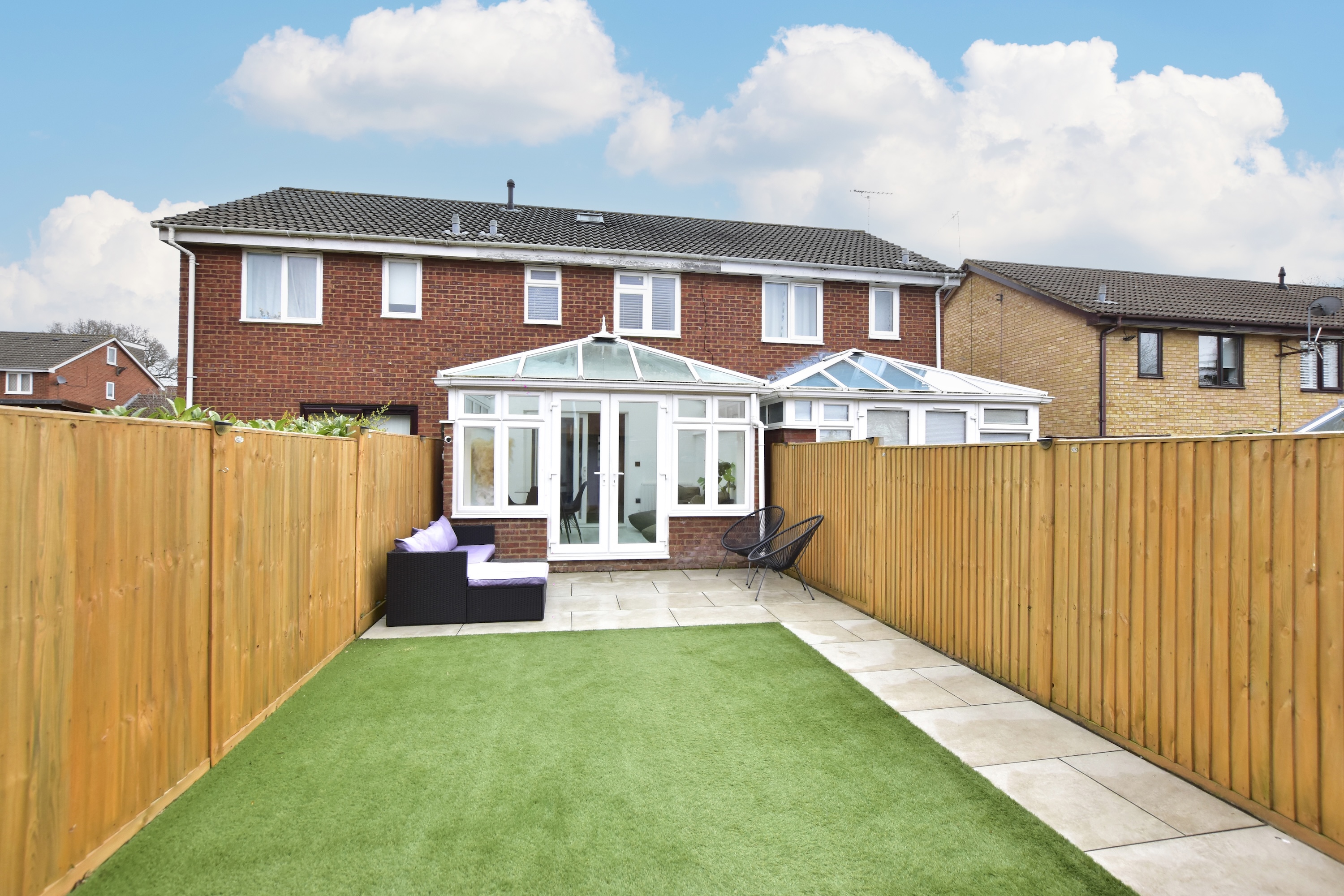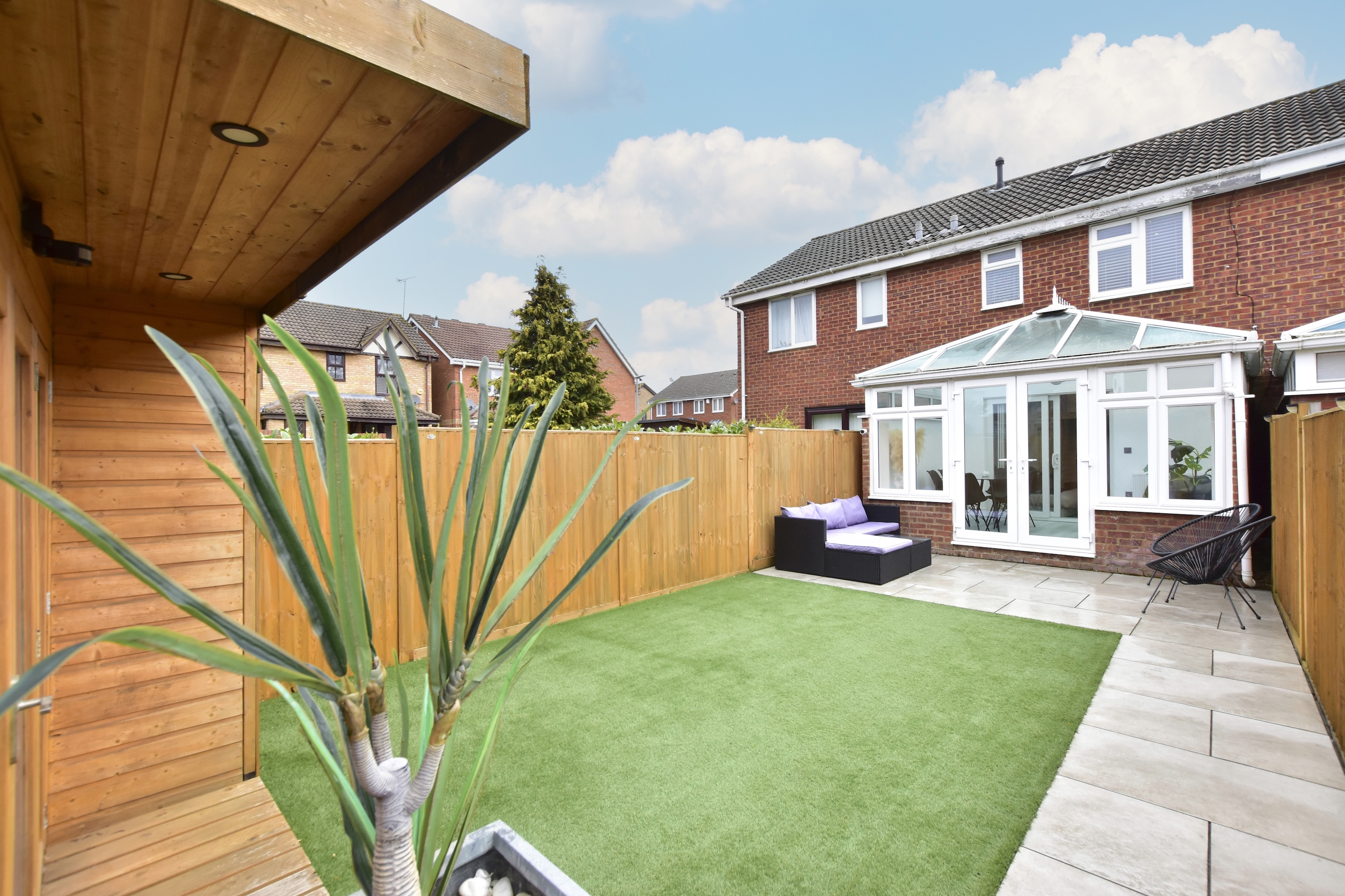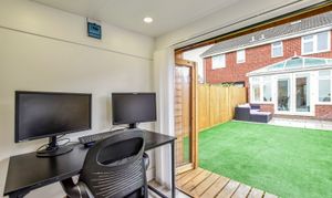 The current owners have ensured that every aspect of this property is immaculately maintained, allowing you to move straight in and enjoy the comfortable surroundings. A standout feature of this home is the low maintenance fully landscaped garden, which boasts a comfortable patio area. Additionally, there is a high quality artificial lawn and a versatile garden room, currently being used as a home office. A gate at the rear gives access round to the front of the house, where there is allocated parking for 2 cars.