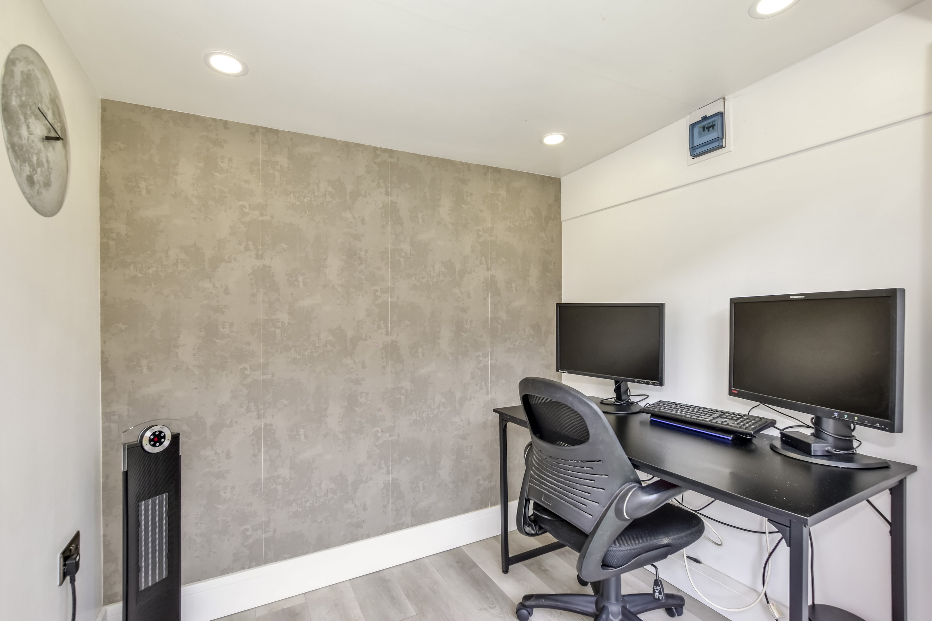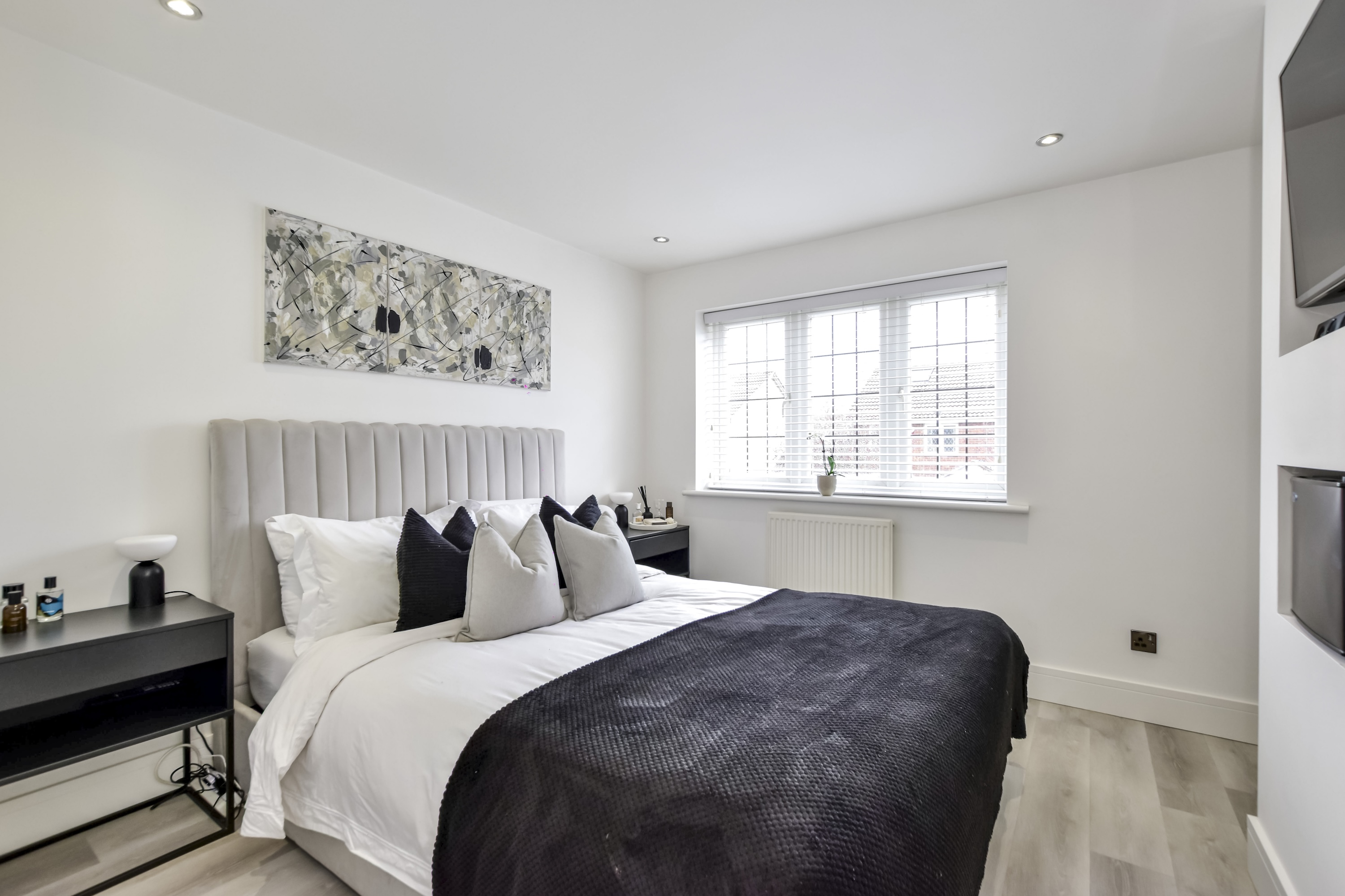 Upstairs, you will find two generous bedrooms, with the Master room boasting fitted storage and a media wall. Both rooms are serviced by a contemporary refitted bathroom featuring elegant fixtures and a luxurious walk-in double shower.