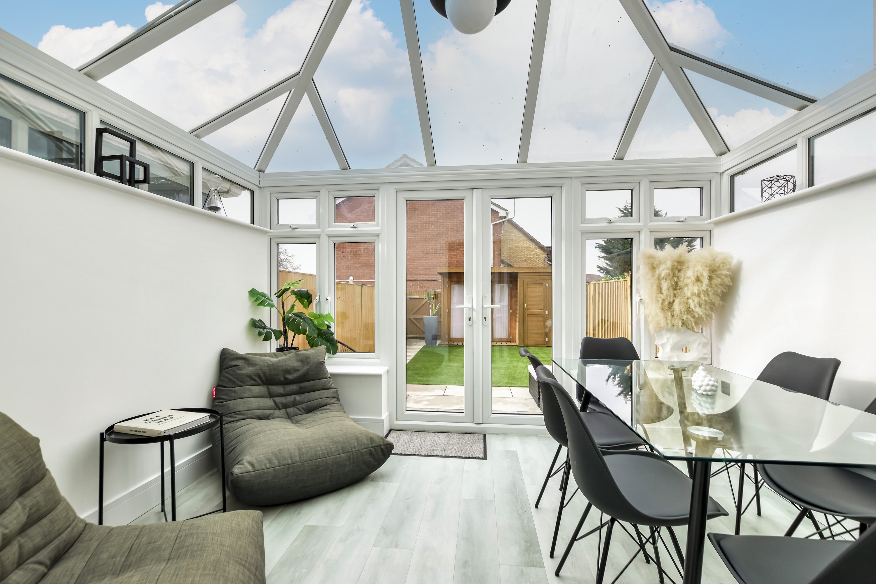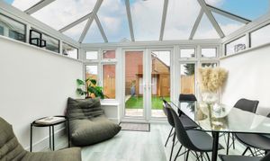 The accommodation itself is spacious and bright, with every detail finished to a high specification throughout. Upon entering, you are greeted by a welcoming hallway that leads to a bright and airy living space, tastefully decorated in modern tones to create an inviting atmosphere, complete with media wall and feature fire. From here, you are taken out to a large conservatory. The stylish and well-appointed kitchen boasts high-quality fittings and ample storage. The ground floor also benefits from a convenient guest W/C.