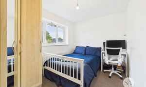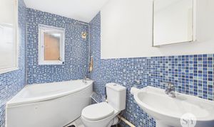The property features two generously sized double bedrooms, each offering plenty of space for furniture. Both rooms come complete with fitted wardrobes, providing convenient built-in storage. With neutral décor and good natural light, these rooms offer a comfortable and practical living environment, ideal for families, professionals, or sharers. The bathroom is fitted with a standard three-piece suite comprising a corner bathtub, wash basin, and WC. The layout is practical and functional, with tiled walls for easy maintenance. The corner bath adds a touch of comfort.