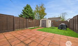 The property benefits from a low-maintenance rear garden featuring a combination of paved areas, Astroturf and a Keter shed.