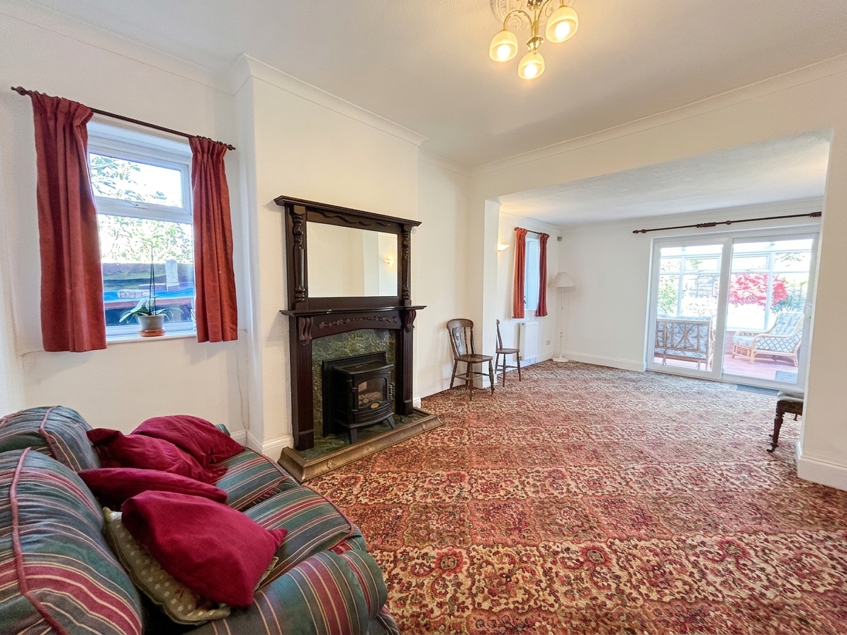 Dual aspect windows to side elevation. Electric Fireplace. Sliding doors through to: