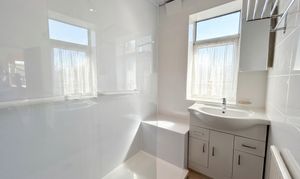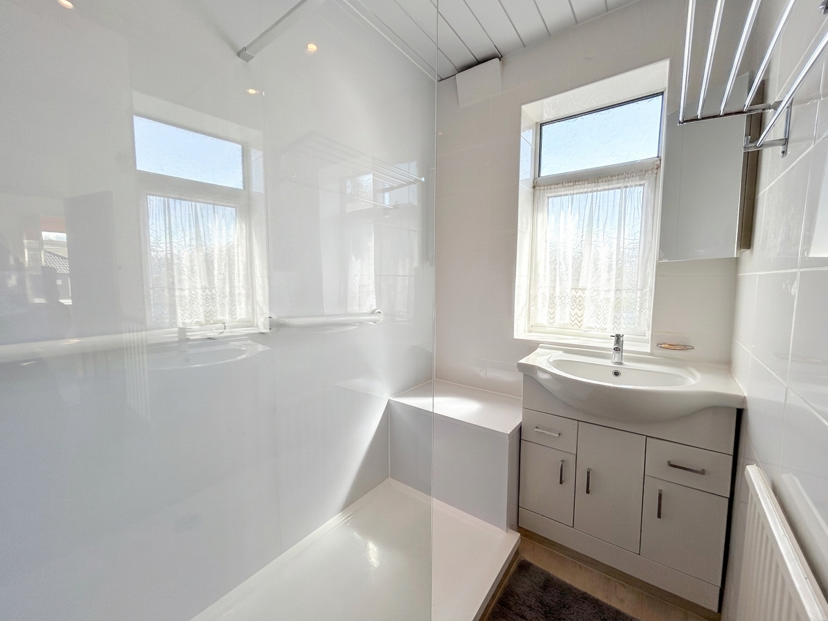 Window to side elevation. Fitted with vanity handwash basin and large shower.