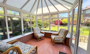 The accommodation comprises a welcoming lounge featuring a bay window and log burner, a large dining room that opens through to a bright conservatory, and kitchen with pleasant views over the rear garden. Upstairs, there are three double bedrooms and a fourth bedroom that would serve well as an office or single bedroom.