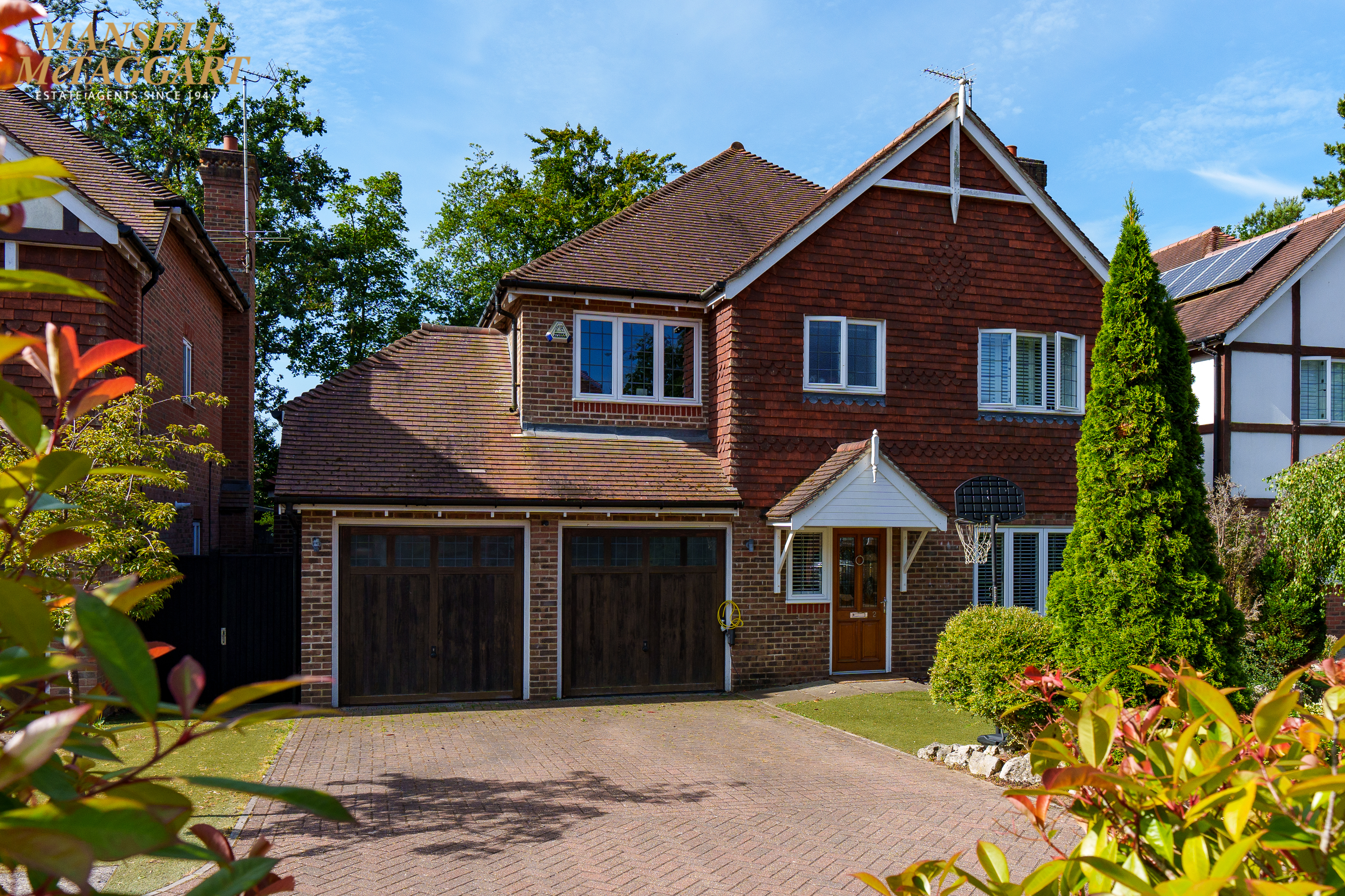 Outside the south facing rear garden has a patio area, lawn, a rear patio area, planted borders and side gate access. At the front there are two parking spaces in front of the double garage.