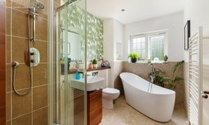 On the first floor the landing has access to the loft hatch and storage cupboard with mega flow tank, four good size bedrooms one of which is the master which has ensuite shower room with its own cubicle, WC, wash hand basin with vanity unit. The large family bathroom has shower cubicle, free standing bath, WC, wash hand basin with vanity unit.