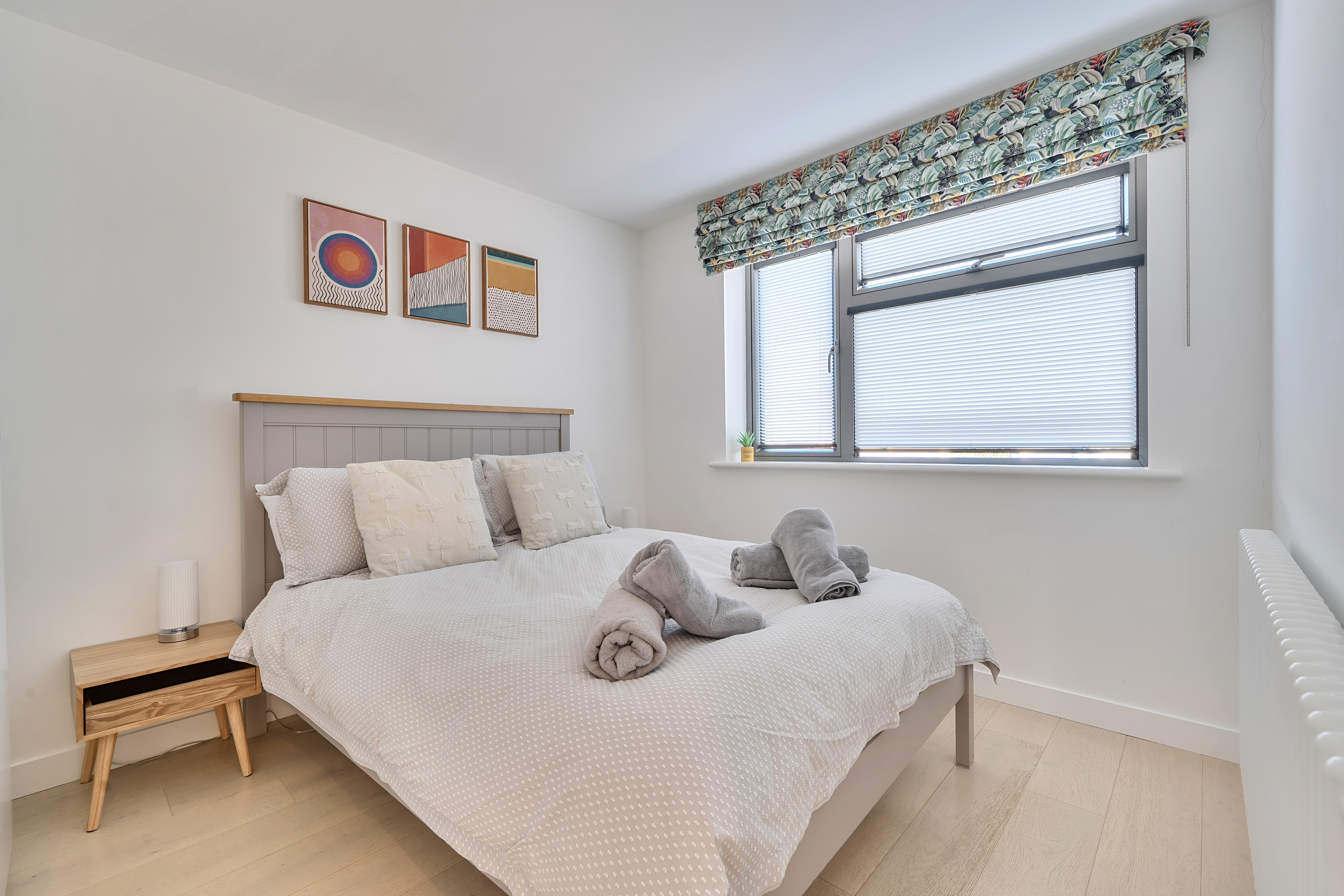 There are three well-proportioned bedrooms, two of which comfortably accommodate king size beds and wardrobes. The bathroom has a luxurious feel, complete with a freestanding bathtub, walk-in shower and underfloor heating for added comfort. A fully boarded loft with lighting provides generous additional storage, easily accessed via a pull-down ladder.