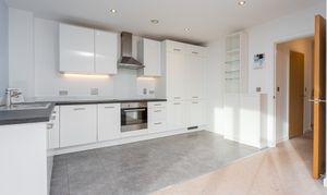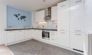 This apartment offers fitted storage just off the hallway, before leading to the open plan kitchen/living area, which is flooded with natural light from the large windows. The living area also boasts access to the balcony.
