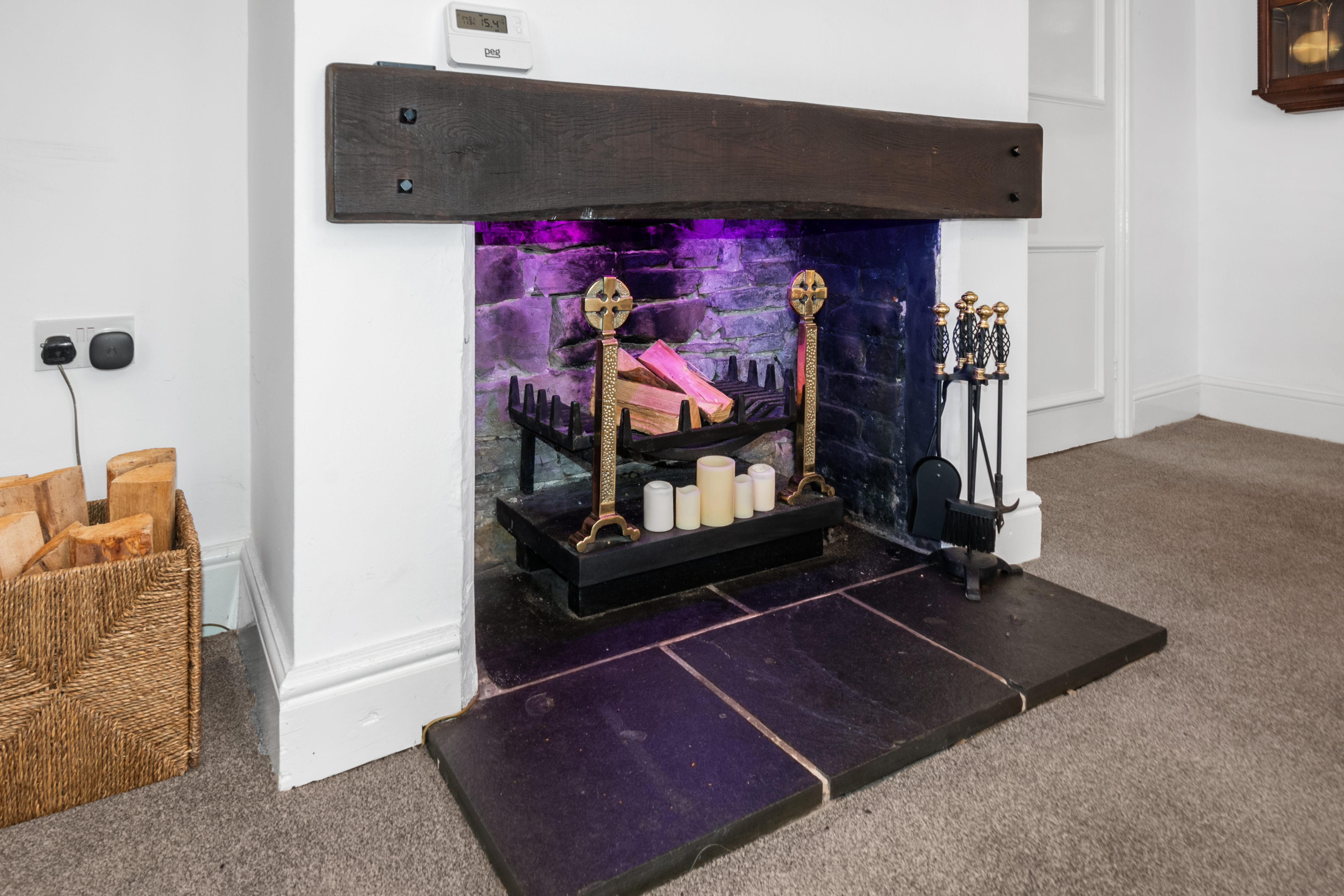 The main residence welcomes you into a spacious reception hall that could effortlessly be transformed into a study area or reading nook. The hall flows seamlessly into a large sitting room, ideal for entertaining guests or enjoying quiet evenings by the open inglenook style fireplace.