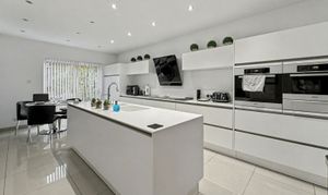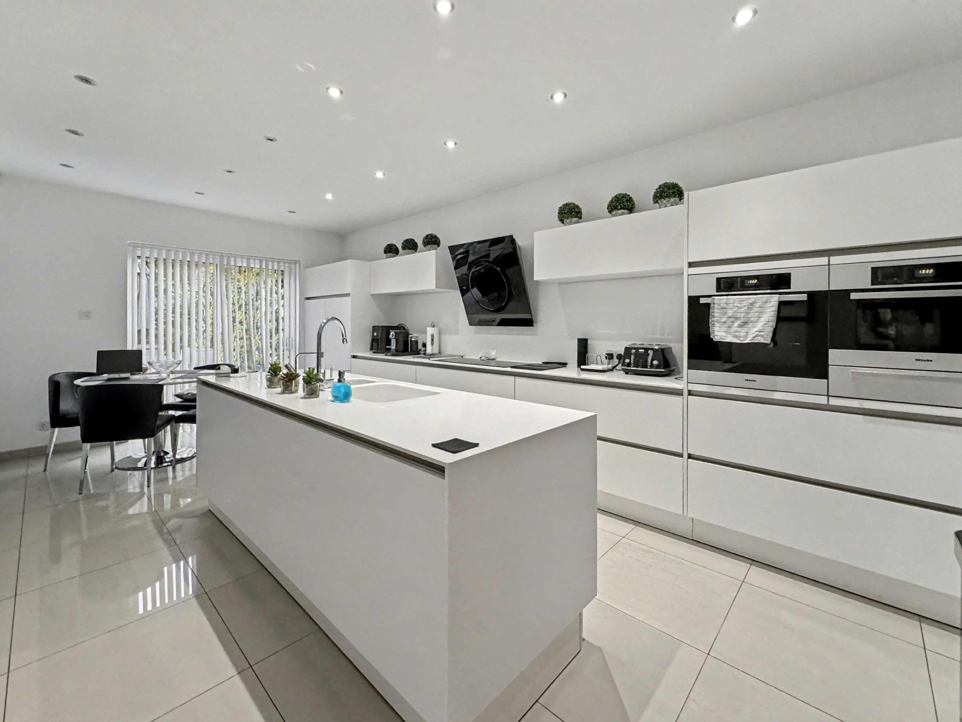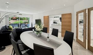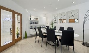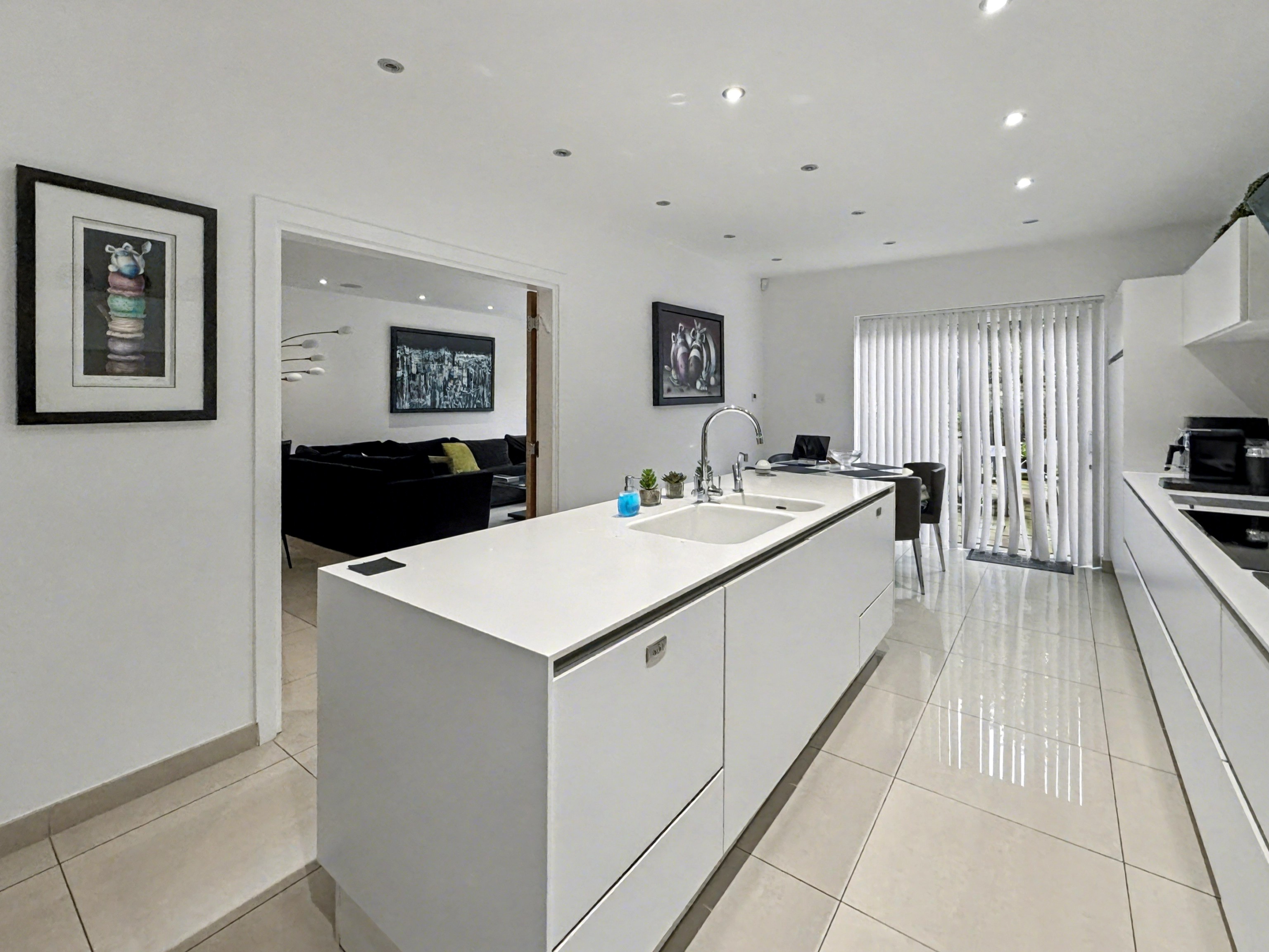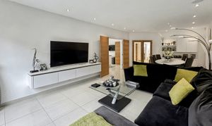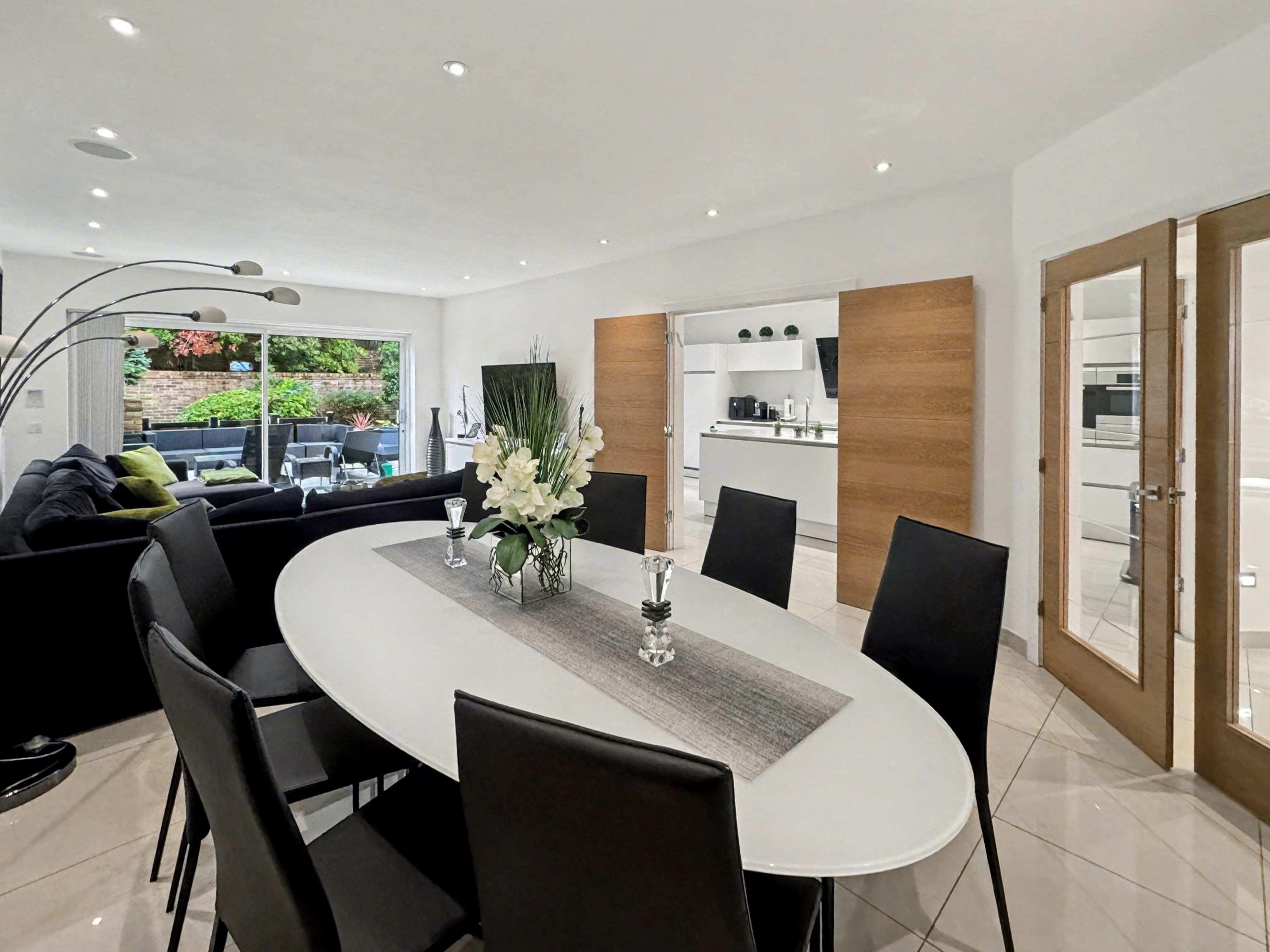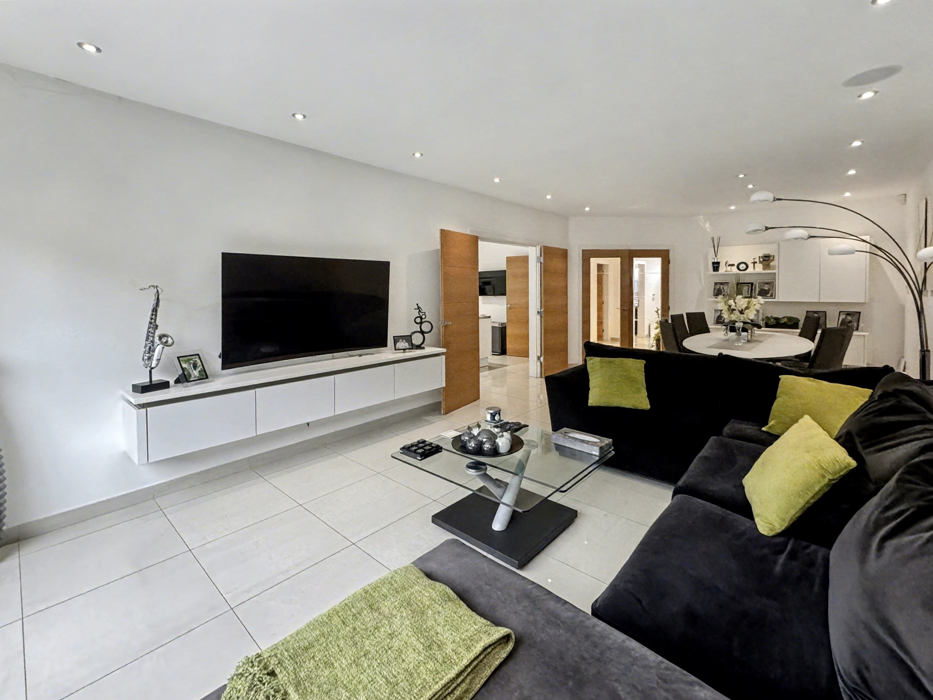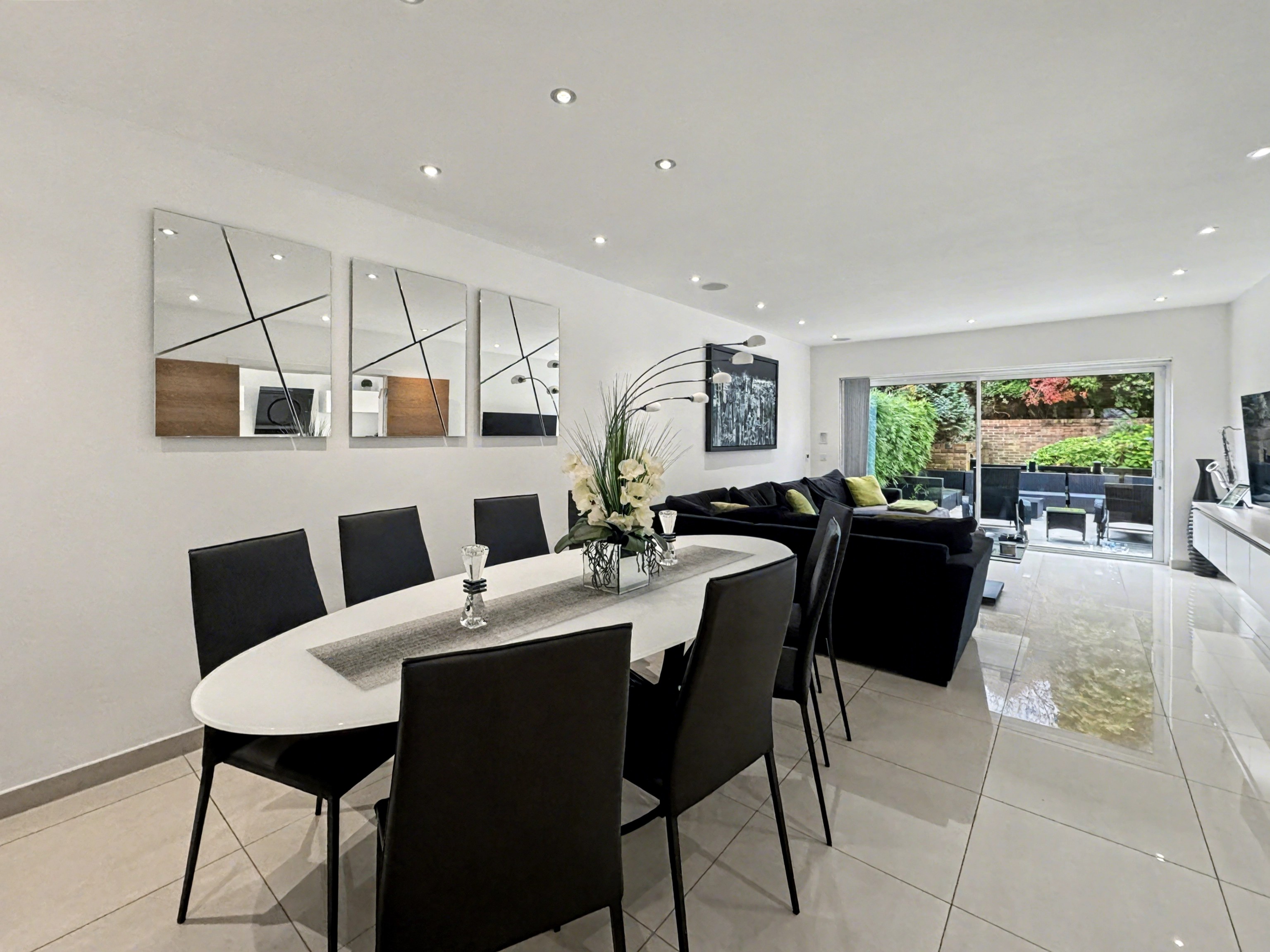 Arranged over three floors, the property provides generous and versatile accommodation ideal for both family living and entertaining. The welcoming entrance hallway leads through to a bright and spacious open-plan lounge and dining area, creating a superb social space with room for both relaxation and formal dining. Double doors open through to the modern dining kitchen, which offers plenty of space for informal meals and gives direct access to the rear patio and garden — perfect for everyday living or hosting guests.