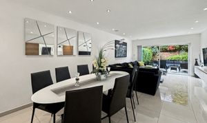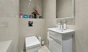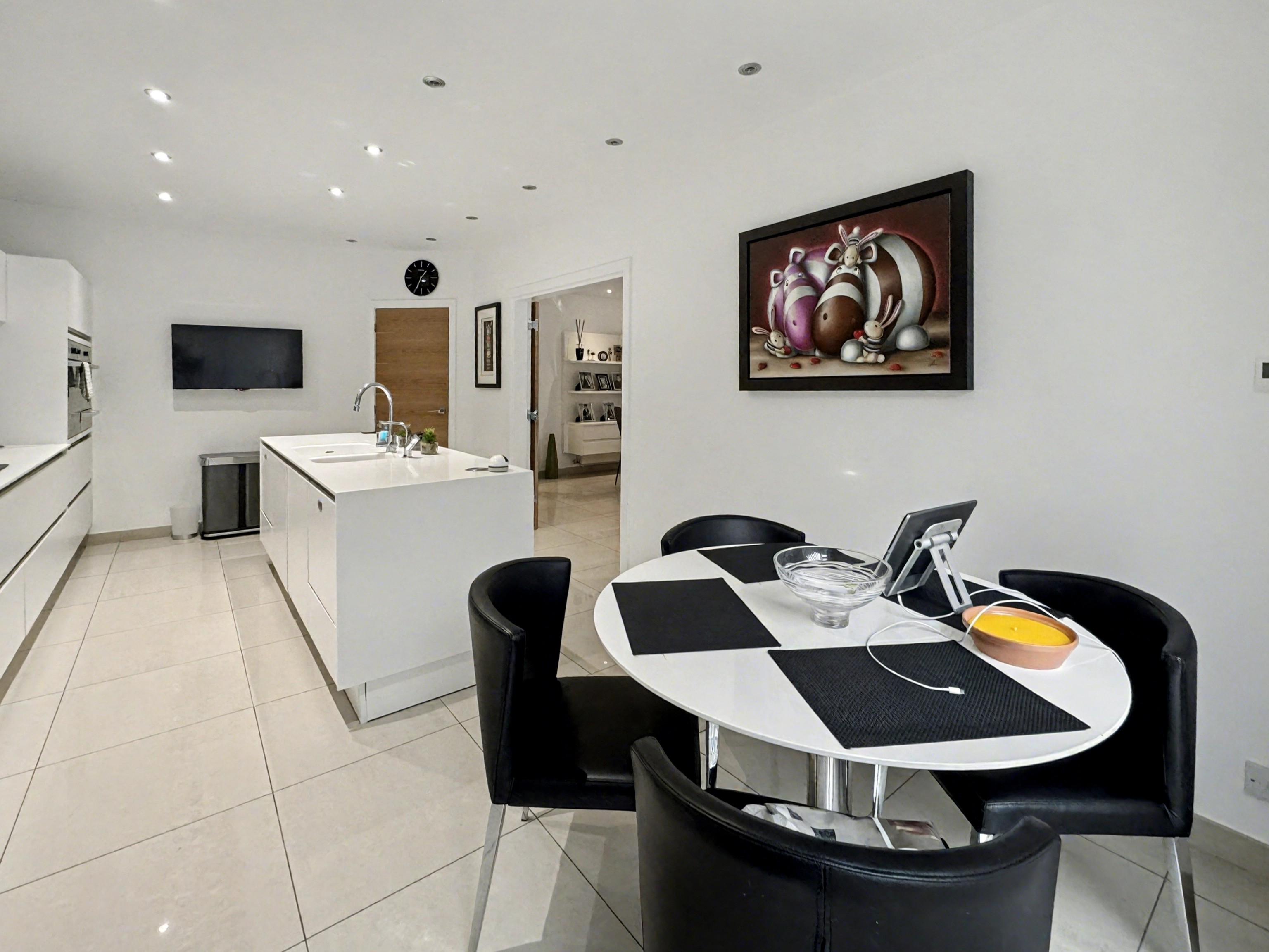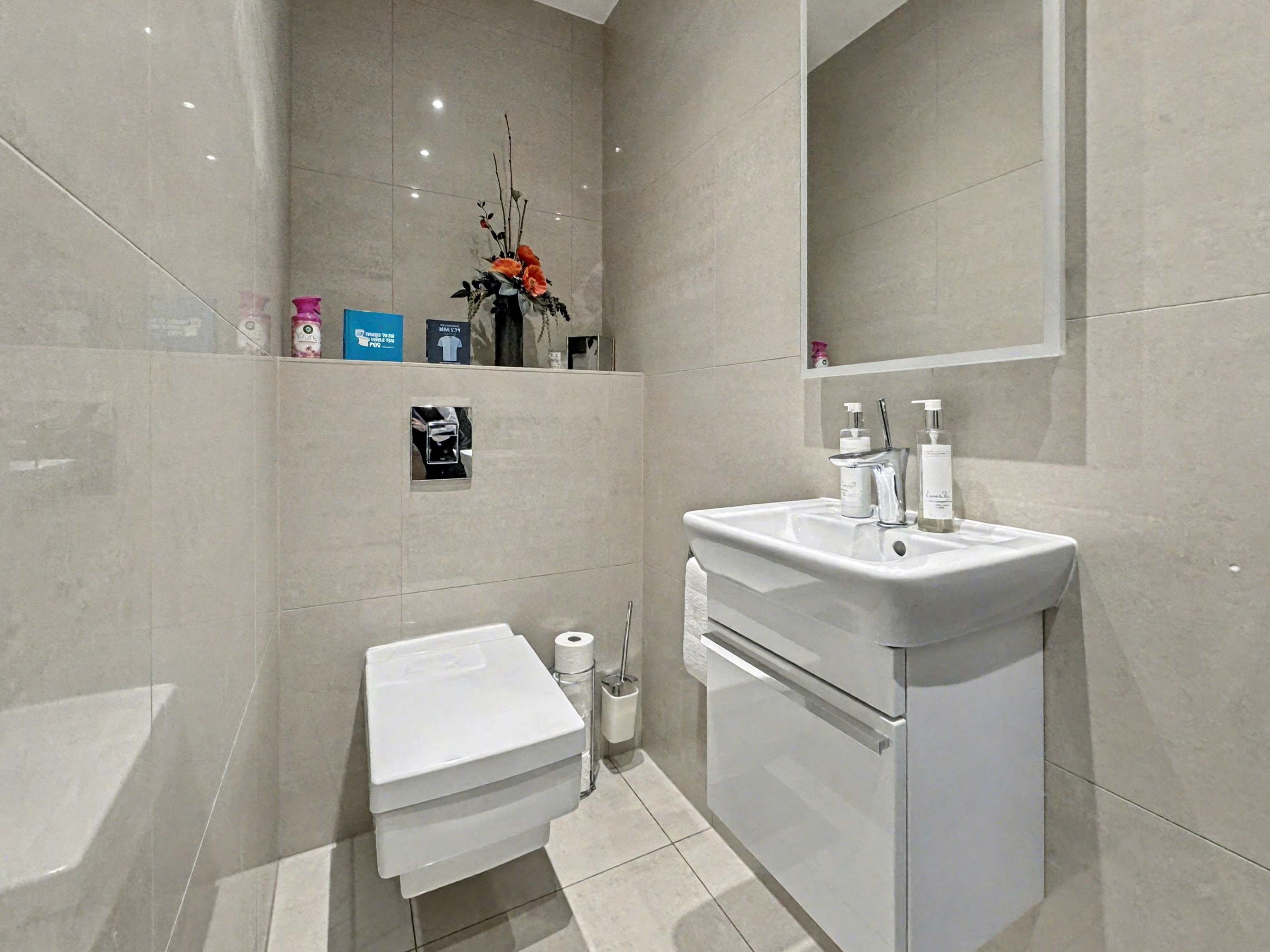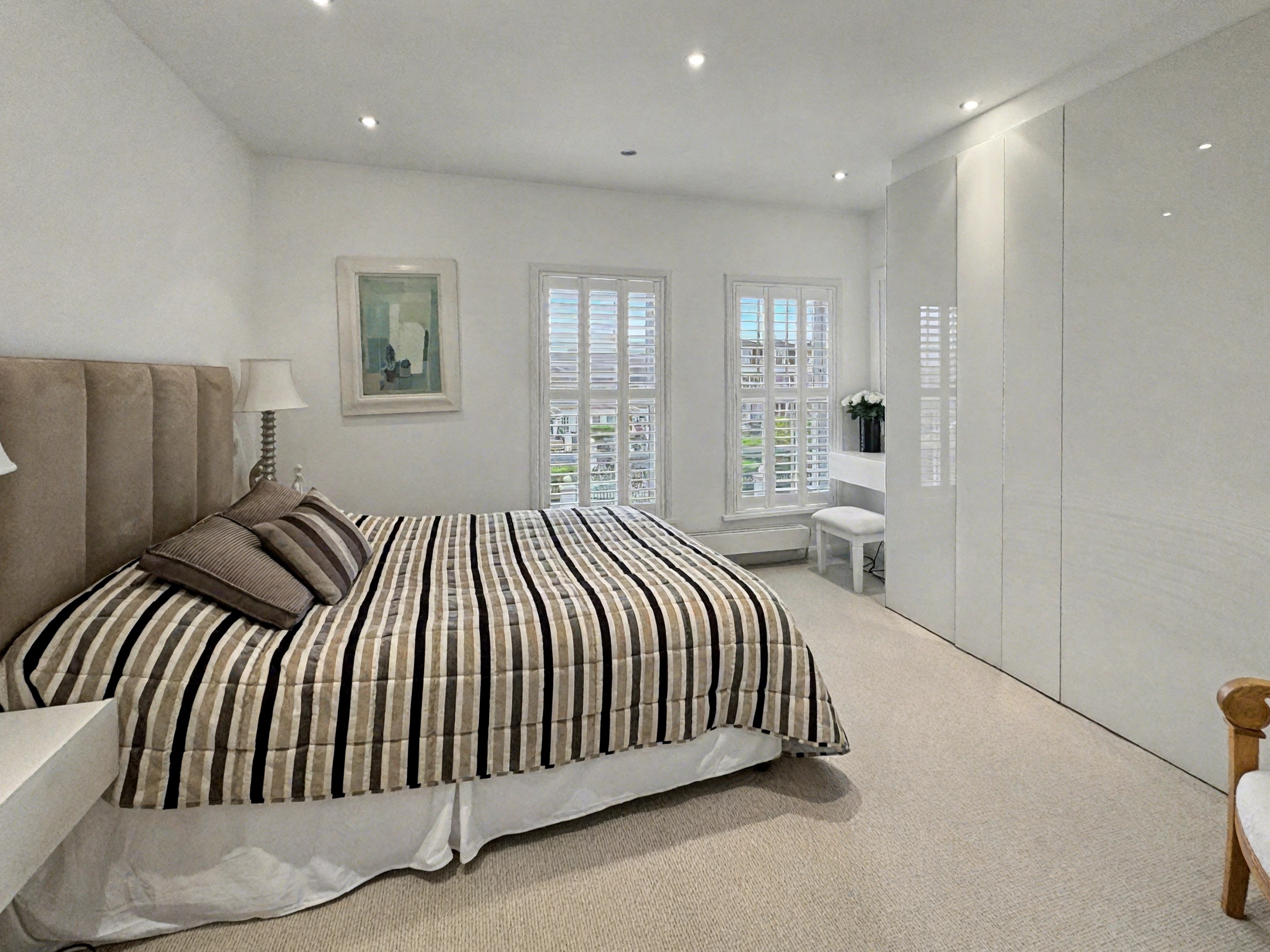 Externally, the property enjoys a private rear terrace with access to the communal lawned gardens, while the development itself is approached through an attractive wrought iron archway, further enhancing the sense of exclusivity. Despite its private setting, The Square is just moments from local shops, restaurants, transport links, and excellent schooling.