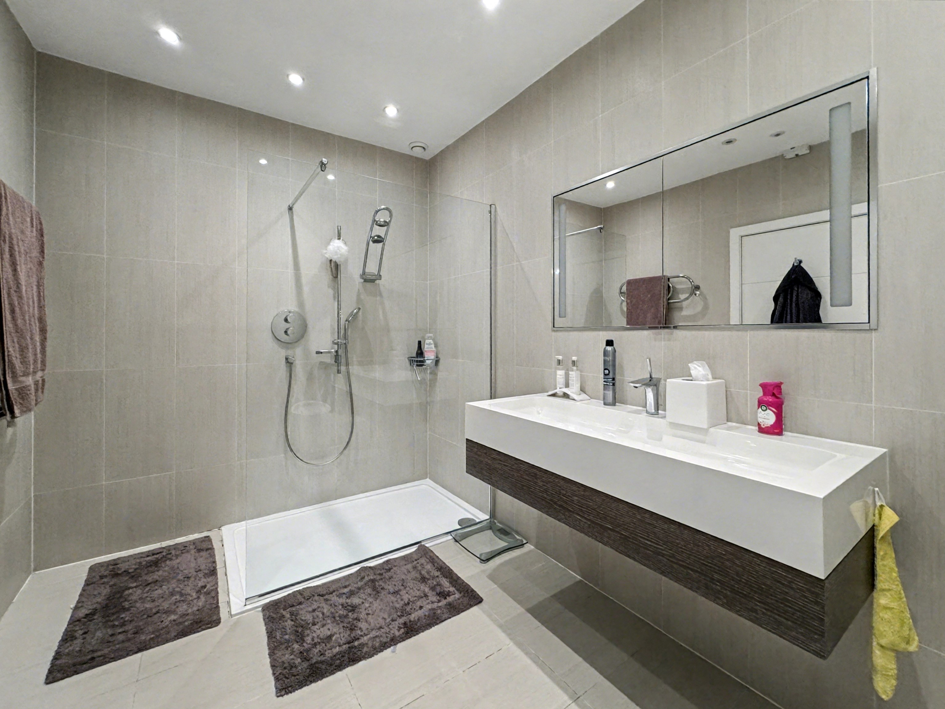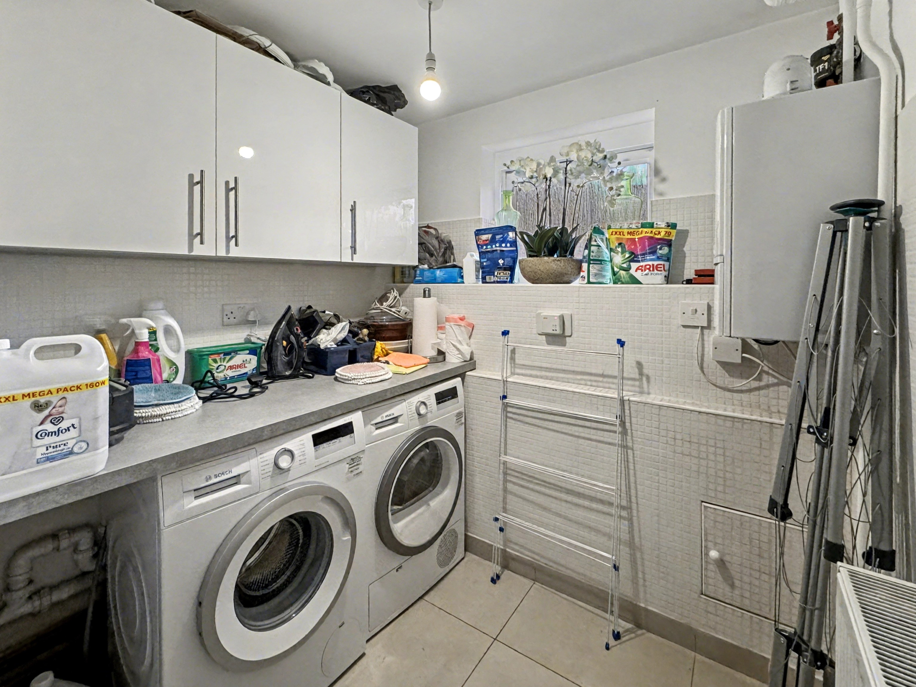 On the lower level, a practical utility area offers additional storage and direct internal access to the secure underground parking, where the property benefits from two private spaces and further storage provision — a rare and highly desirable feature.