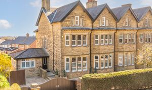 A handsome and highly sought-after six-bedroom end Victorian townhouse, built circa 1890, revealing impressive and immaculately maintained accommodation arranged over several floors. The property retains much of its original charm and character, with particular emphasis on the breathtaking living kitchen featuring an Aga and central island, with double doors opening onto a rear sun terrace enjoying elevated views across Harrogate’s rooftops. Set within generous gardens and positioned behind electric gates, the property benefits from ample driveway parking and the rare advantage of a double garage, all situated in a wonderful location opposite the Pine Woods and the award-winning Valley Gardens.