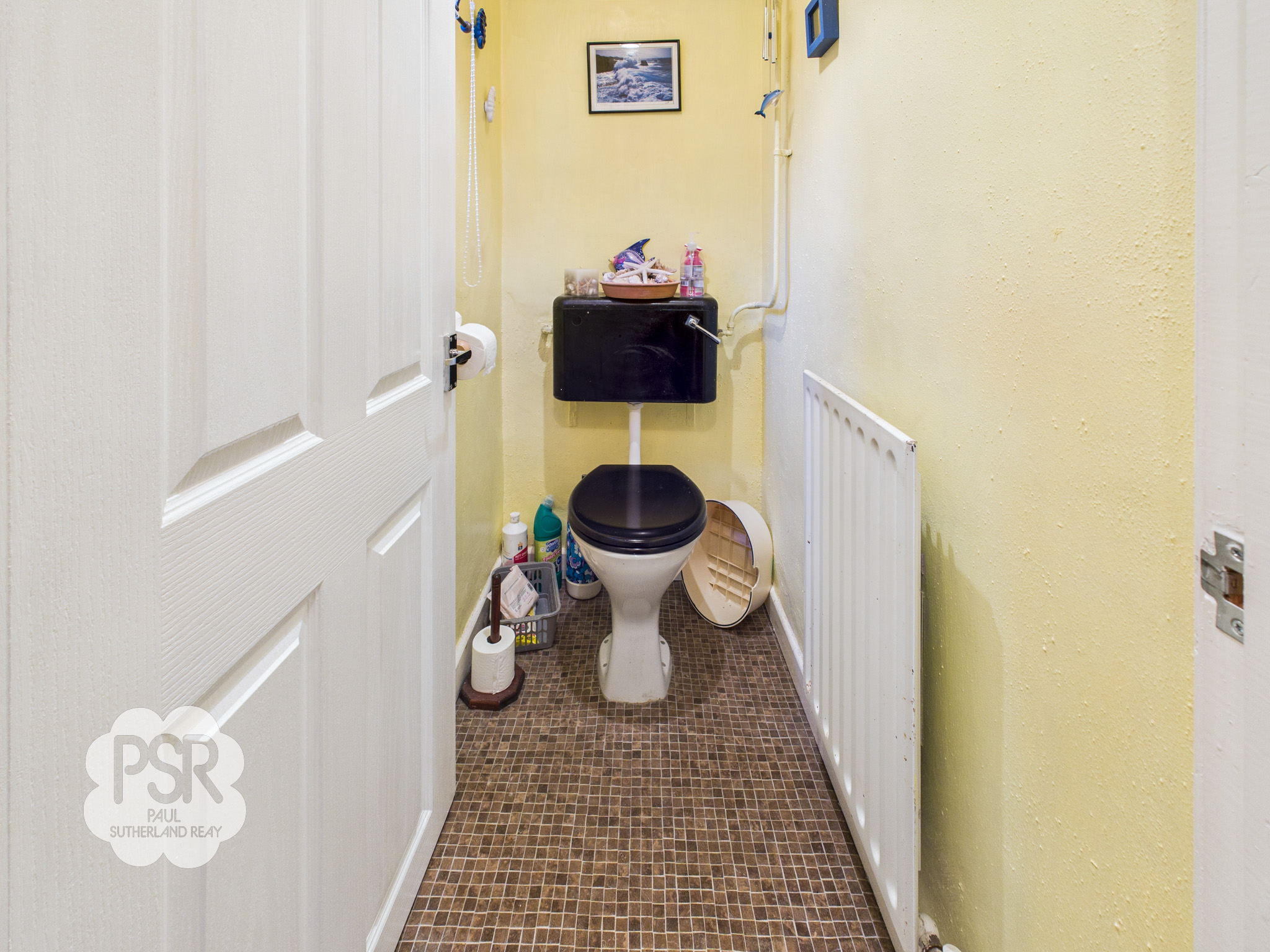 This practical space features a UPVC window to the side elevation with privacy glass for added discretion. The room is equipped with a handle-push toilet and a radiator.