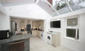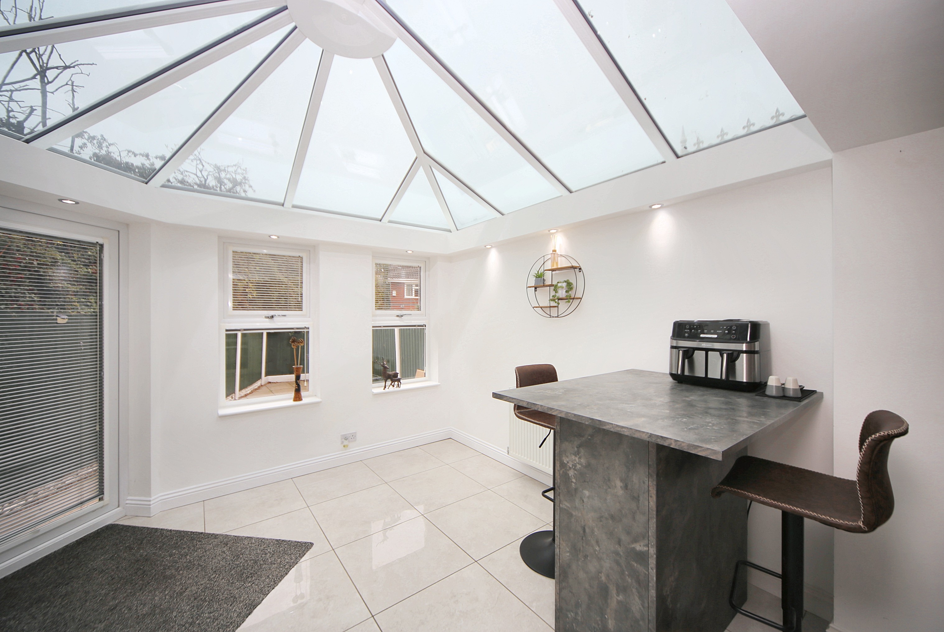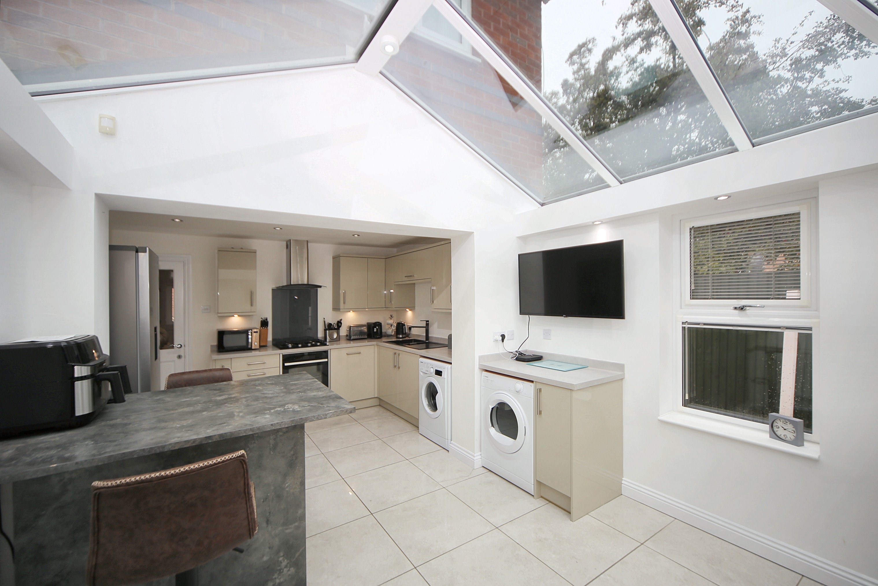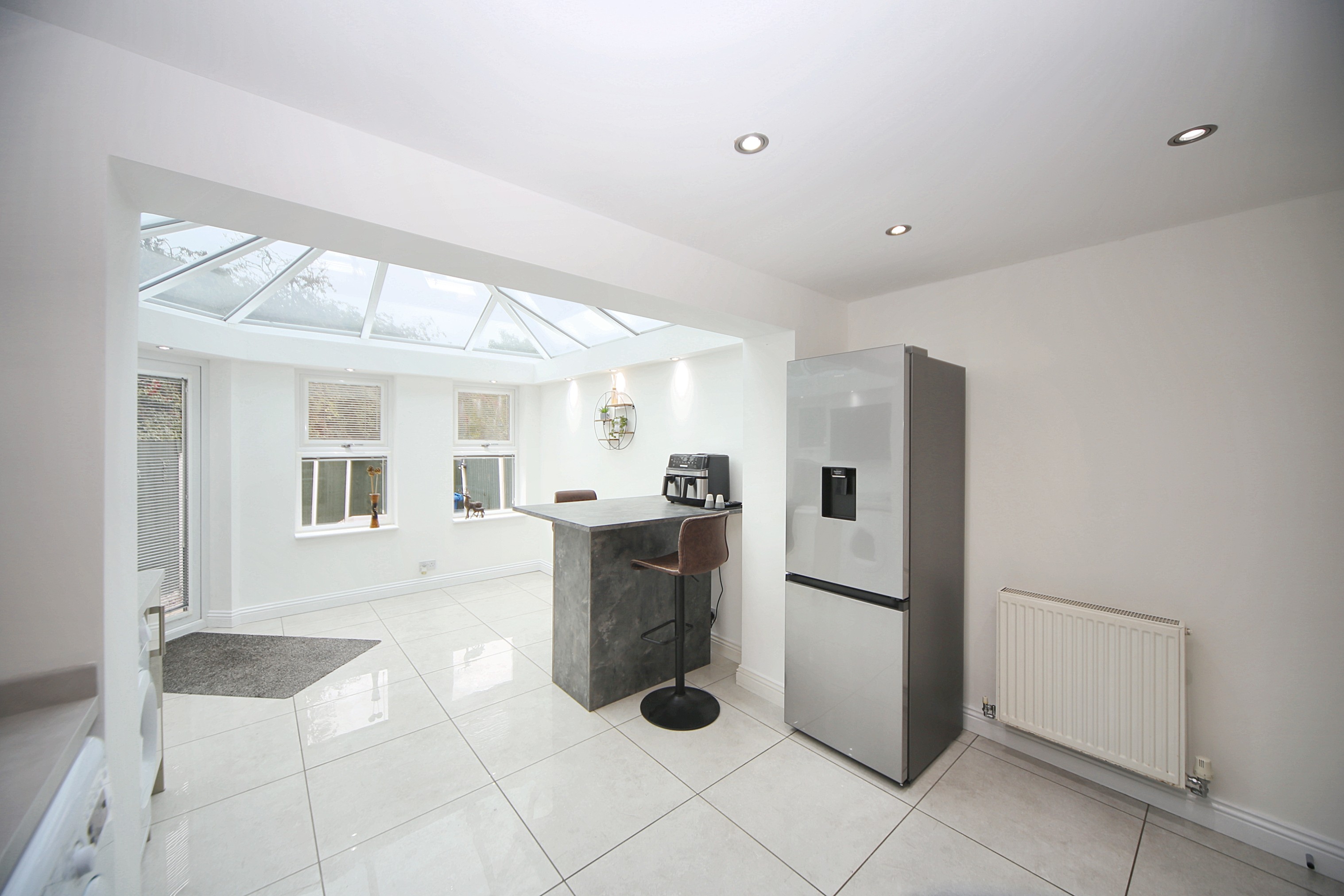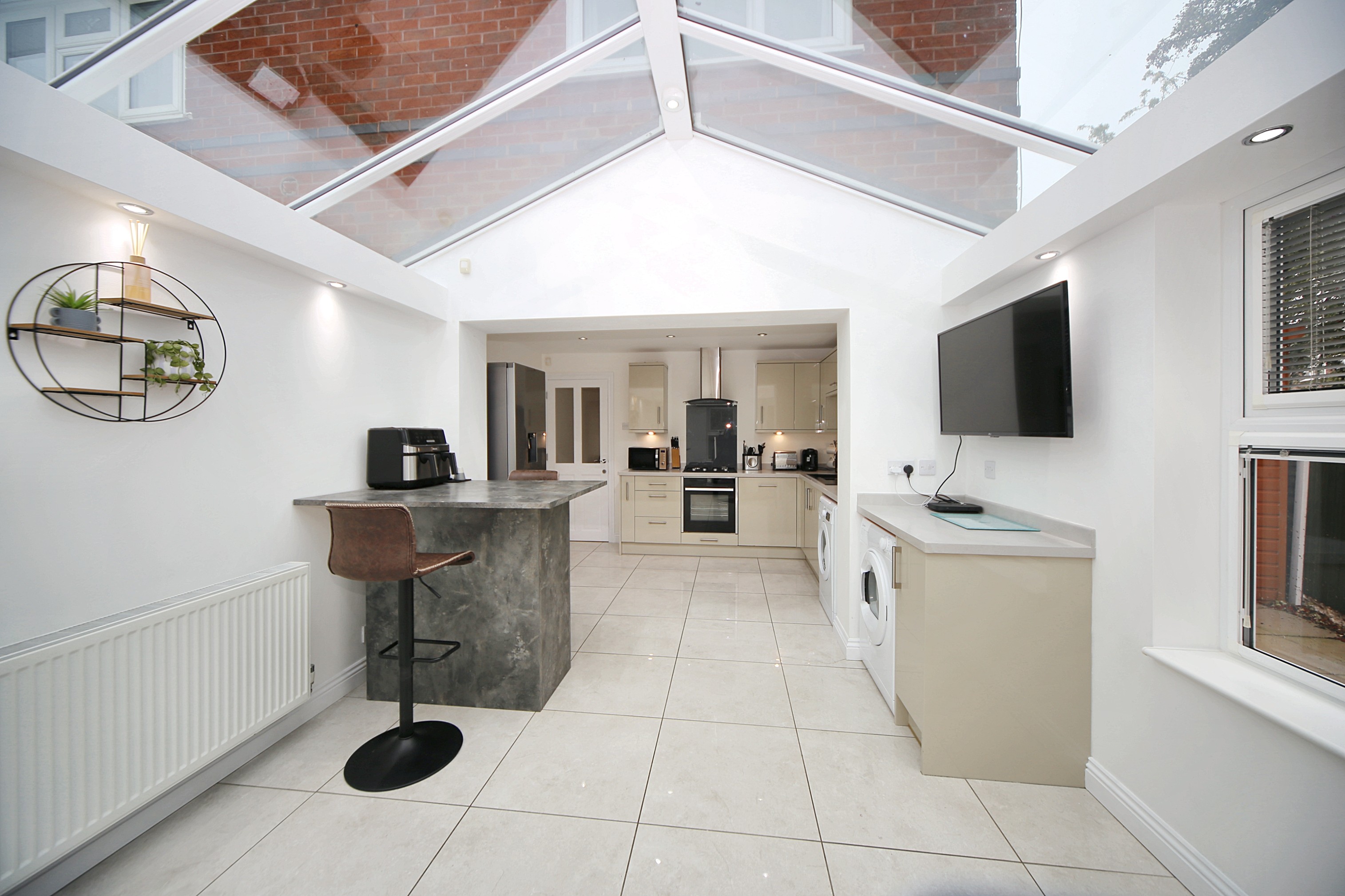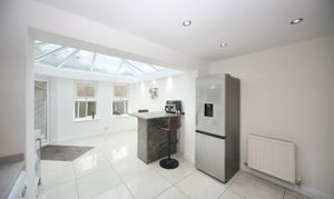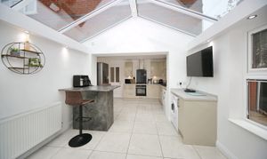 Internally, the accommodation is modern and well maintained throughout. A welcoming entrance porch opens into the spacious lounge, offering plenty of room for both relaxation and entertaining. To the rear lies the stylish fitted kitchen, complete with an integrated ‘Neff’ oven and ample storage. As the true heart of the home, the kitchen naturally brings people together and flows seamlessly into the bright and airy orangery — a versatile living space overlooking the rear garden, perfect for family meals, entertaining guests, or simply enjoying the view.
