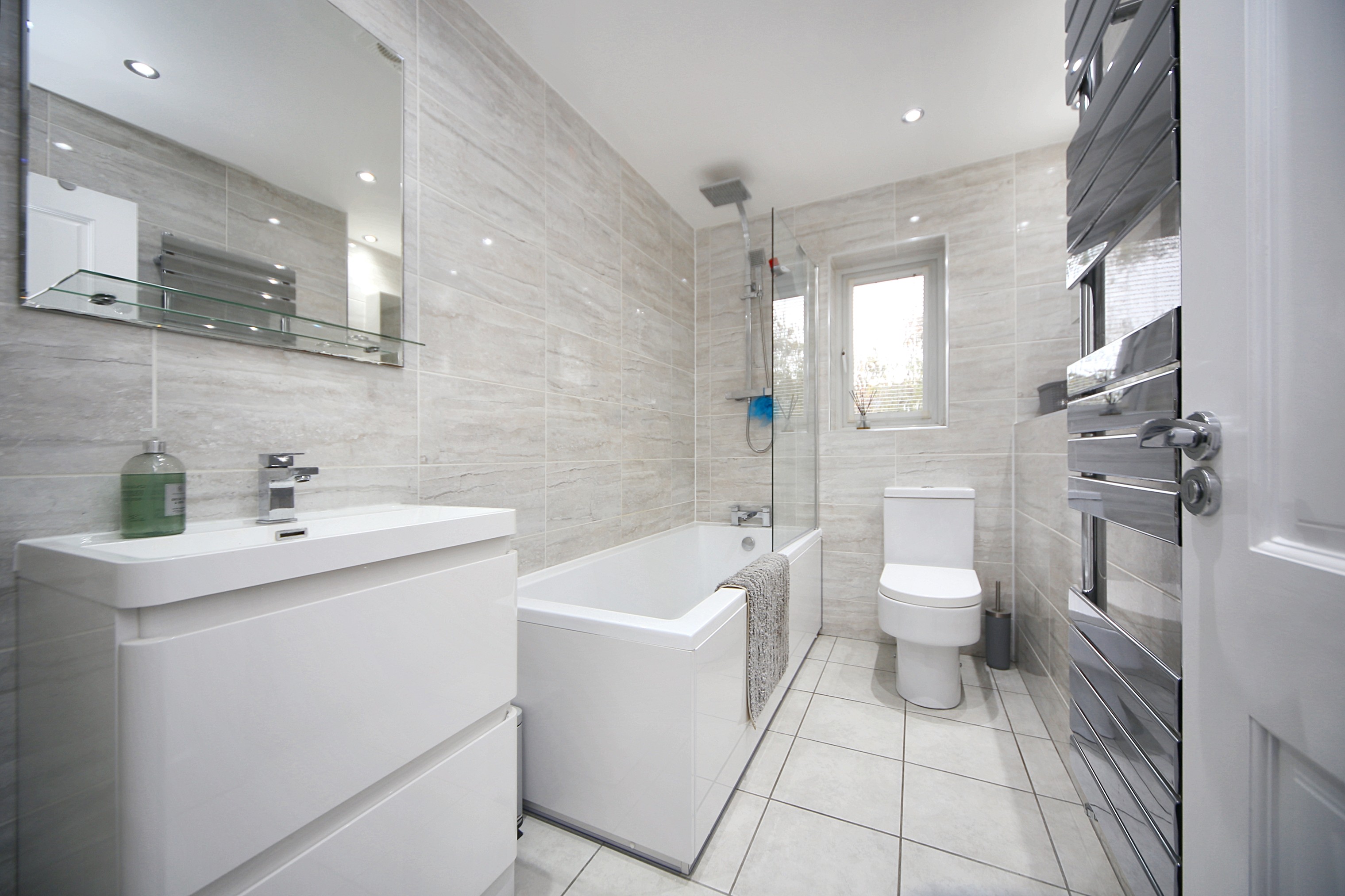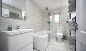 Upstairs, the landing leads to two generously sized double bedrooms, both finished in a neutral décor to suit all tastes. The modern family bathroom completes the layout, fitted with contemporary fixtures and designed for everyday convenience.