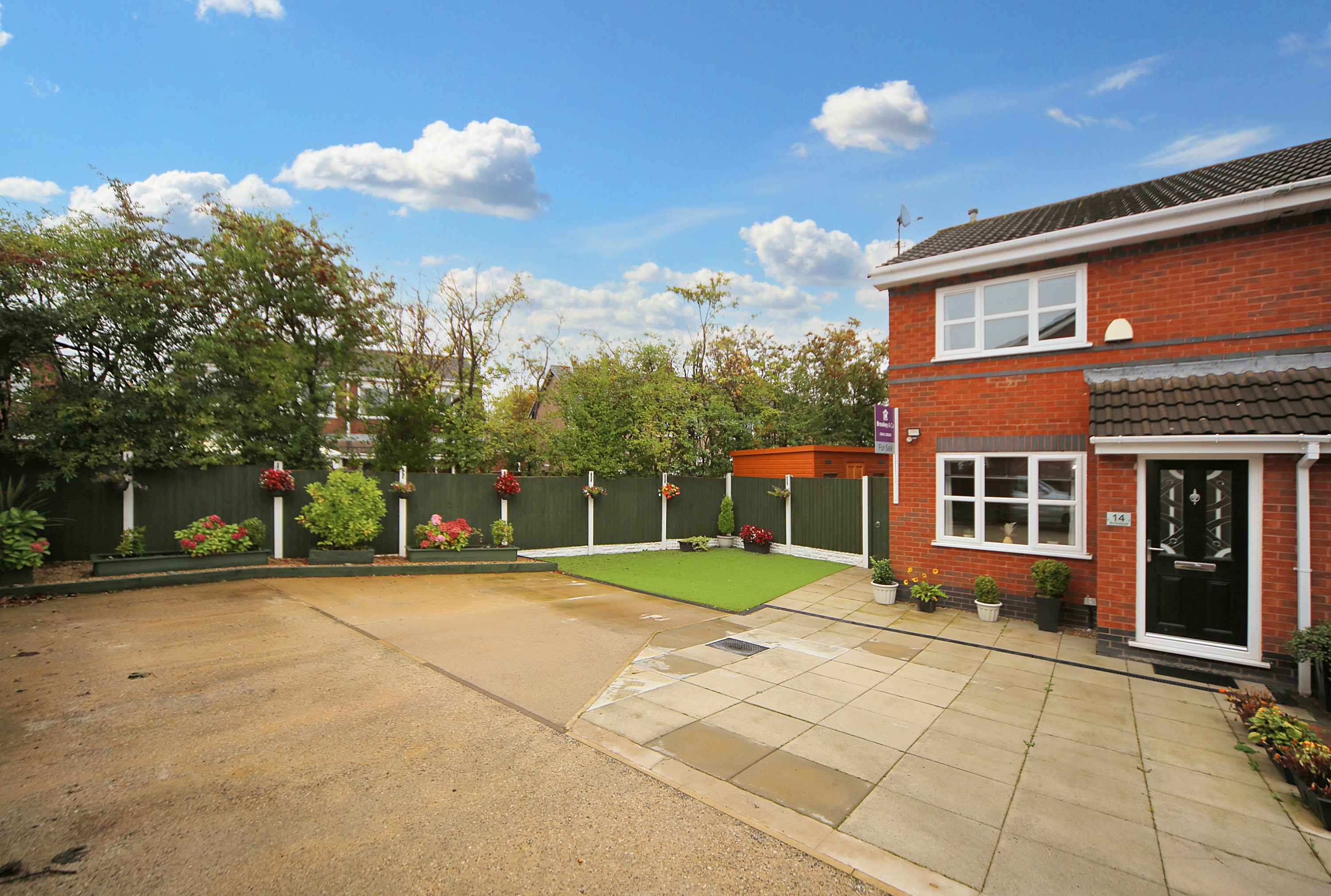 Externally, this property continues to impress. The rear garden has been landscaped for low maintenance, offering a private outdoor retreat ideal for summer evenings. To the front elevation, there is a well-kept lawn and a driveway providing off-road parking for several vehicles, adding to the home’s practicality.