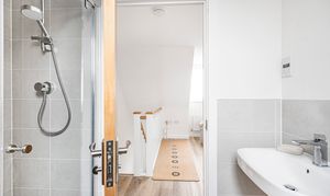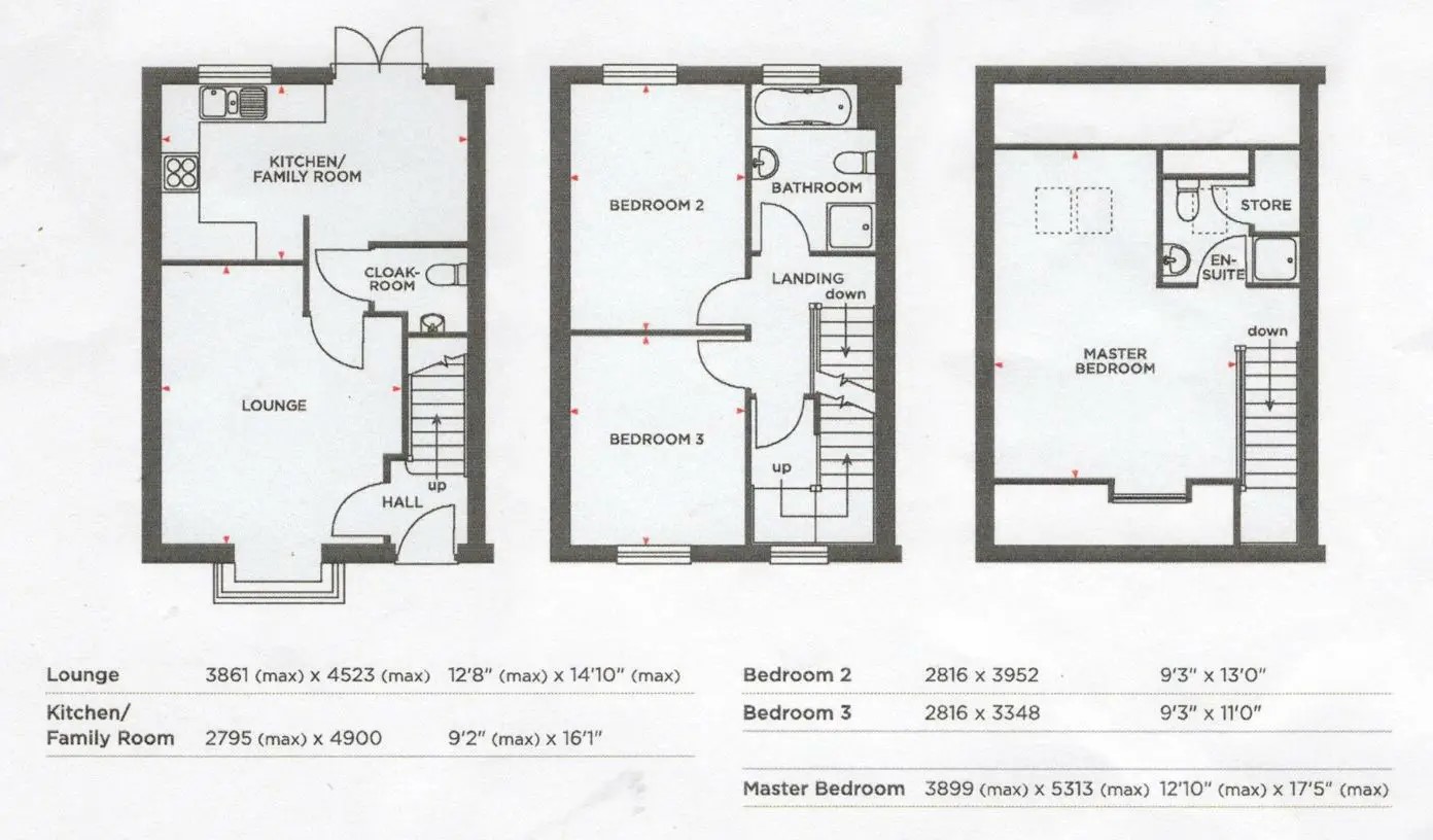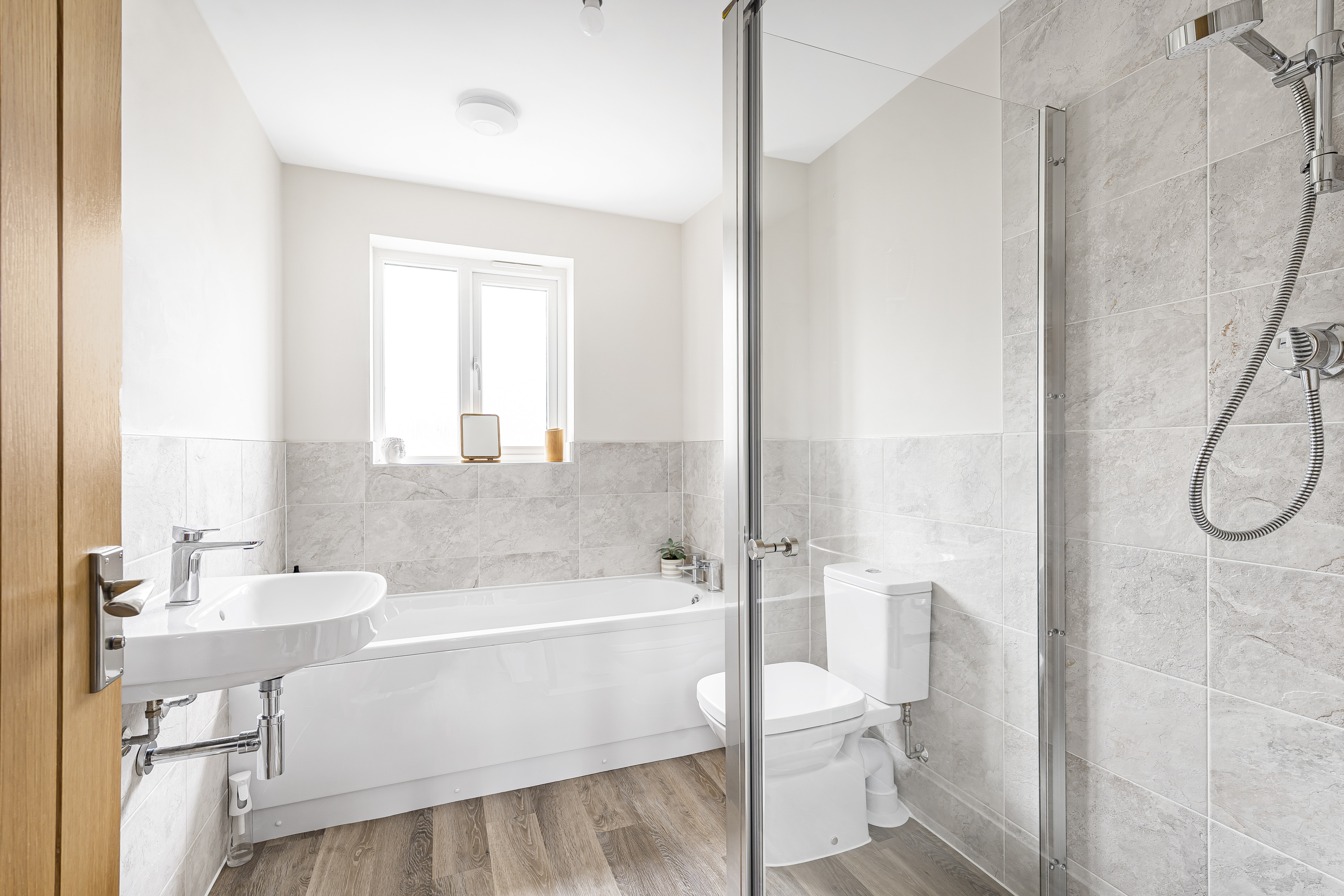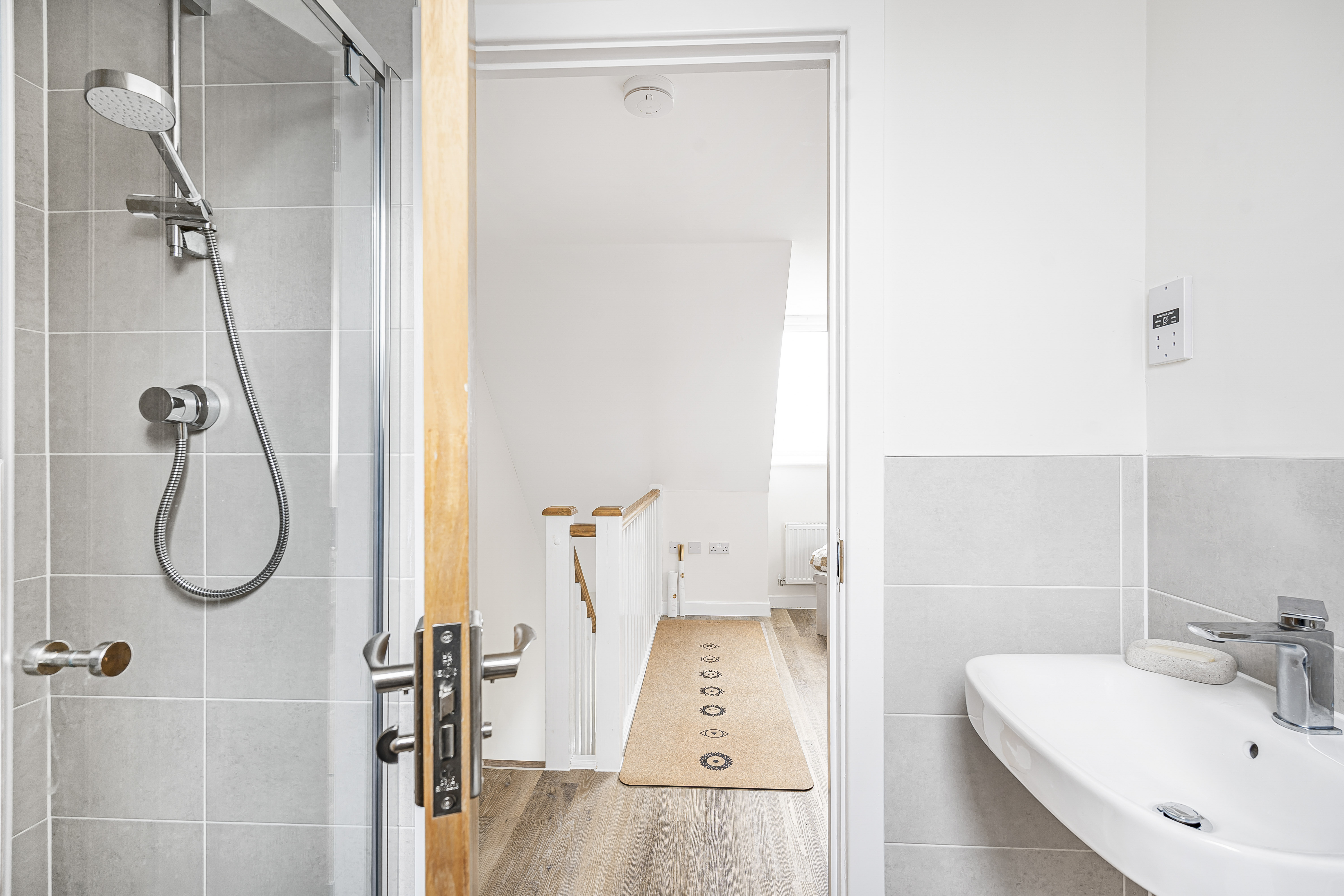 The joy of this design is that you have large bedrooms. Stairs from the hallway rise to the first floor where you will find two double bedrooms and the modern family bathroom.