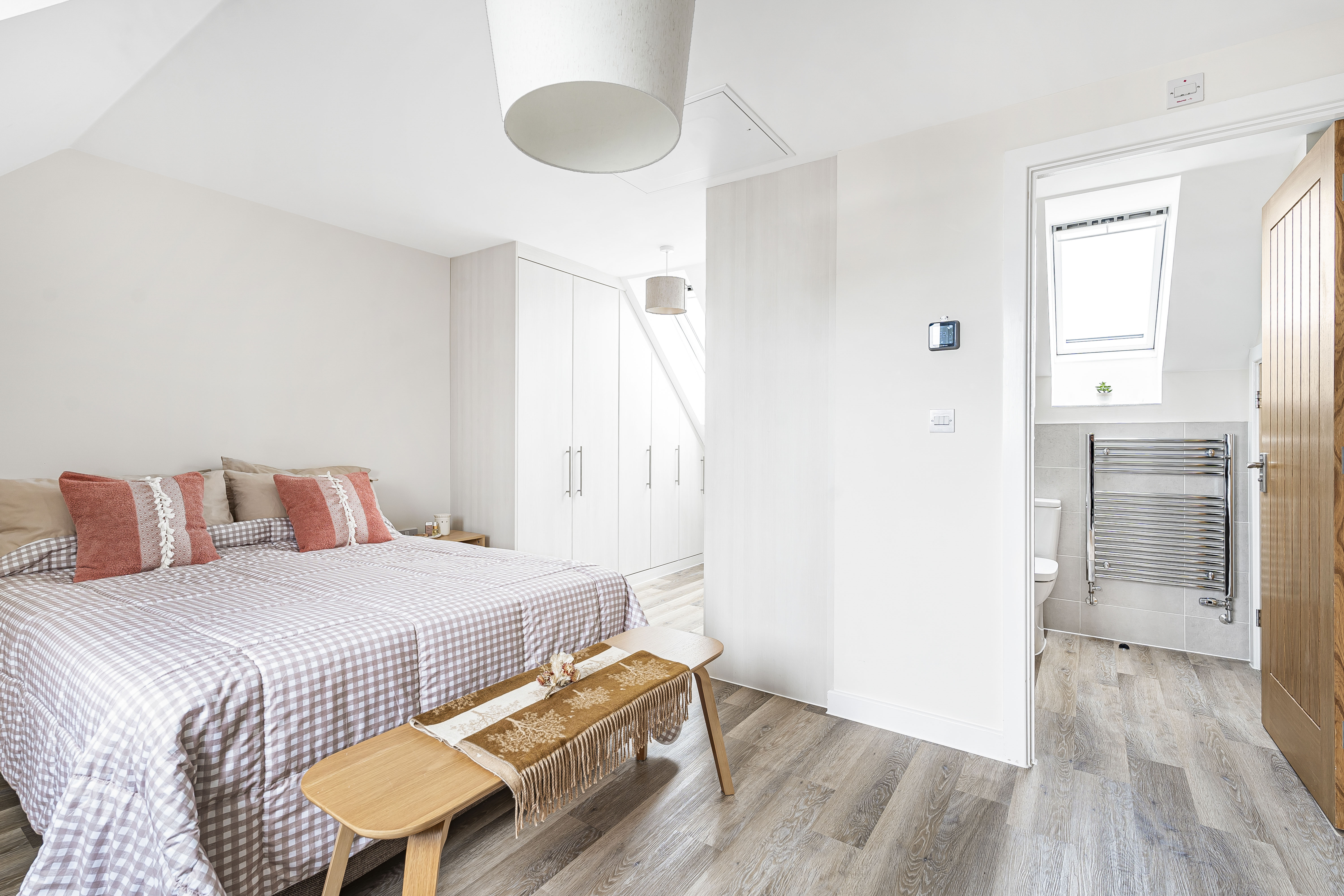 To the second floor a beautiful master bedroom with en-suite shower room and bespoke wardrobes/dressing area.