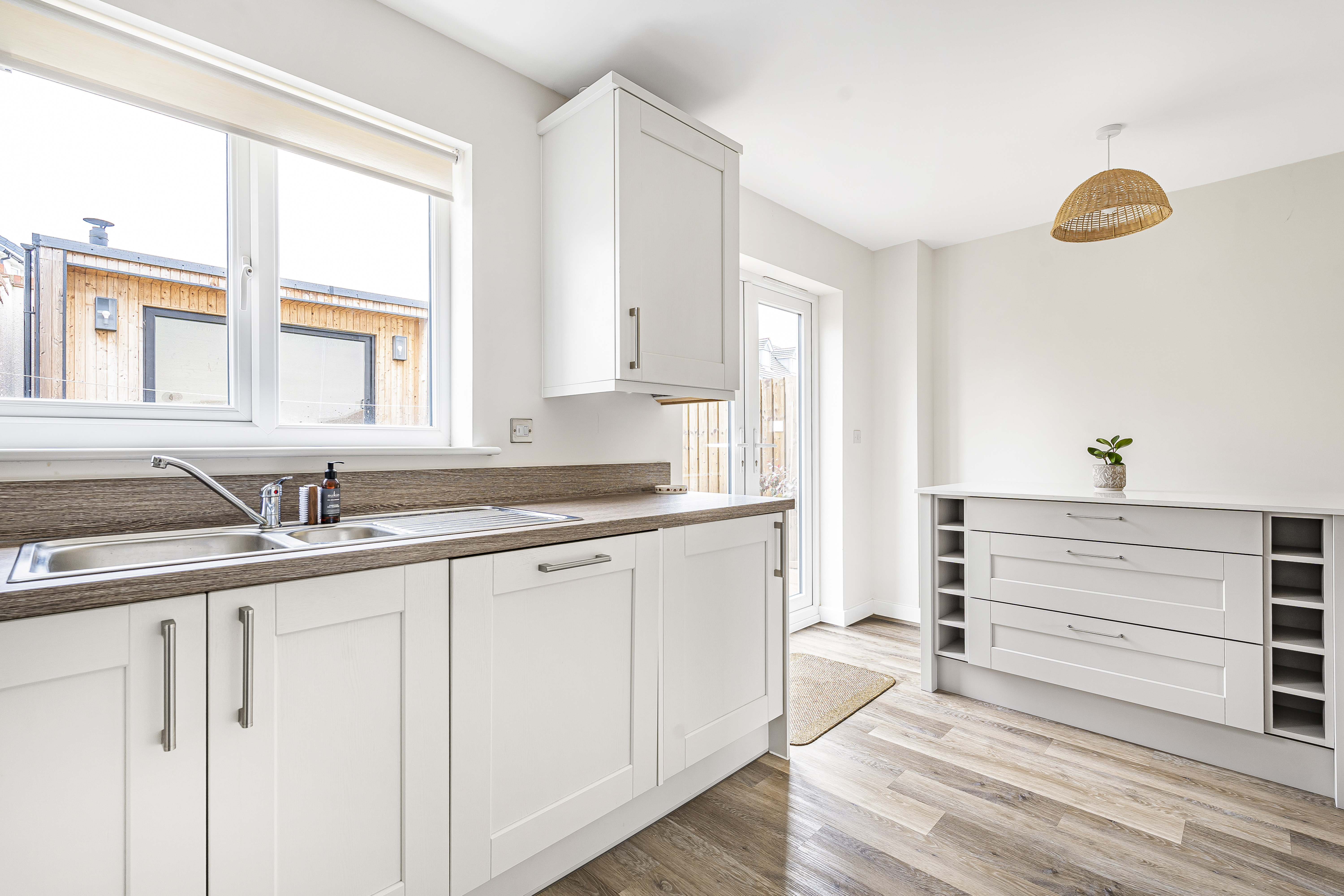 The kitchen offers a range of quality base and wall cabinets, integrated dishwasher, fridge freezer & washing machine, built in oven, gas hob with extractor over, inset sink with mixer tap over. The vendor also has added a removeable island (available on separate negotiation) but also offers space for a family dining table.