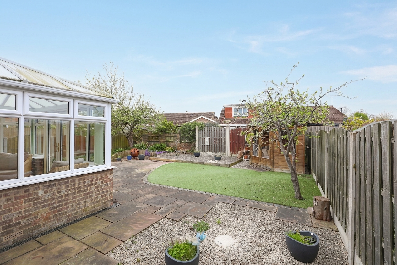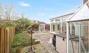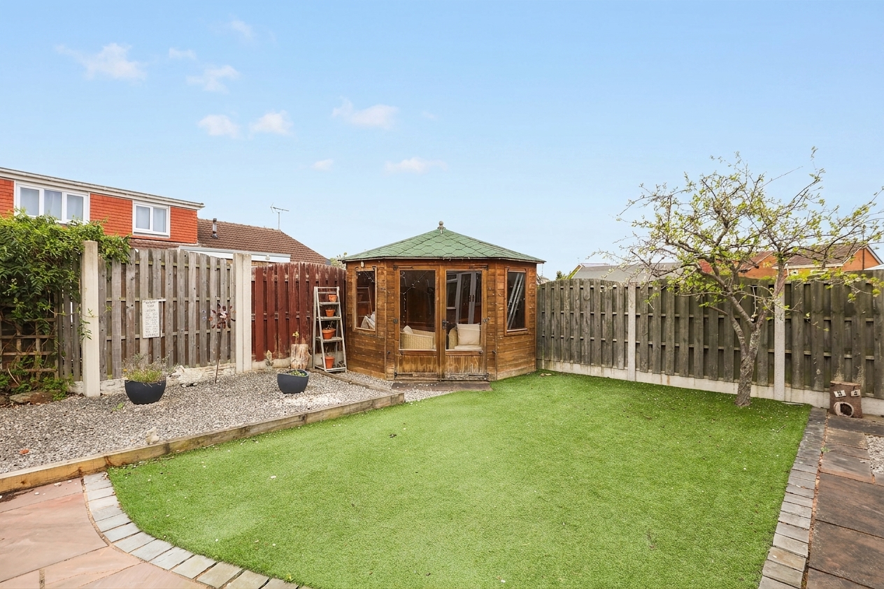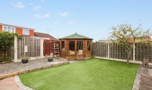 Externally, the home features an enclosed and low-maintenance rear garden, thoughtfully designed for both relaxing and entertaining. A generous patio area provides the perfect space for outdoor dining during the warmer months, complemented by an artificial lawn for ease of upkeep. The garden is bordered by a variety of plants and flowers, adding colour and interest, while an external summer house offers additional versatility.