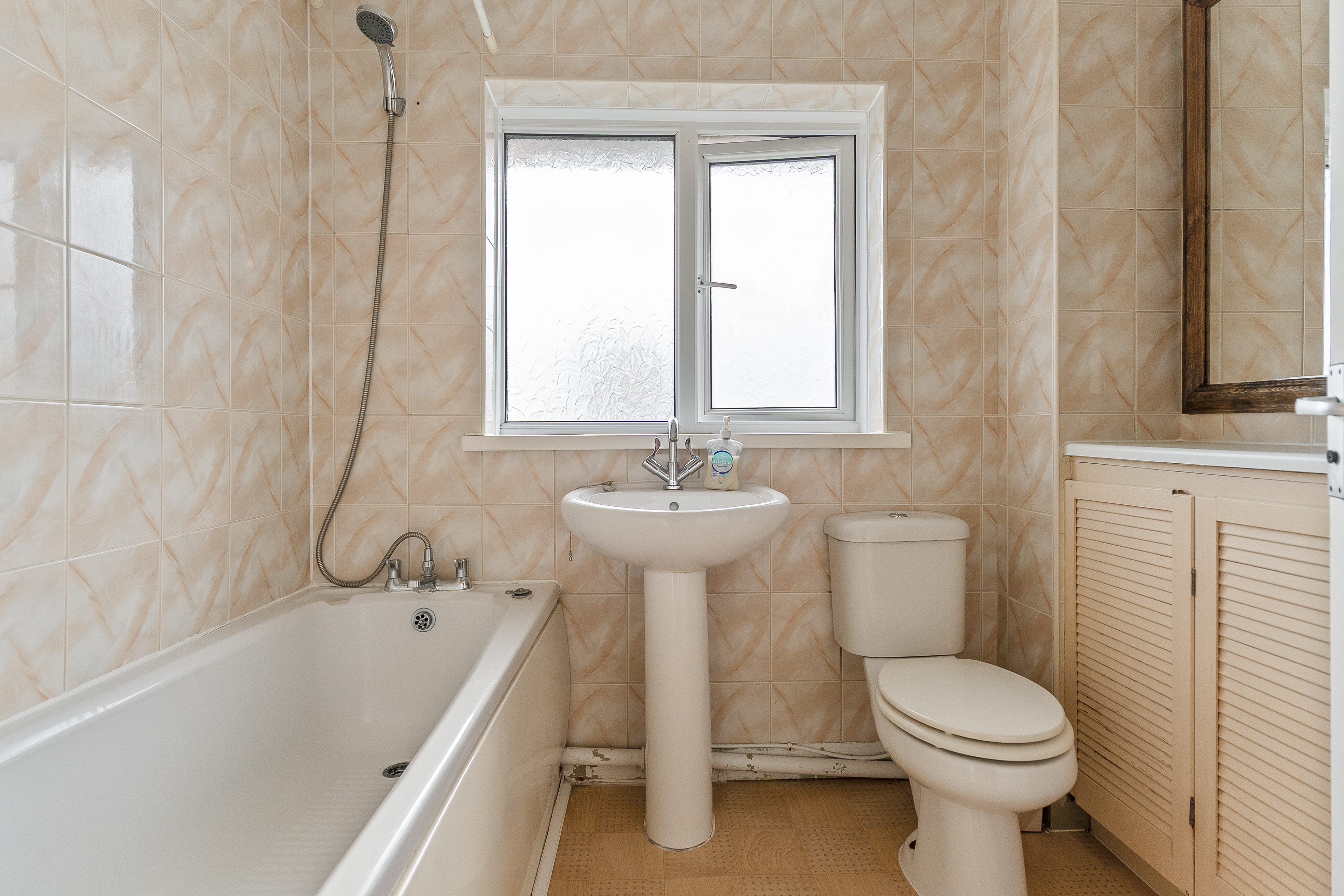 On the first floor, the property comprises three well-proportioned bedrooms, including two generous double rooms and a larger-than-average single bedroom. Each room benefits from natural light and offers versatility for use as a bedroom, guest room, or home office. Completing the first floor is the family bathroom, which features a fitted suite with bath, WC, and hand basin, providing a functional and comfortable space for everyday use.