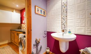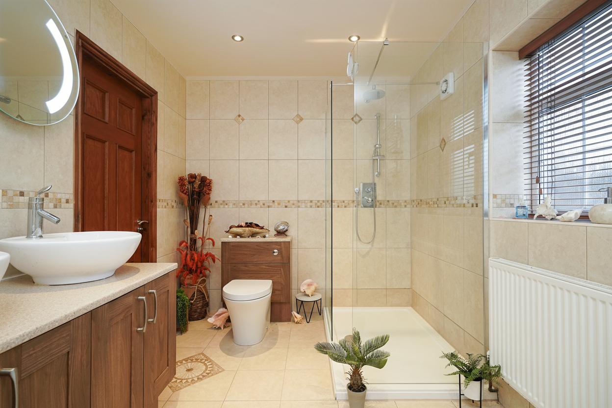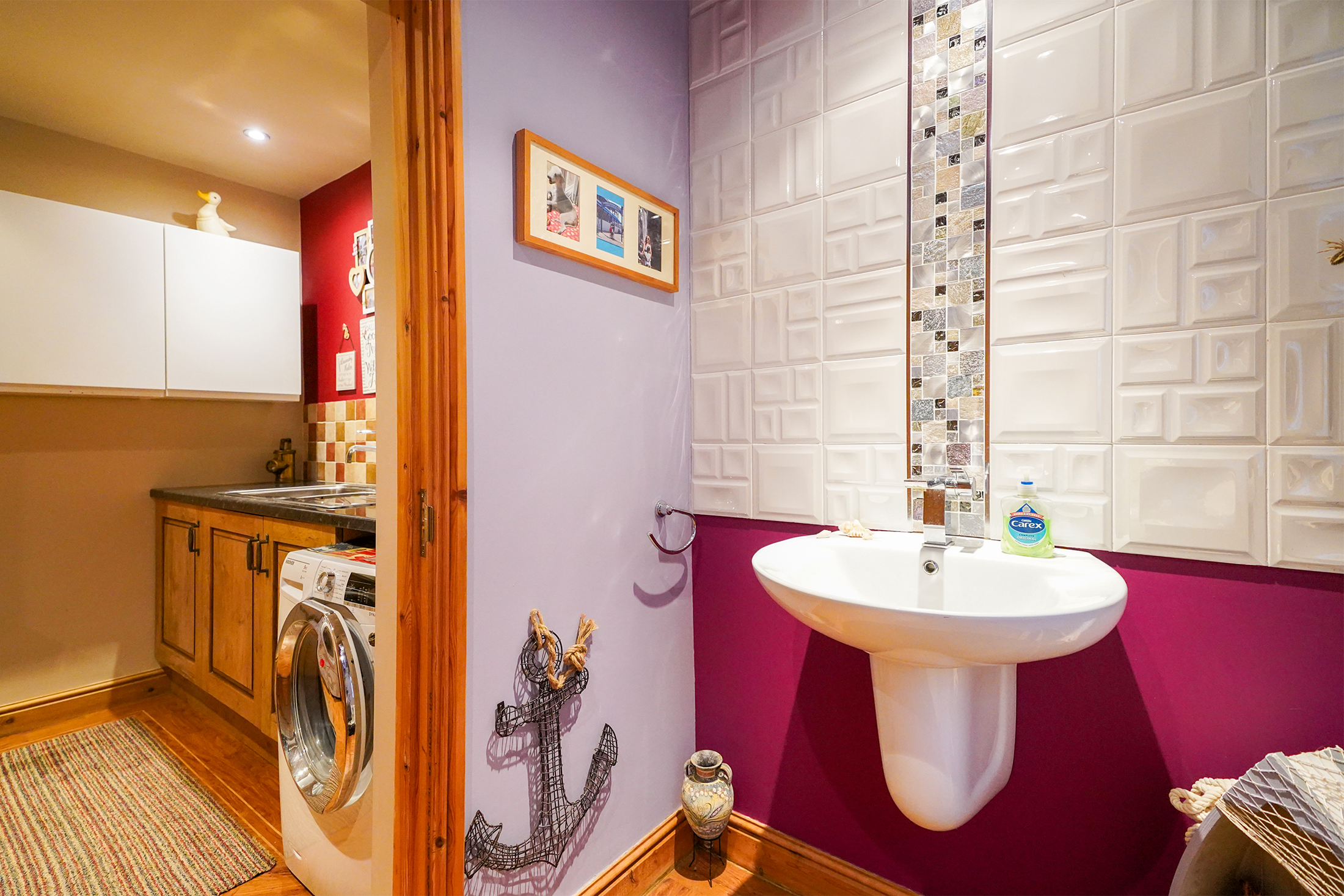 The heart of the home is the open plan kitchen and dining area, thoughtfully designed with a range of integrated appliances and extensive storage options, perfect for family meals and entertaining guests. A fitted utility room and a convenient ground floor W.C. add to the every-day practicality, while plentiful built-in storage is available throughout the home.