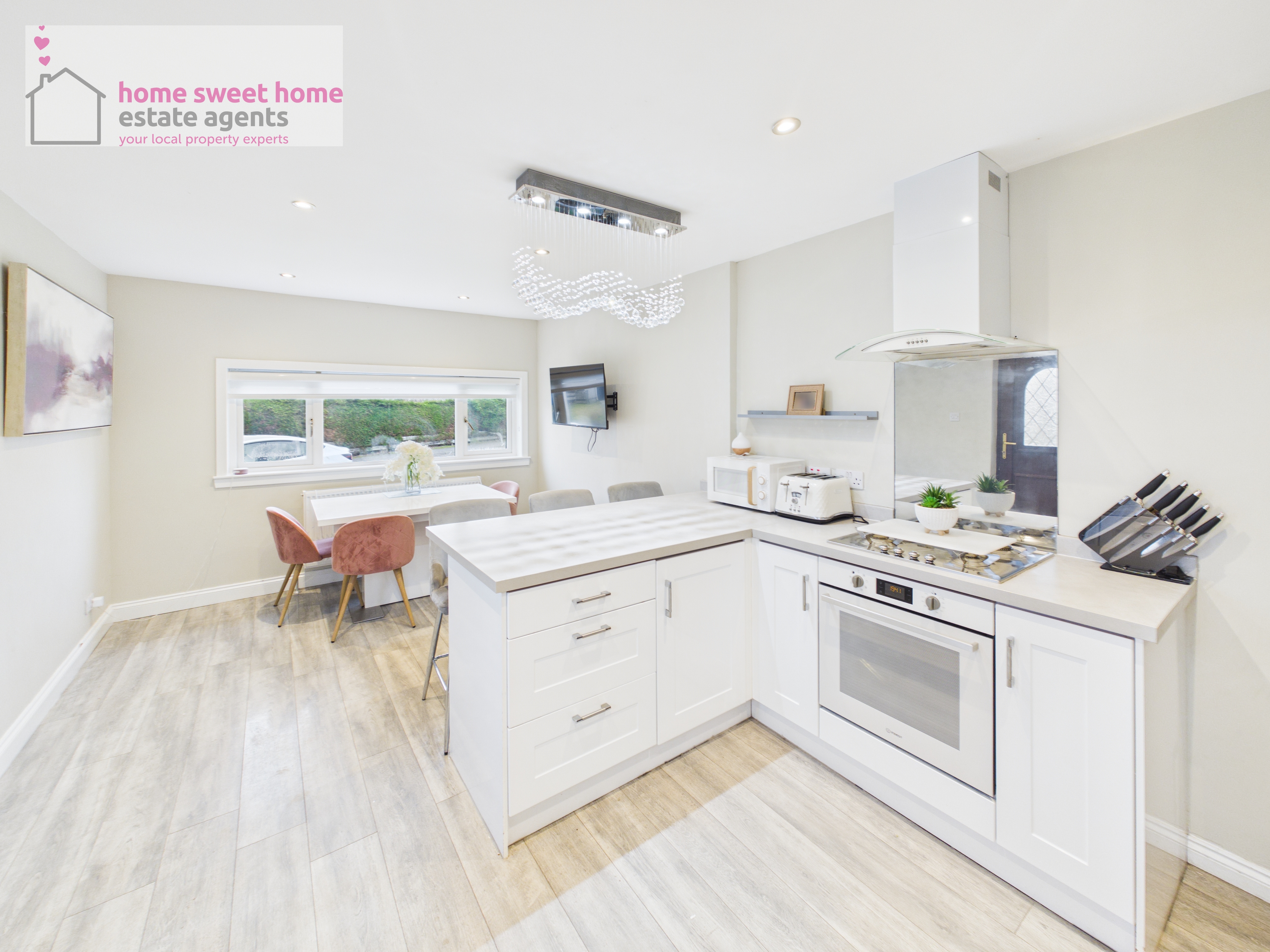 At the heart of the home lies the sleek and modern kitchen-diner, finished with attractive cabinetry, integrated appliances, and ample space for dining, creating an inviting hub for daily living and social gatherings alike.