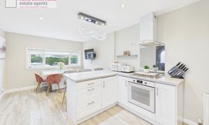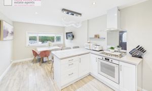 - Stylish modern kitchen-diner with integrated appliances and dining space