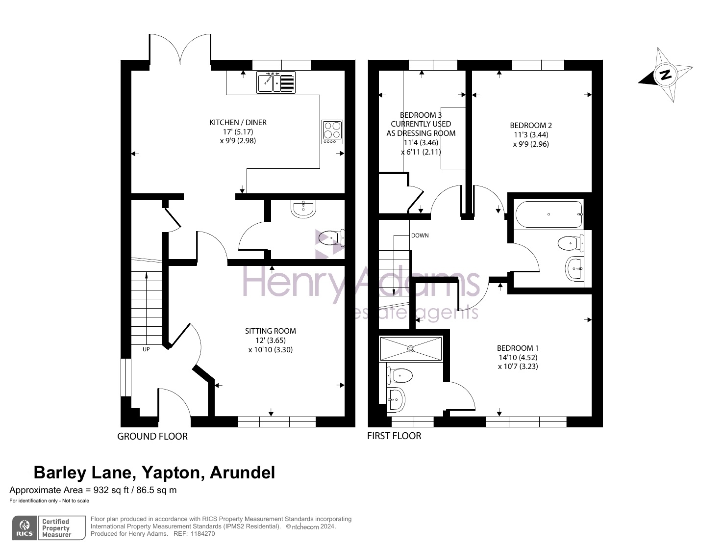 The accommodation measures 932 sqft and briefly comprises: entrance hall with stairs to the first floor. From here the westerly sitting room will be found first followed by an inner lobby with cloakroom/WC and sizable under stairs storage cupboard. To the rear of the property is the kitchen-dining room, appointed in a range of modern units with an integrated fridge/freezer, dishwasher, washing machine, oven and hob with extractor. There is also an area for a dining table and chairs and patio doors opening out to the rear garden.