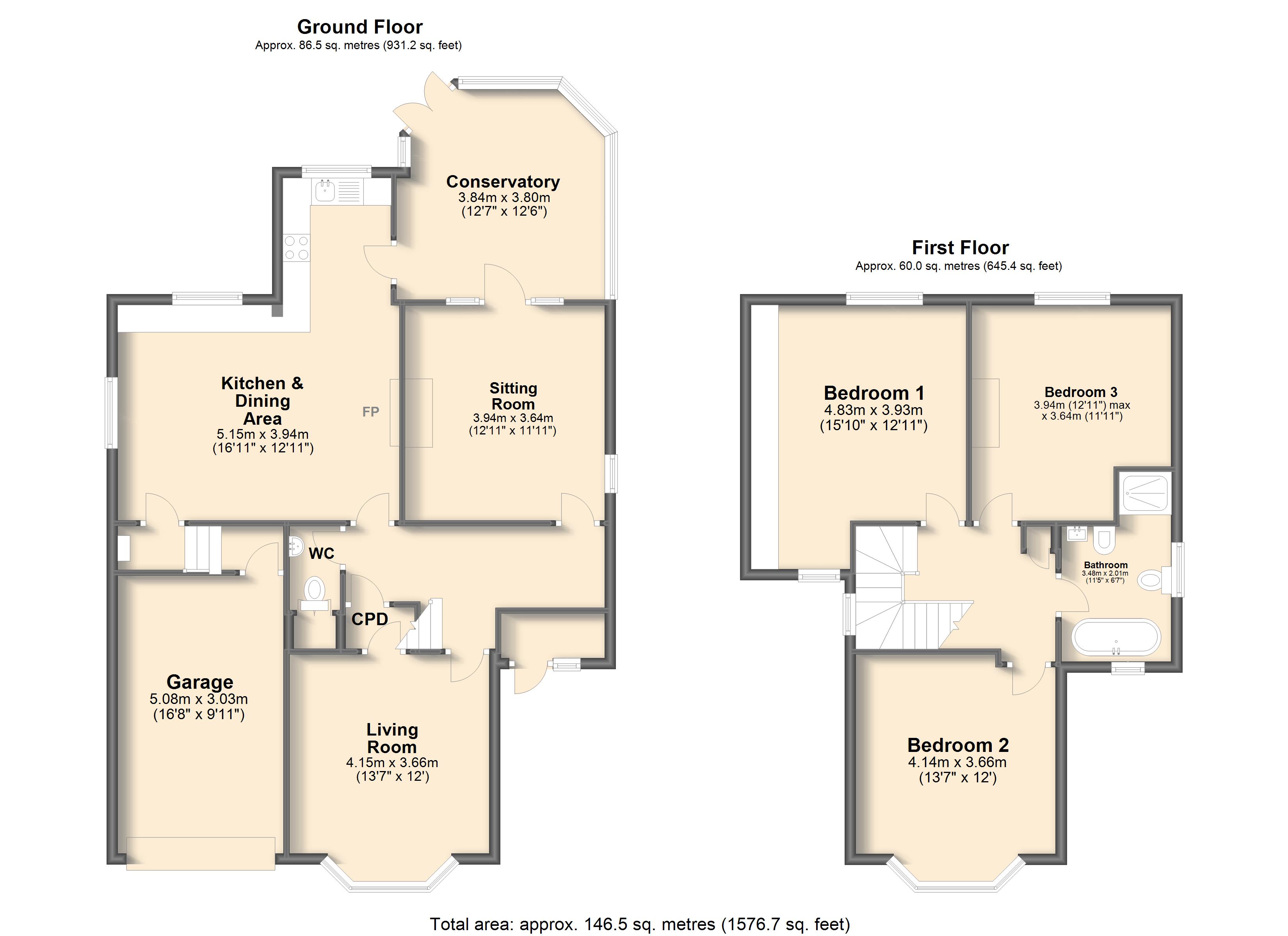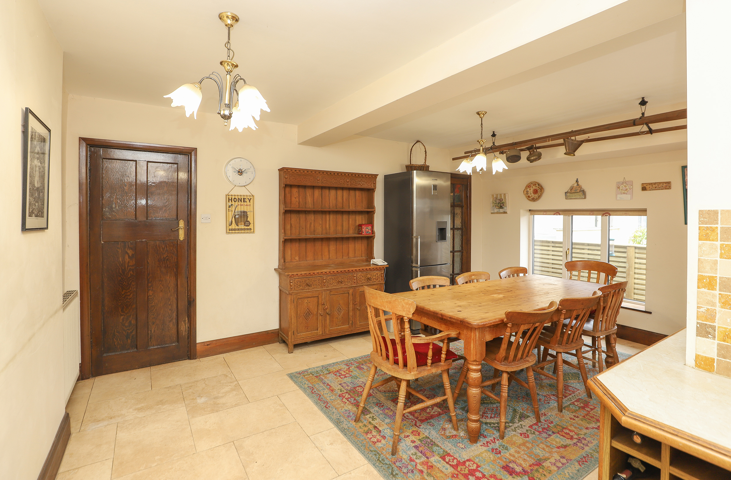 The property greets you with a warm welcome as you step into the fabulous entrance hall with its striking staircase. A generous open-plan, dual-aspect kitchen and dining area featuring a striking burning stove as its focal point. Adjacent, the light and airy sitting room presents an inviting ambience, leading seamlessly into the conservatory, which offers a panoramic view of the fantastic rear garden. A bay-windowed living room complements the floor and overall living space, perfect for relaxing as a family.